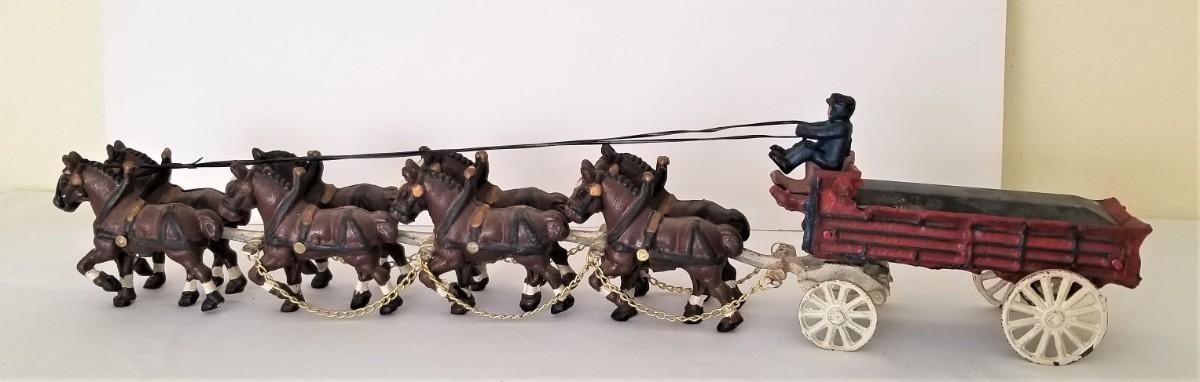 Lot #101  Cast Iron Toy - Horses and Wagon