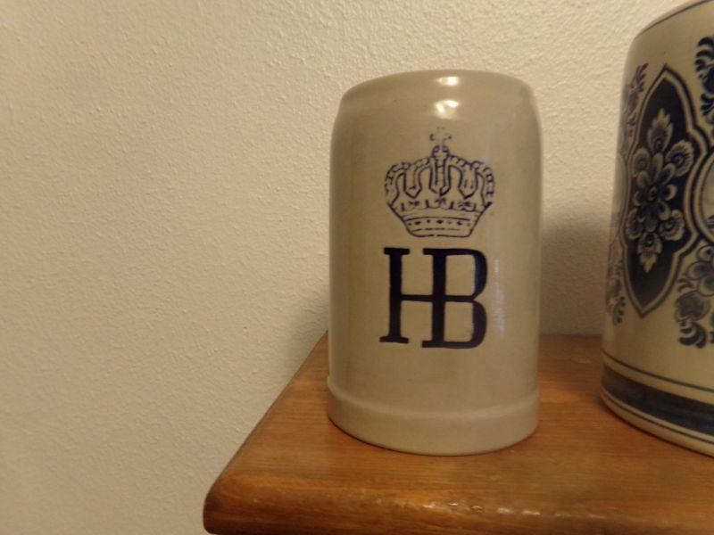 2 DELFT BLUE BEER STEINS AND HB STEIN