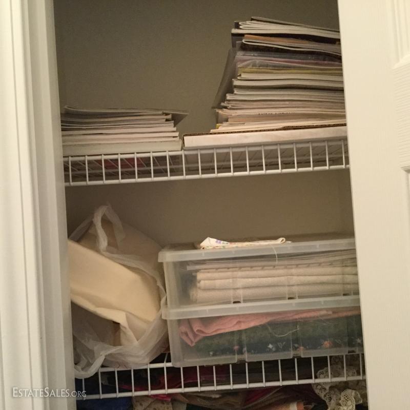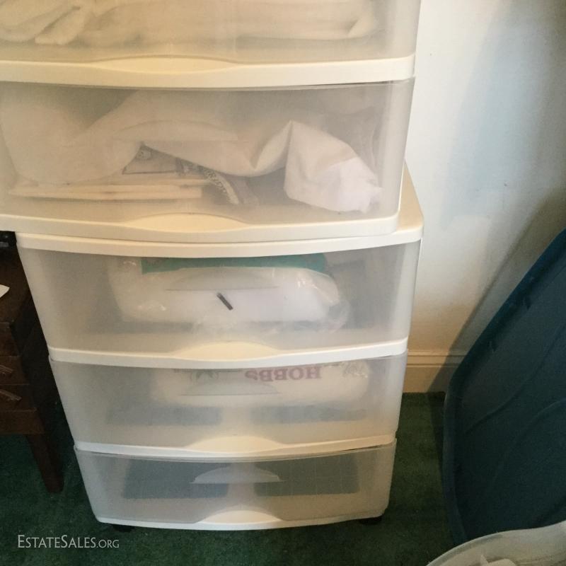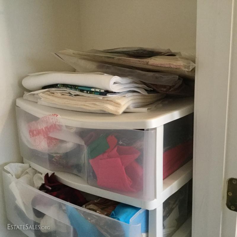Huge Lot of Miscellaneous Fabric, batting, and quilting books, Plastic