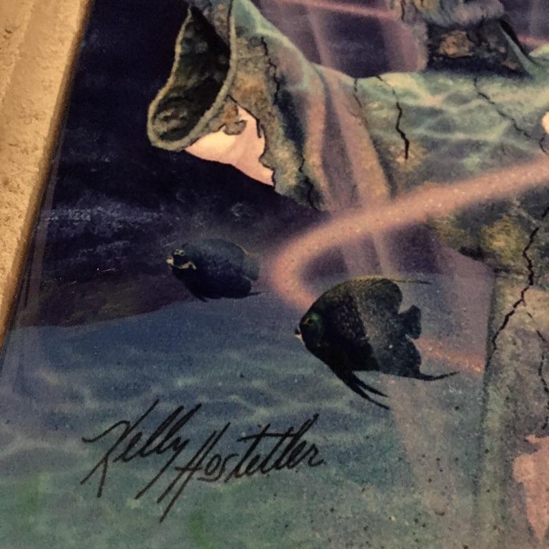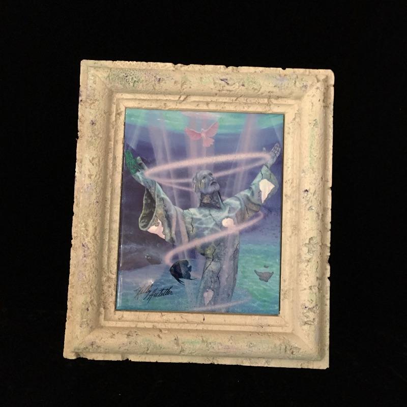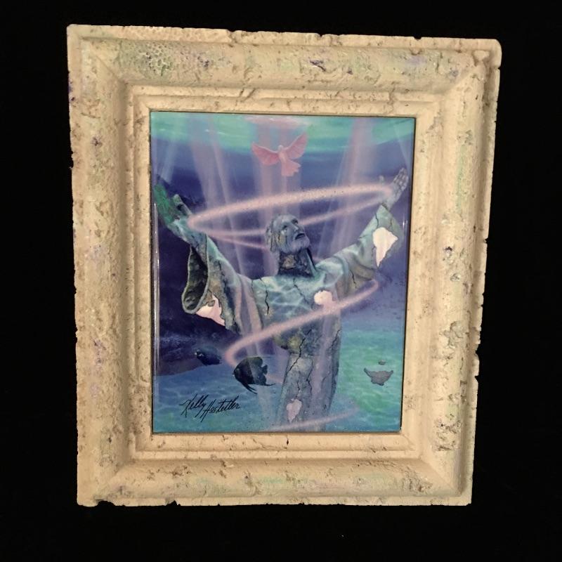 This Kelly Hostetler tile art is set in an attractive faux coral frame. This is a reproduction of Kelly Hostetler Spirit Dance artwork and is a very eye-catching thought provoking piece.