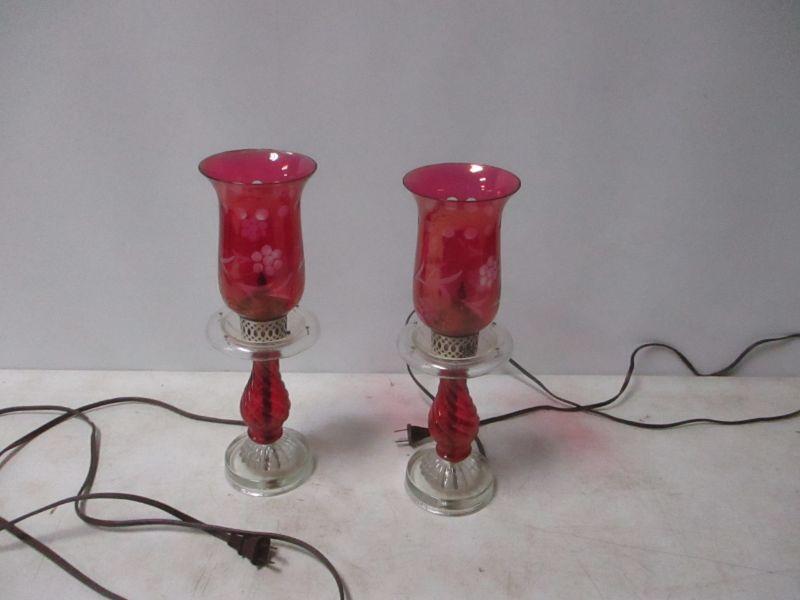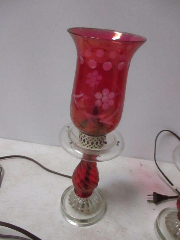 Lot 101 - Fenton Style Red Glass Electric Lamps