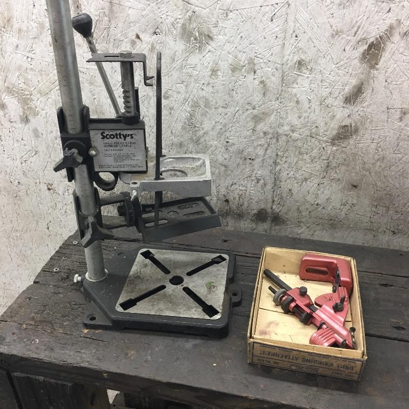 Scotty’s drill press stand and Snap-On drill grinding attachment. Keep your drill bits sharp and your drilling straight with this dynamic duo.