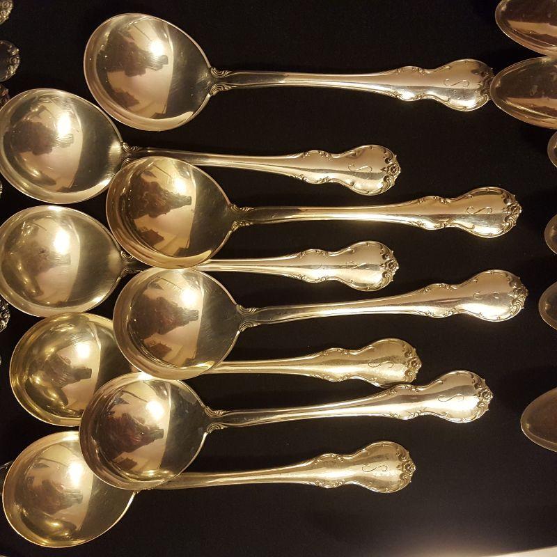 130 pieces of sterling silver French Provincial flatware engraved with the letter S.