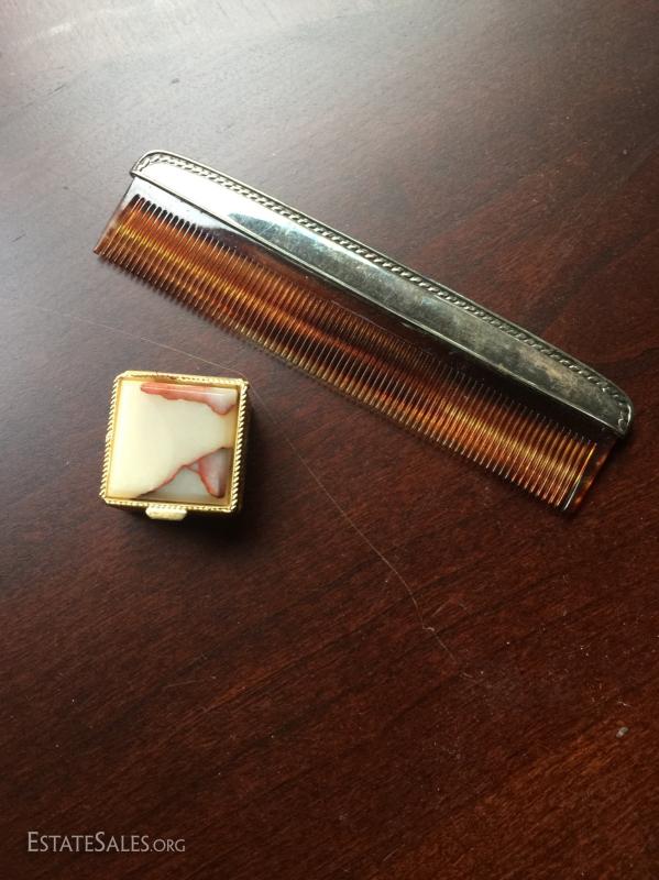 Travel mirrors in travel case (one large and one small), comb and pill box