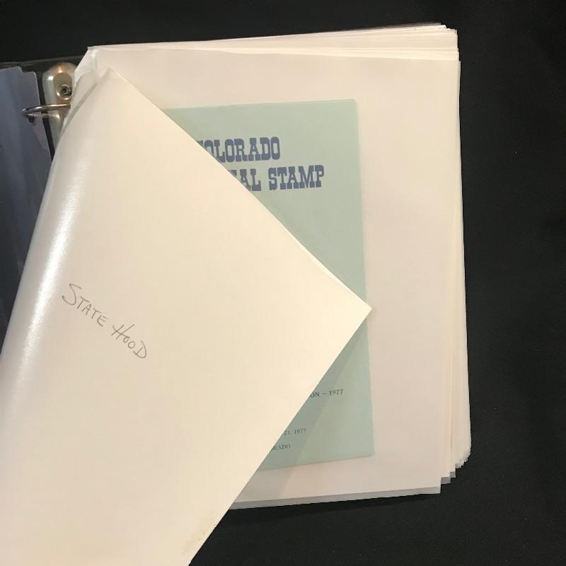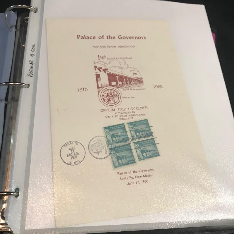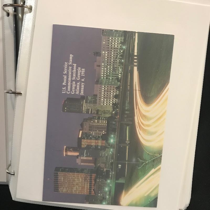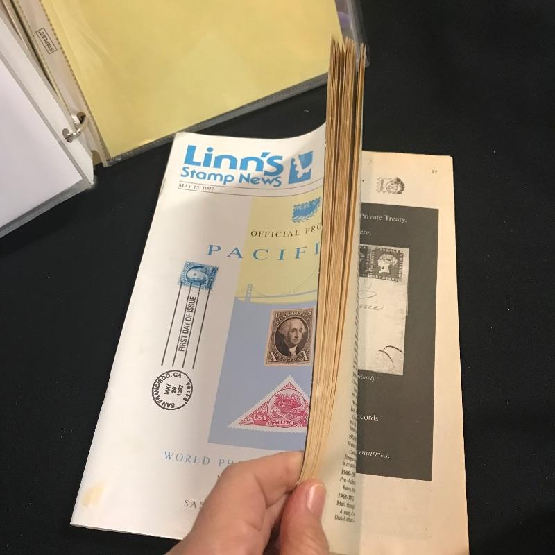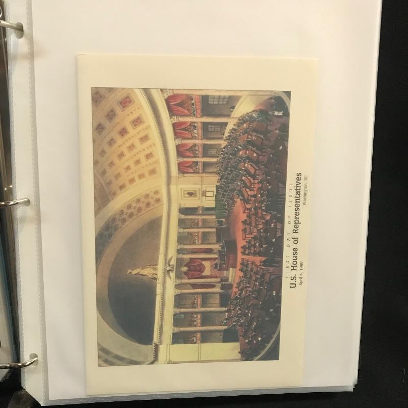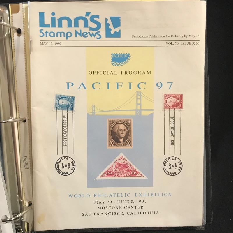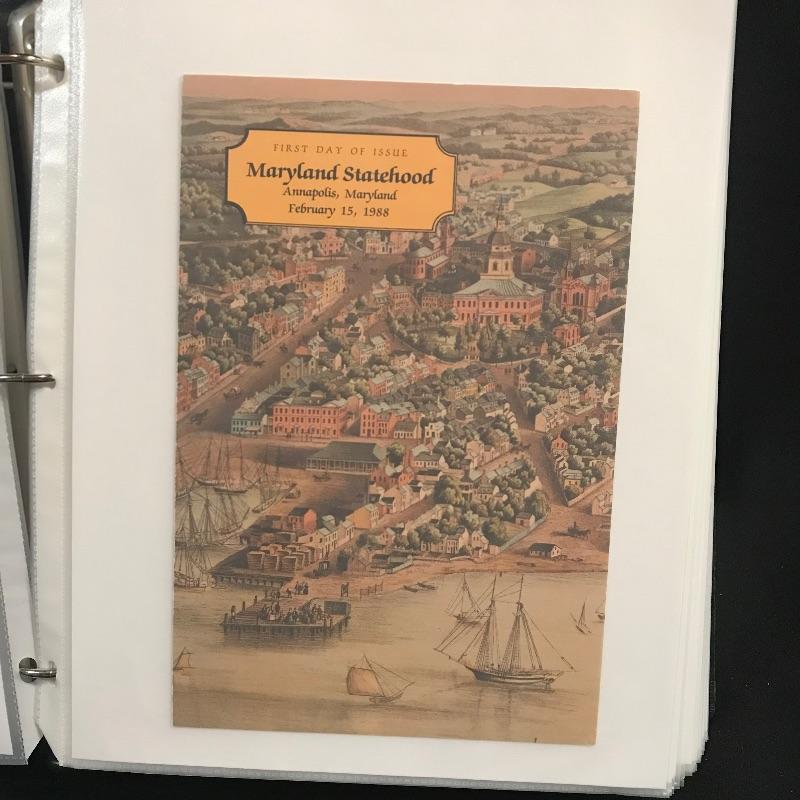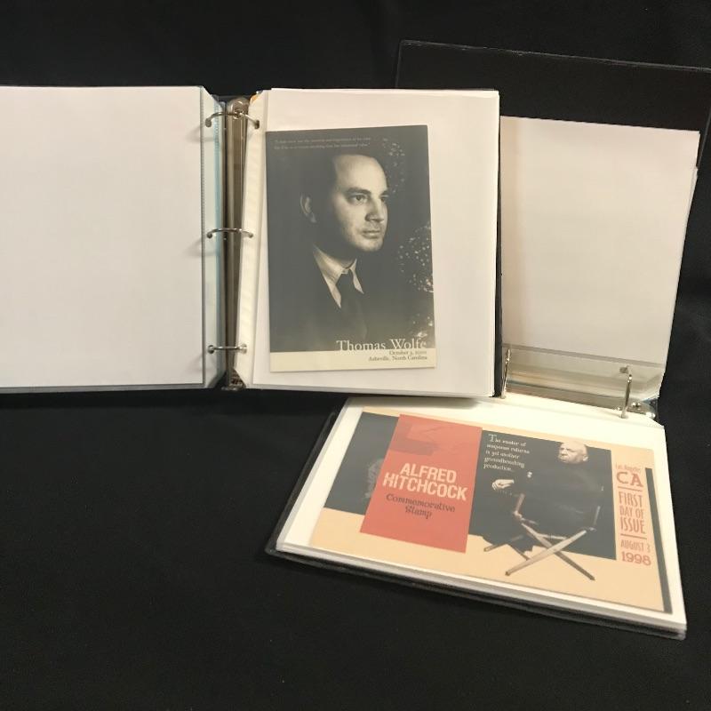 Two “Heavy Duty” binders with full page inserts filled with larger stamps and 1st day covers. One binder is more than halfway full of statehood covers. The other genres vary widely. Lot also includes two magazines - a Franklin - Washington 1997 Linn’s Stamp News and Super Bowl Edition #126 Legends Sports Magazine.