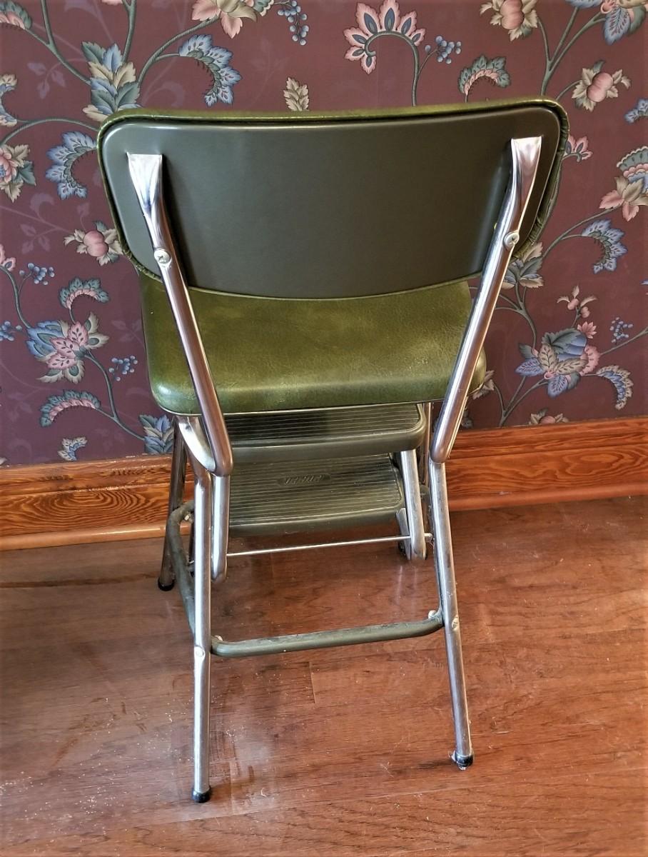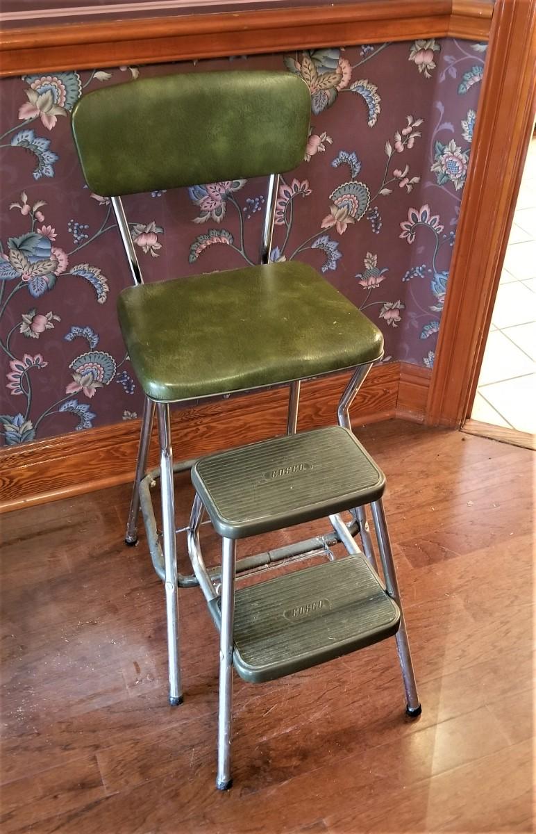 The Avocado Green vintage stepstool is from the 1960's and is in gently used condition. 14" across, 33" tall. Very cool.