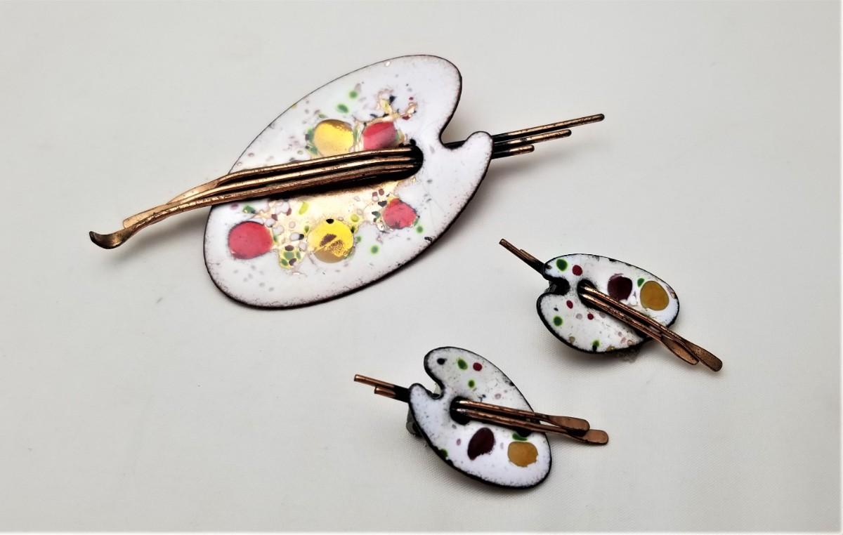 Lot #101 Vintage "Matisse" Brooch and Earring Set - Enamel on Copper