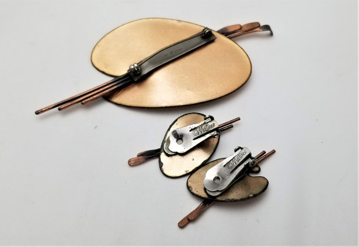 Lot #101  Vintage "Matisse" Brooch and Earring Set - Enamel on Copper