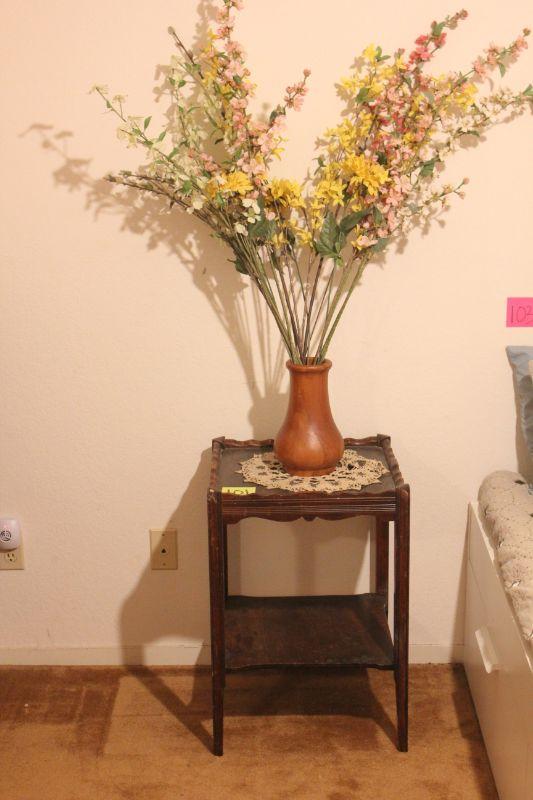 Lot 101 Vintage Side Table & Floral 26x18x18