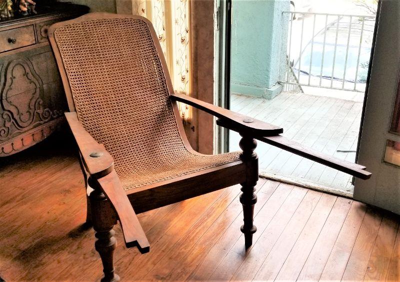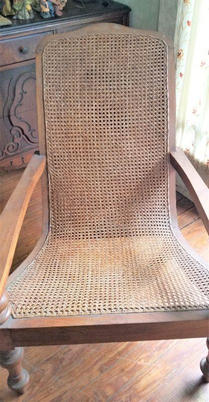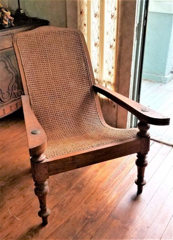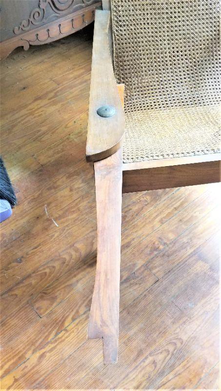 This is a great Anglo-Indian "Plantation" style chair - double caned (excellent condition) - very sturdy - turned legs - has the swivel extendable arms on both sides which are designed to be used as a boot or leg rest while you are deep in the chair lounging on the porch. Similar chairs are listed on ebay for $700.00+. This one is 36.5" tall, 31" deep, 31" across When arms are extended, the chair is 49" deep.