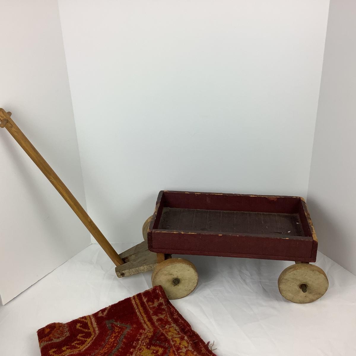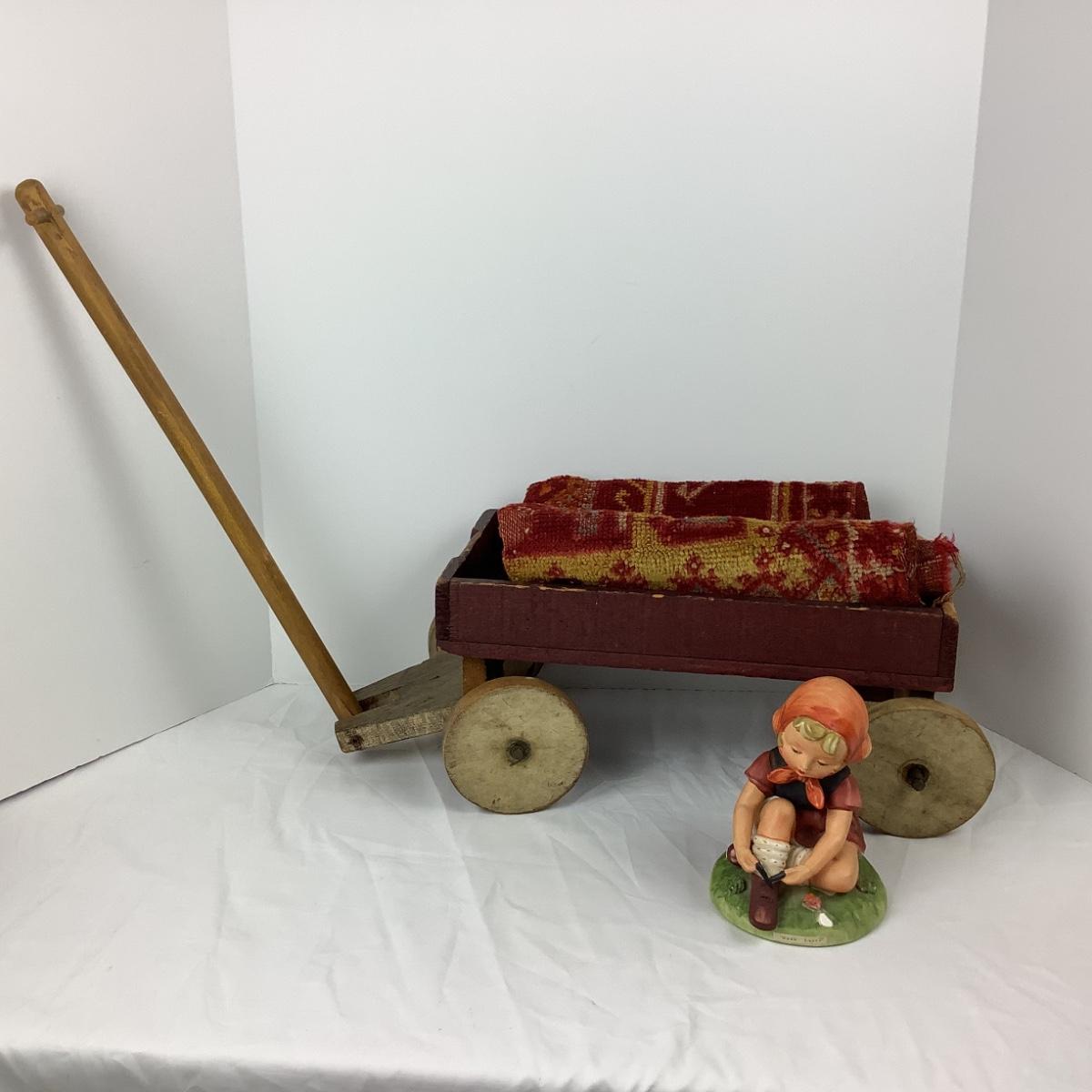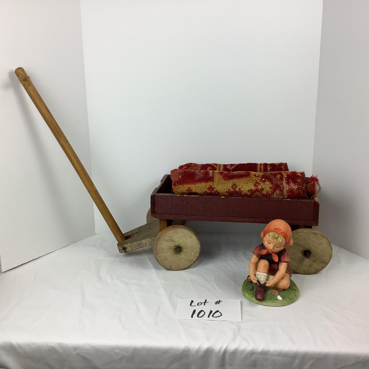 Lot # 1010 Small Vintage Wooden Wagon & Vintage Porcelain Girl by Designed by Erich Stauffer