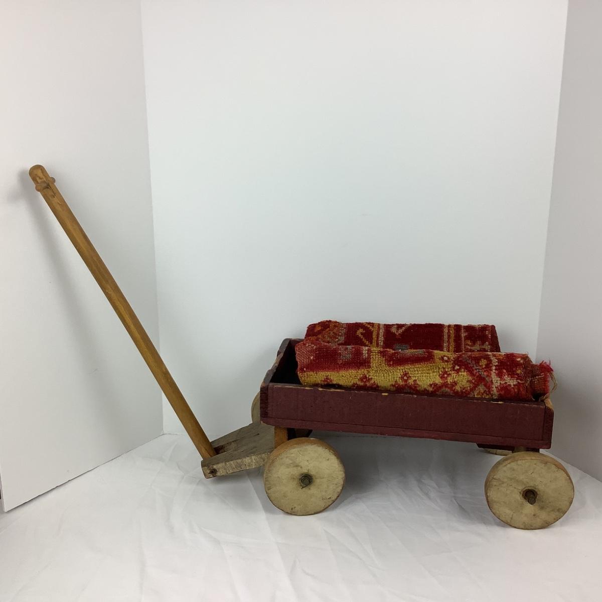 Small Vintage Wooden Wagon with wooden Wheels & Handle,
