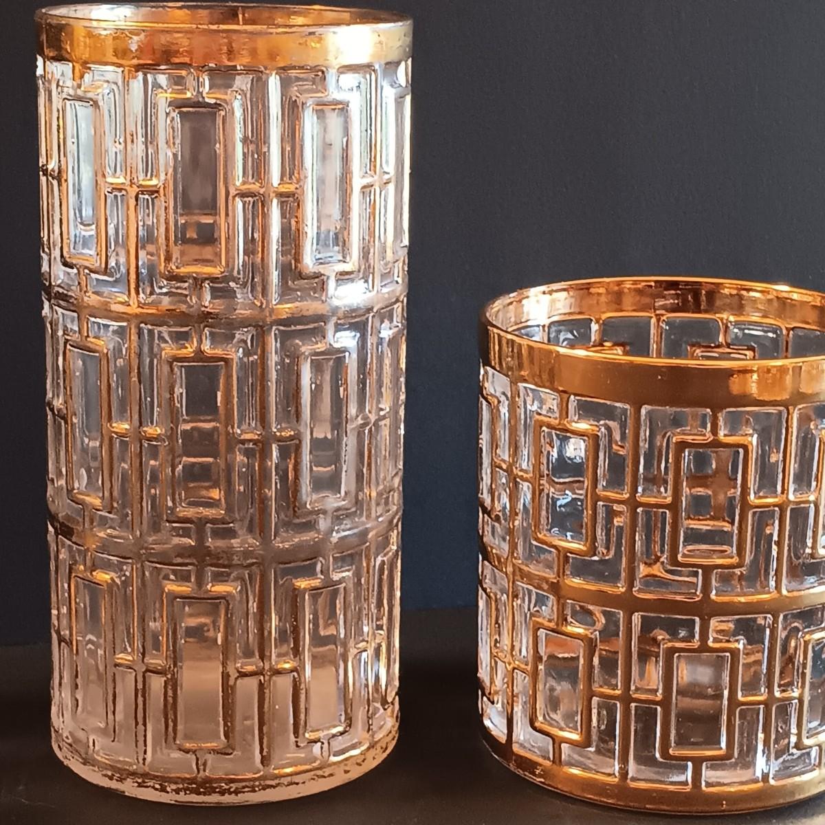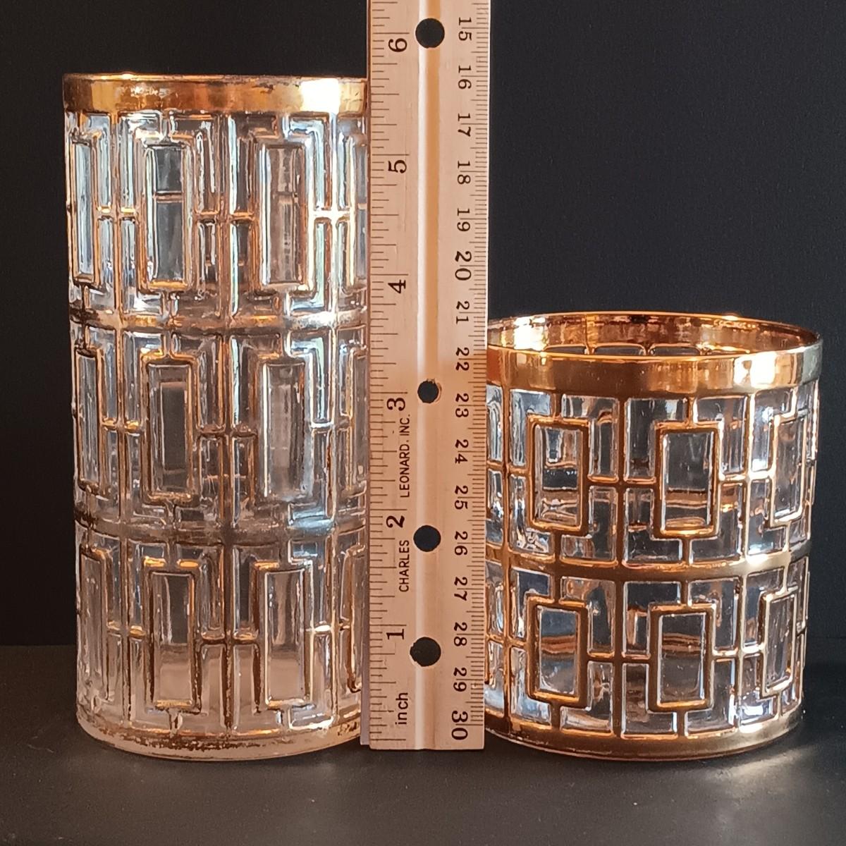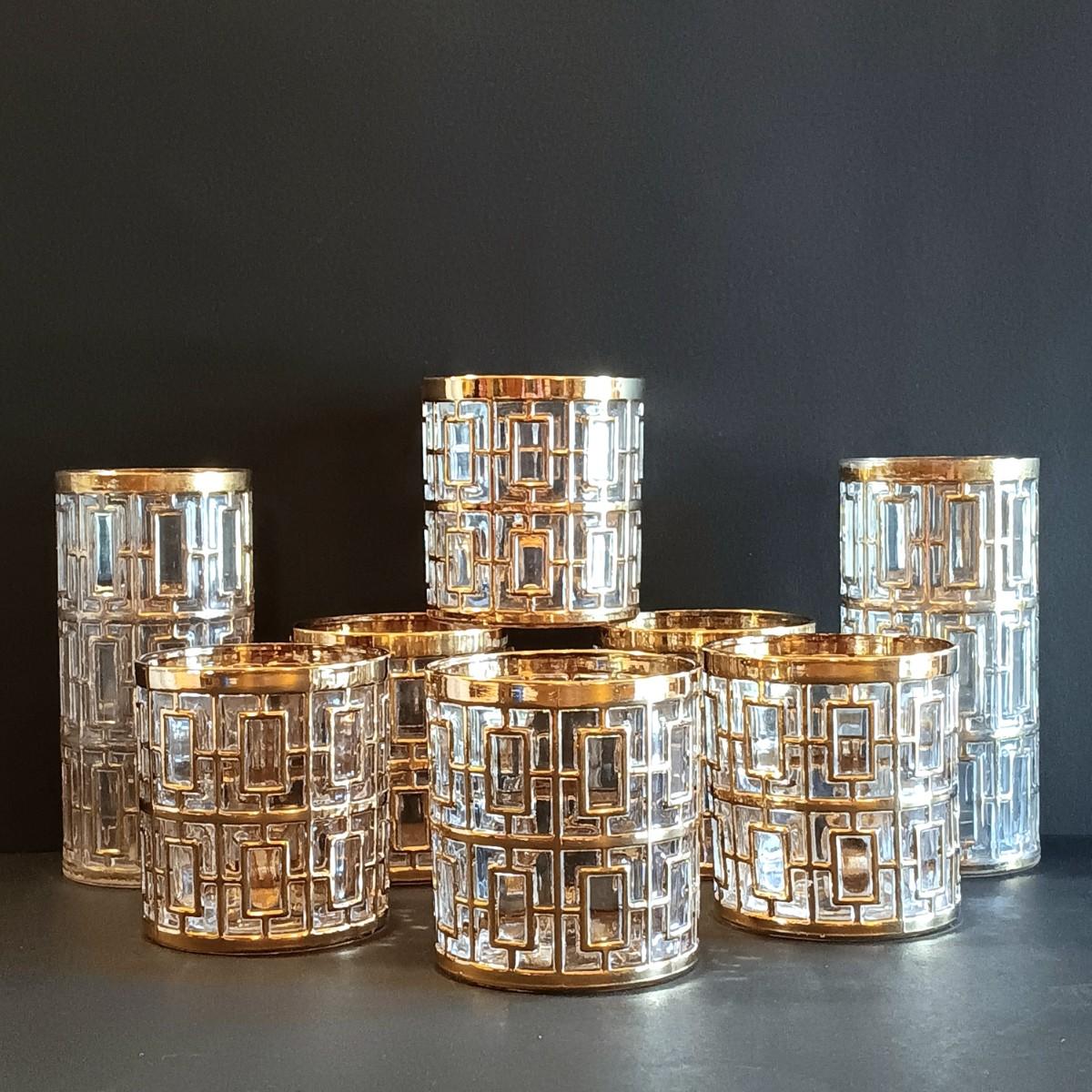 LOT 2: Vintage Imperial Glass - Shoji Trellis Gold - 2 Highball and 6 Rock Glasses