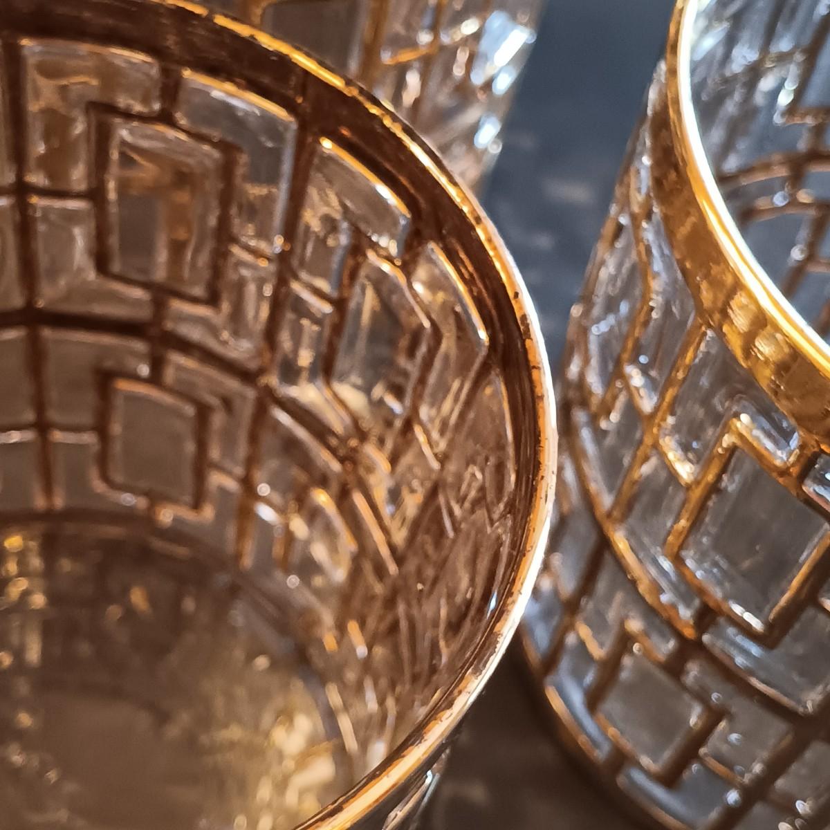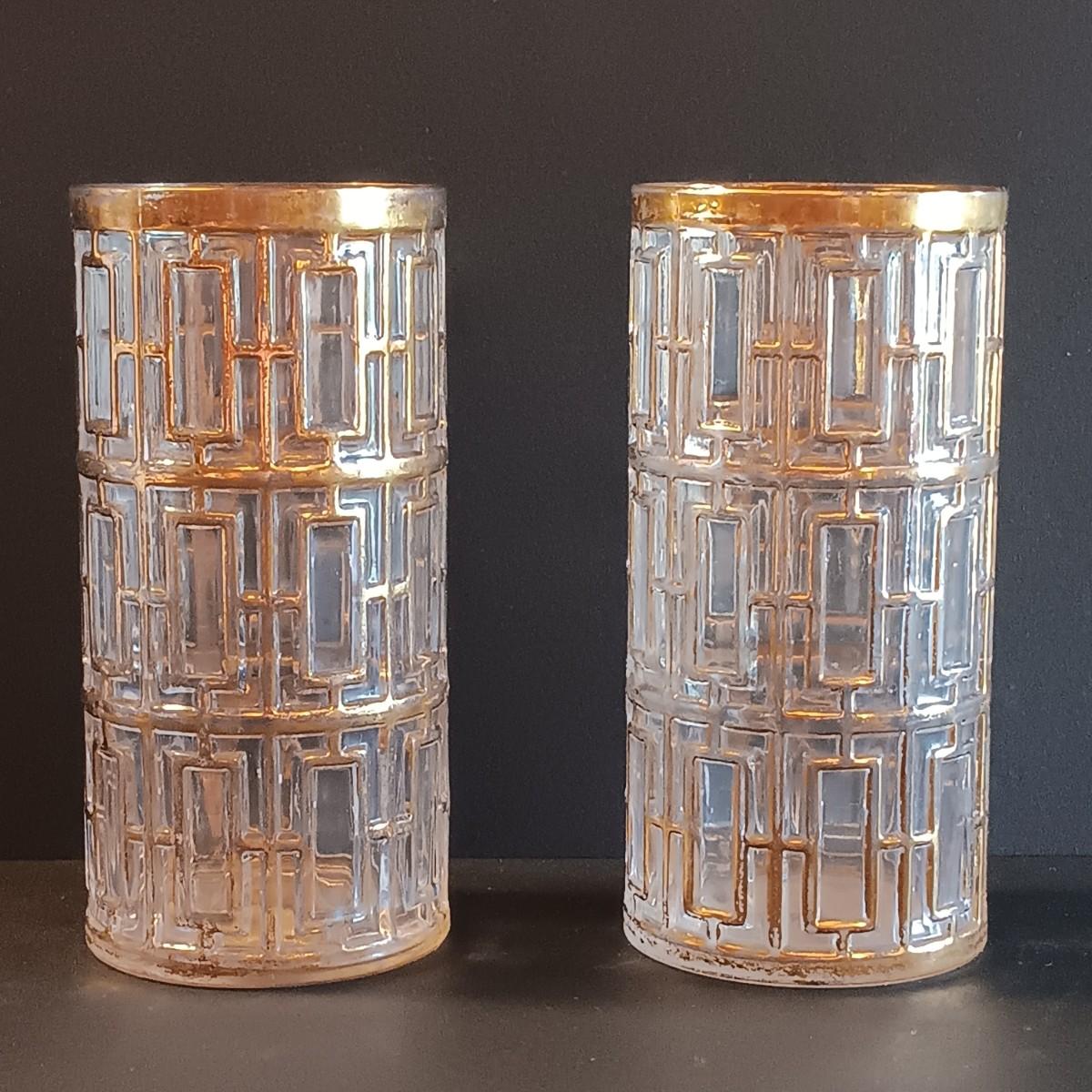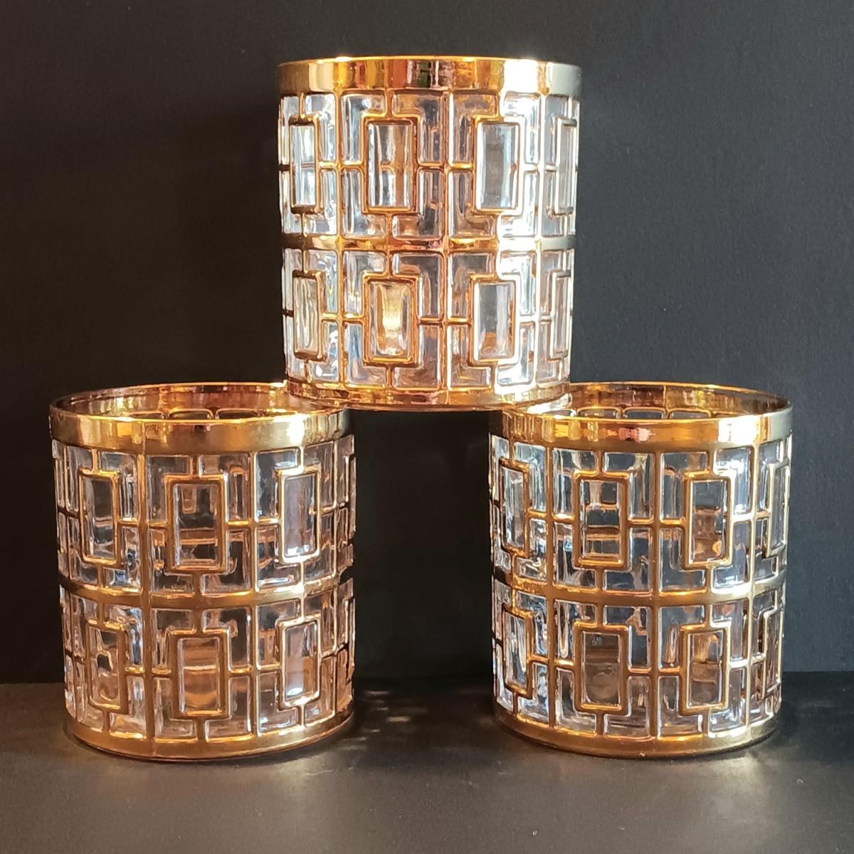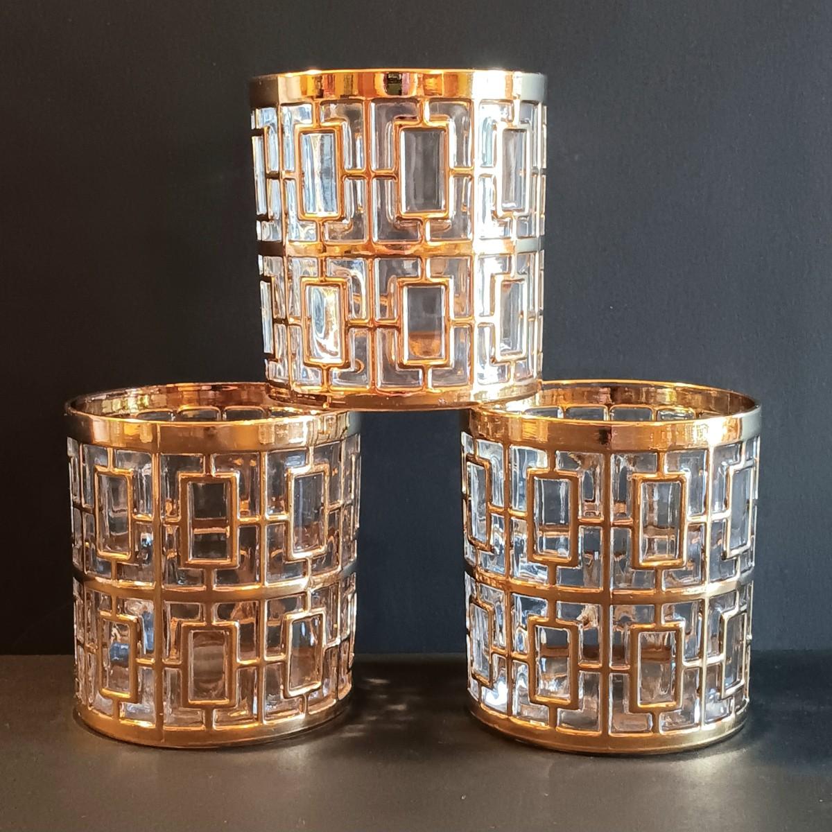 LOT 2: Vintage Imperial Glass - Shoji Trellis Gold - 2 Highball and 6 Rock Glasses