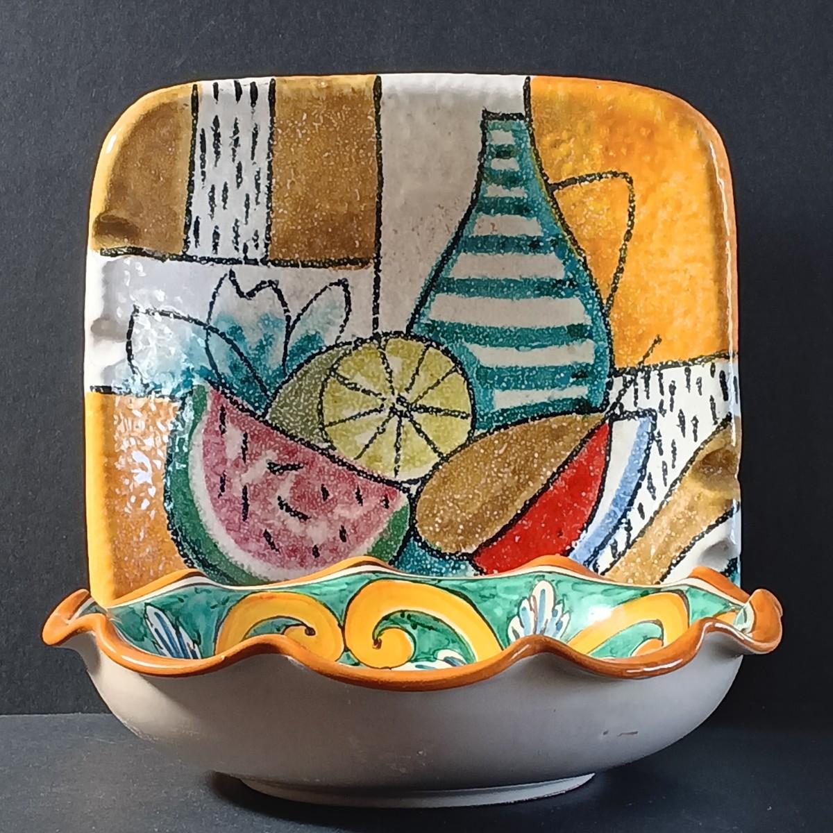 LOT 5: Vintage Signed A, Boria Caltagirone Handpainted Bowl and Signed and Numbered Handpainted Ashtray