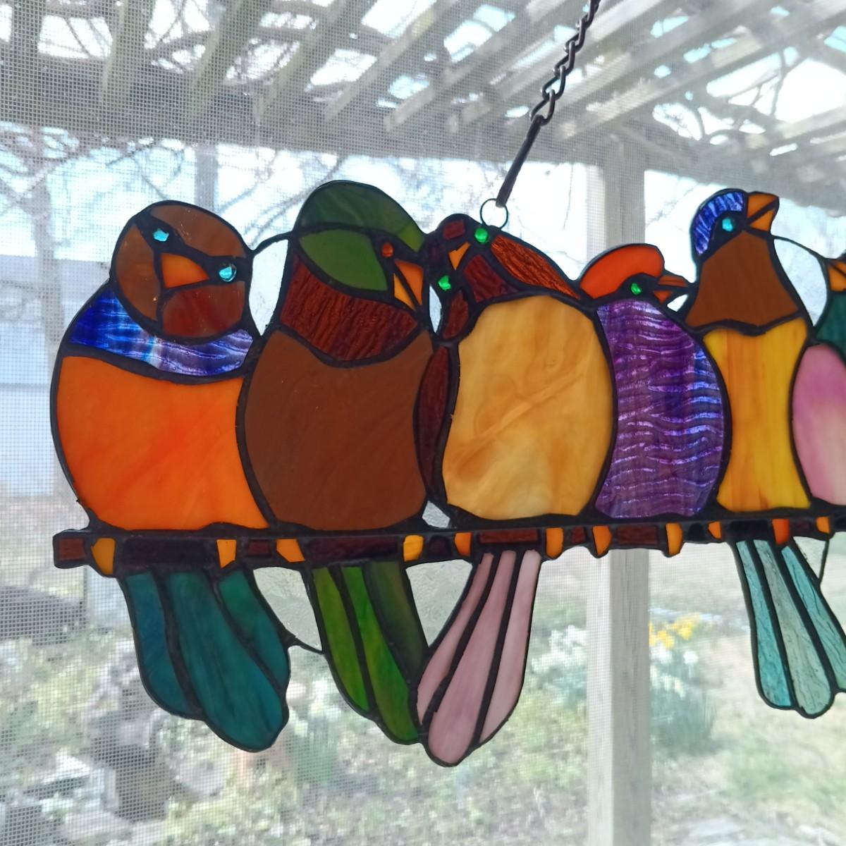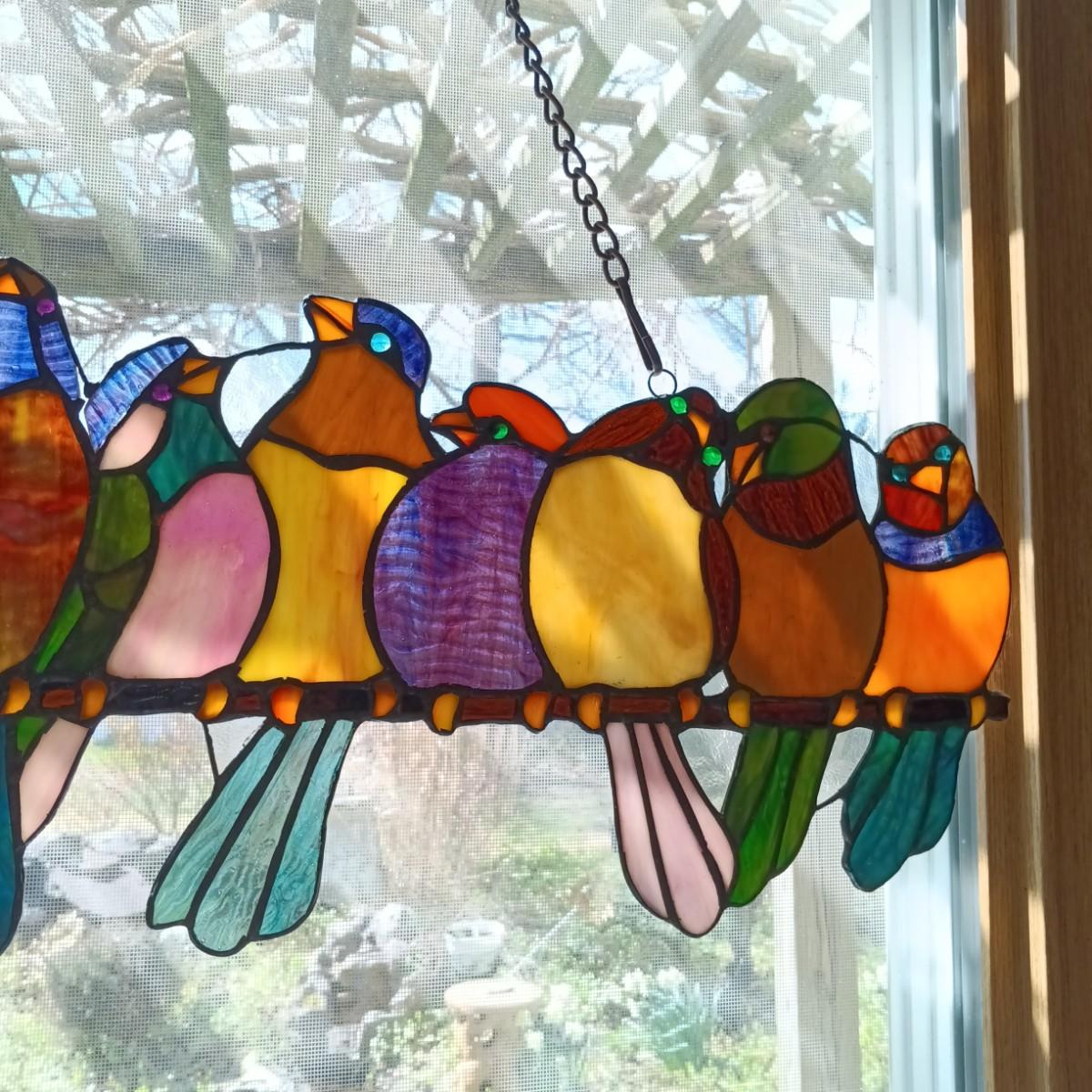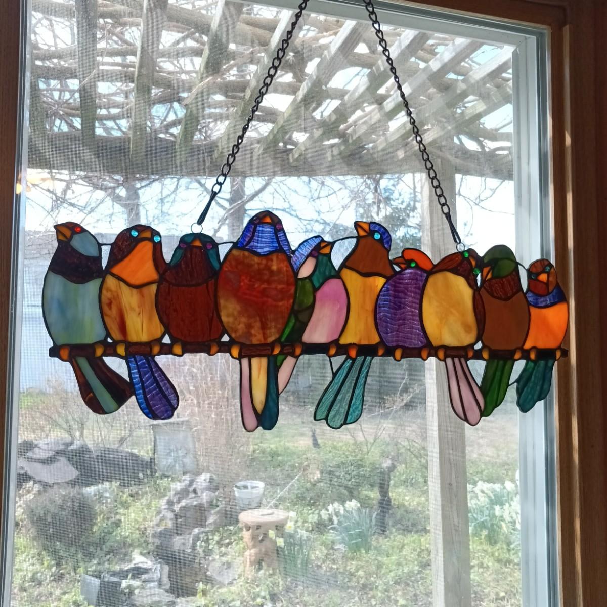LOT 10: Large Stained Glass Birds on a Wire Window Hanging
