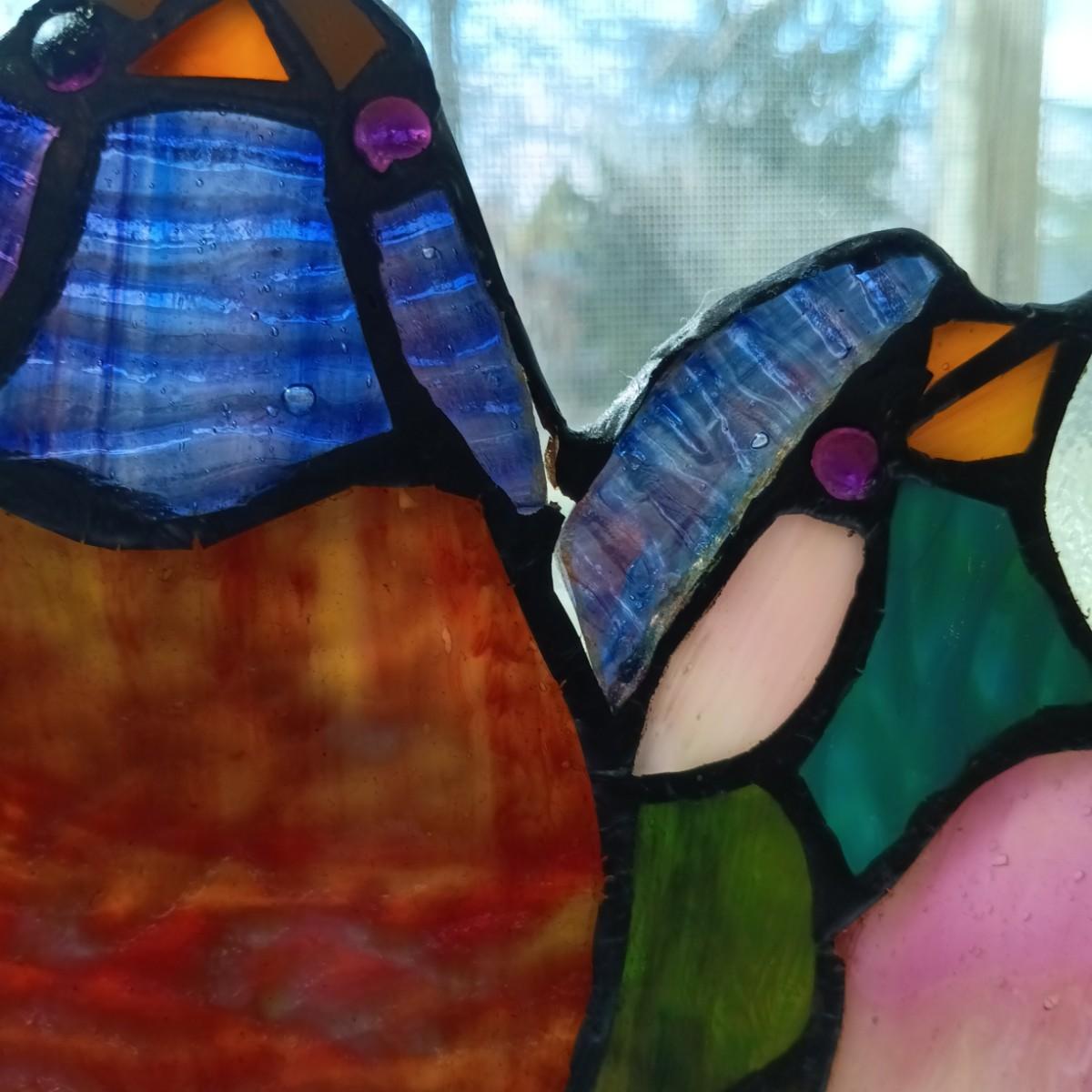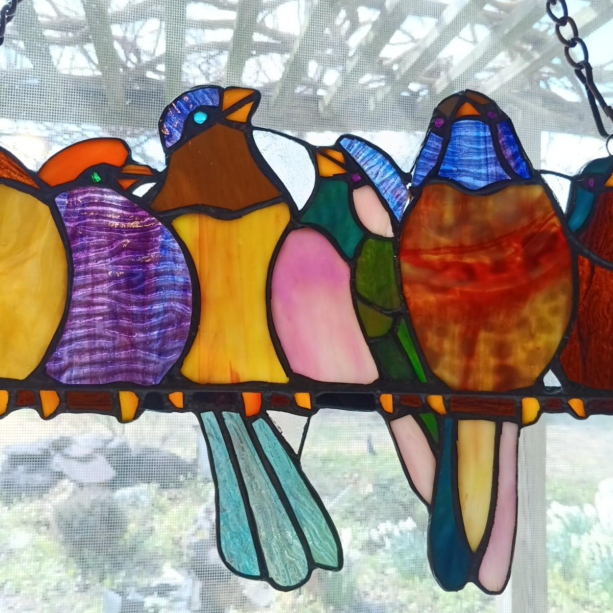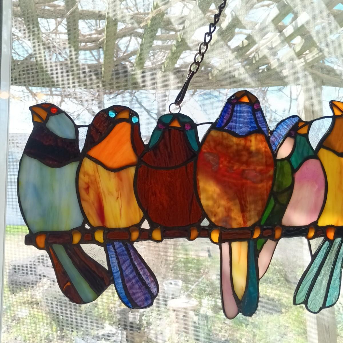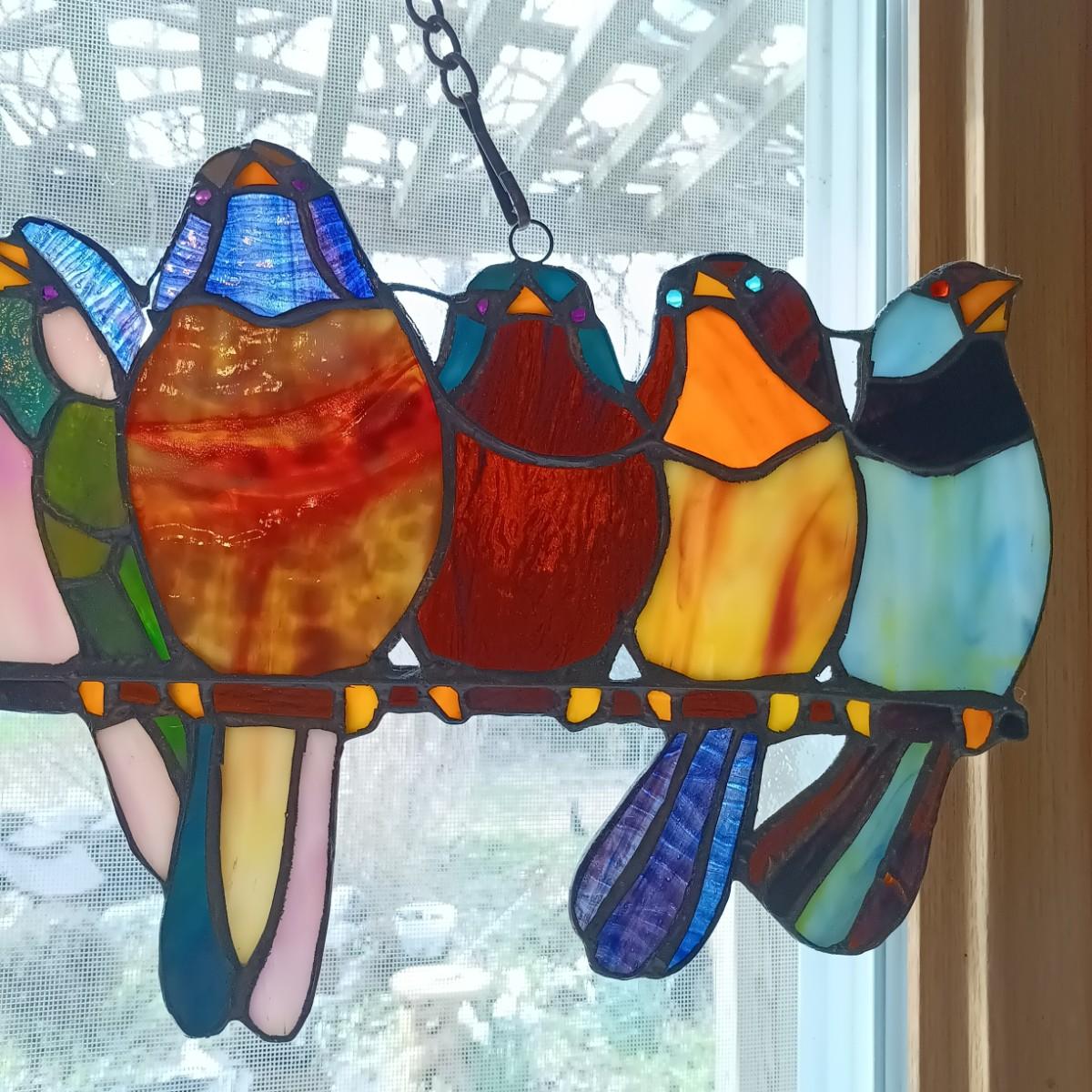 LOT 10: Large Stained Glass Birds on a Wire Window Hanging