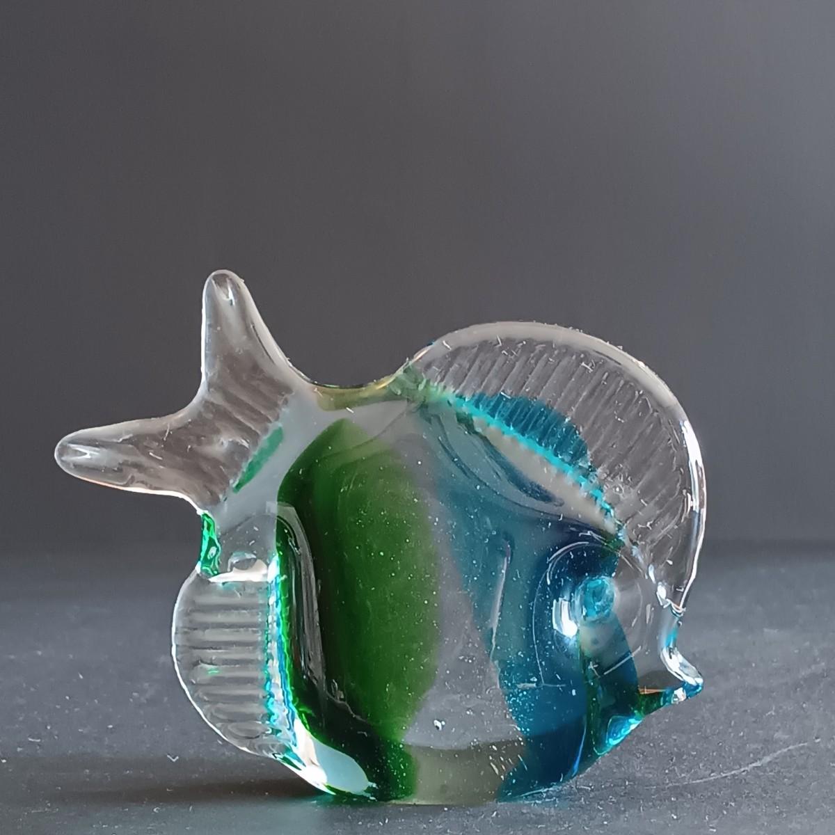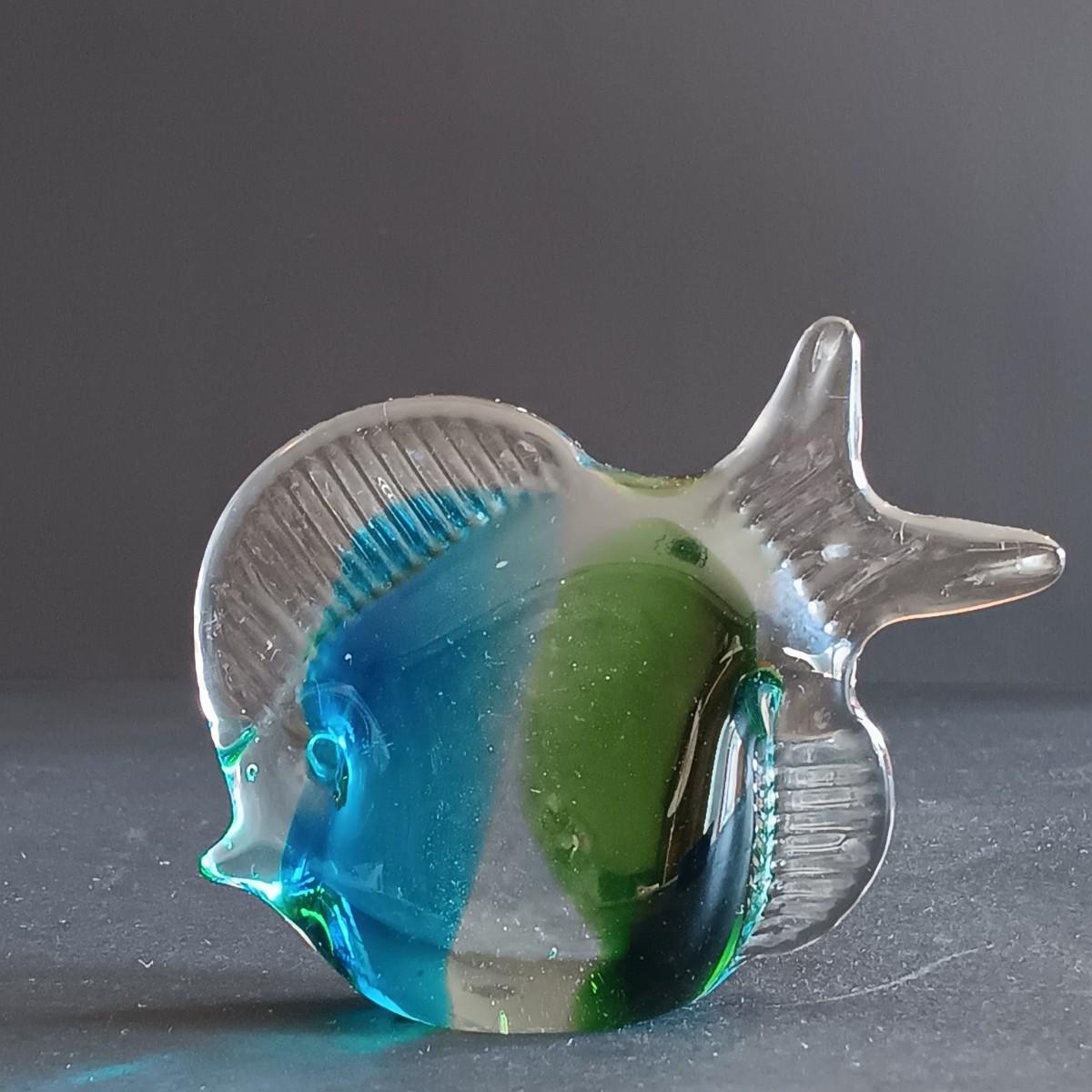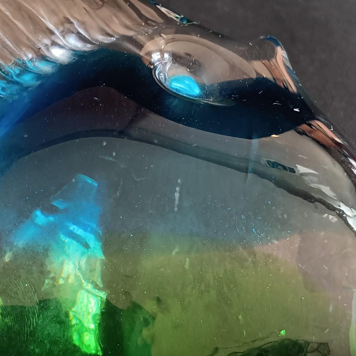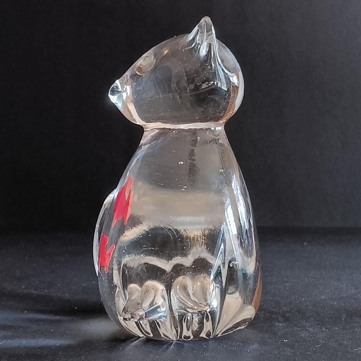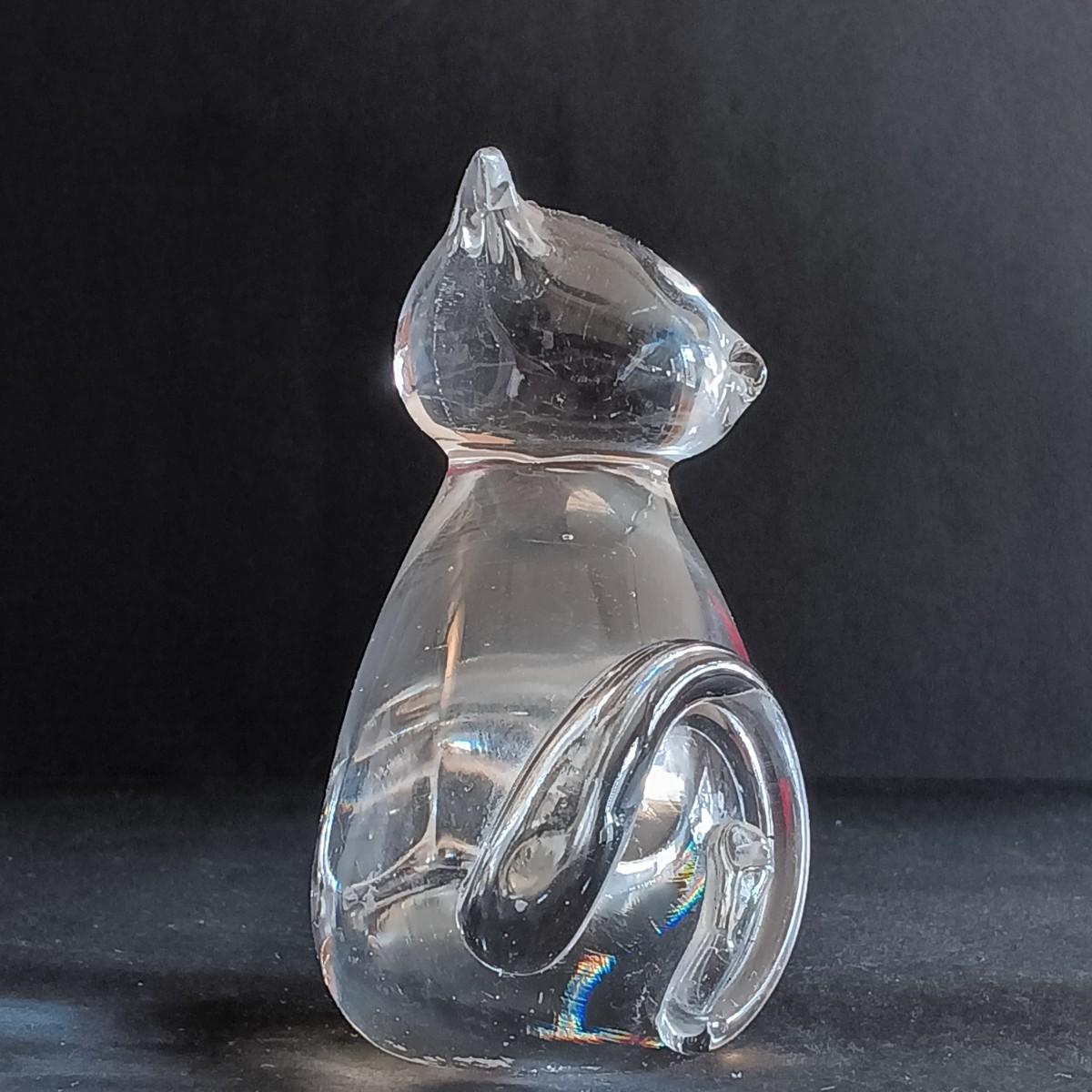 LOT 18: Vintage Art Glass Collection - Vinci Clear Glass Cat with Swimming Fish & Blue and Green Shaded Glass Fish