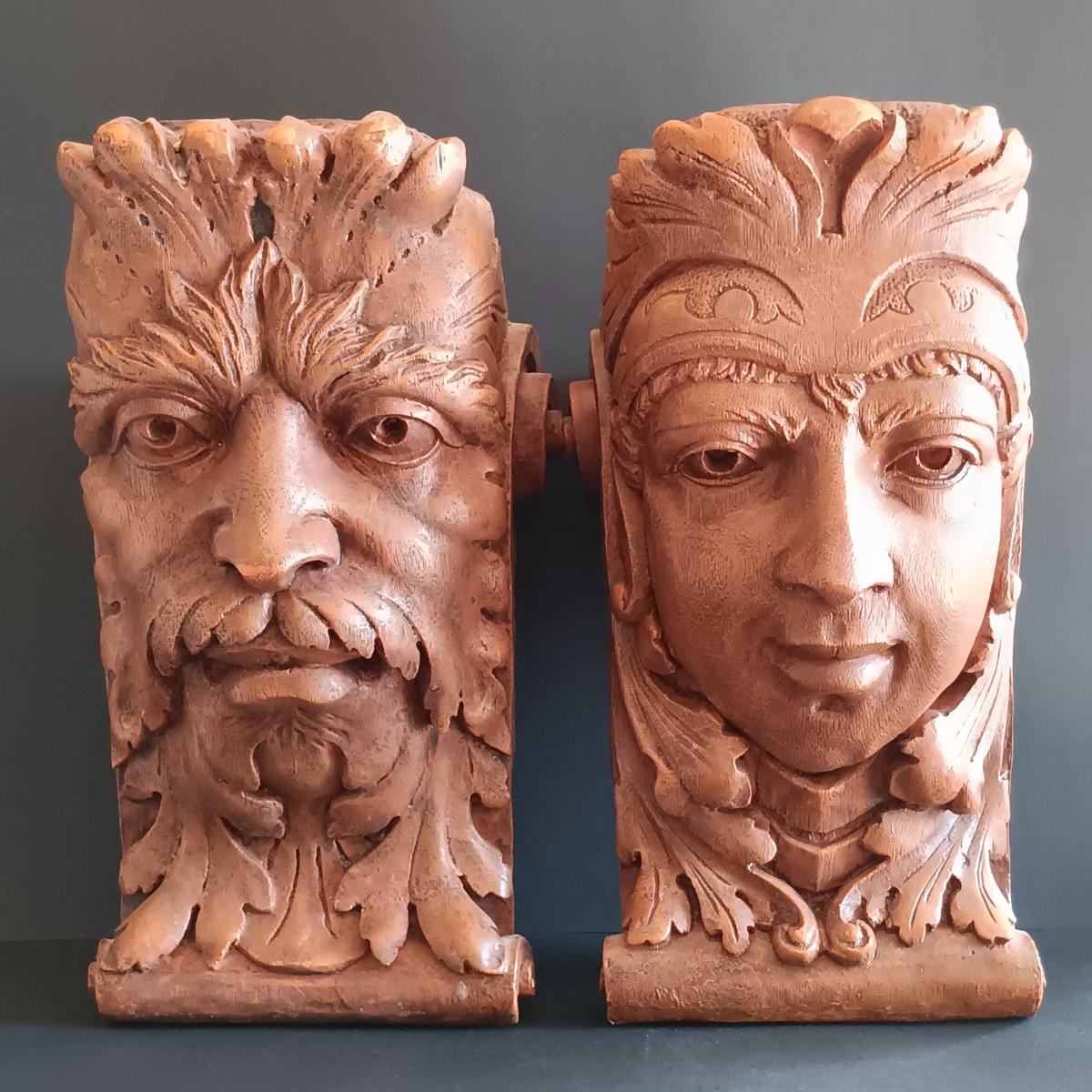 LOT 20: Neoclassical Style Athena / Green Woman & Green Man Bracket Shelves