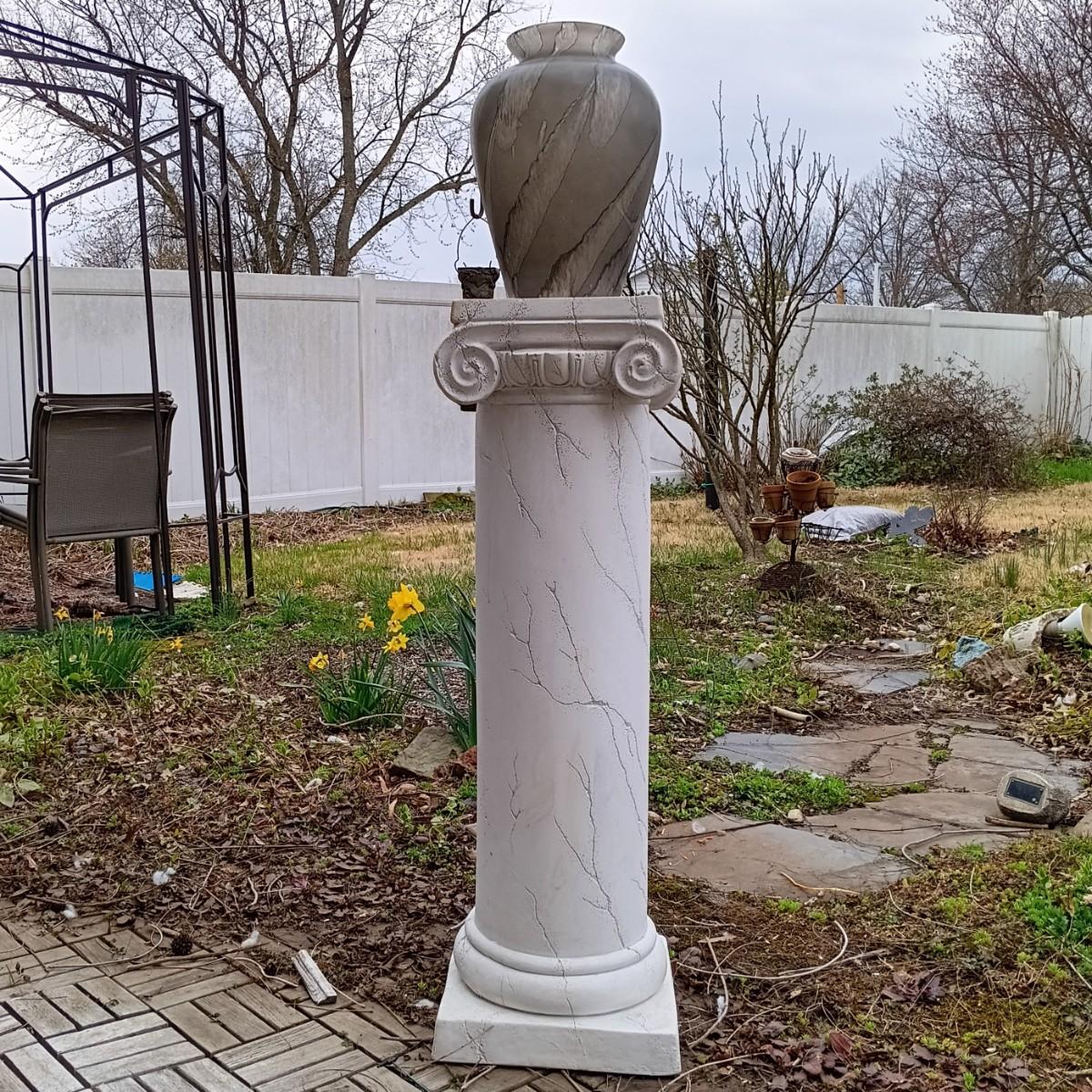 LOT 25: Stunning Art Glass Vase w/ Plaster Grecian Column