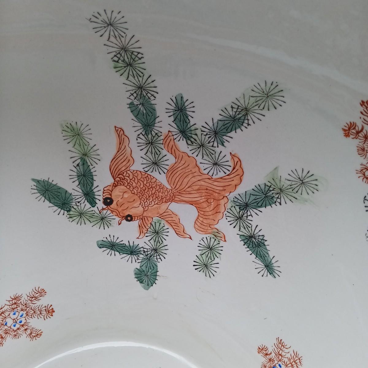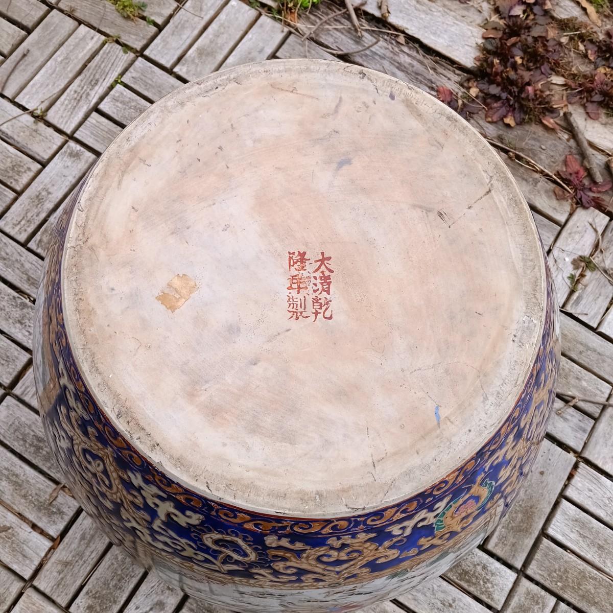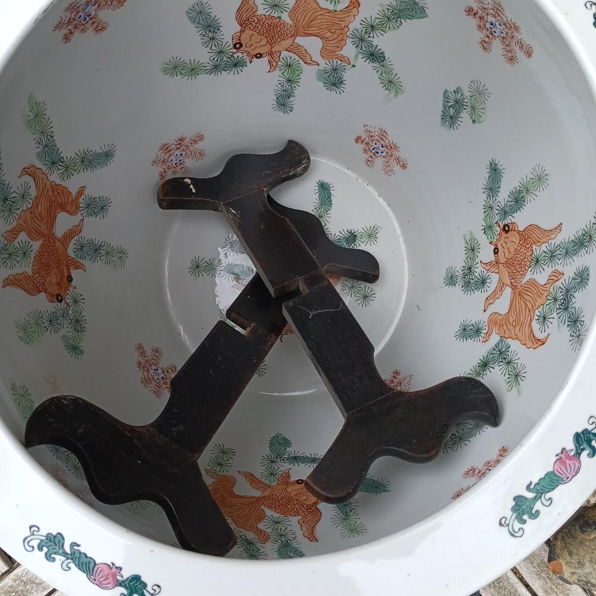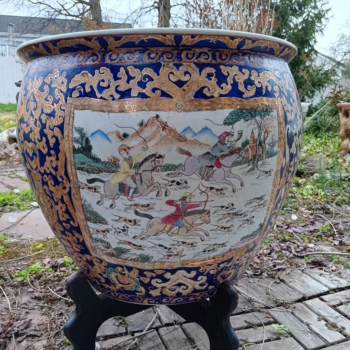 LOT 27: Large Chinese Porcelian Fishbowl with Clay Carp Statues