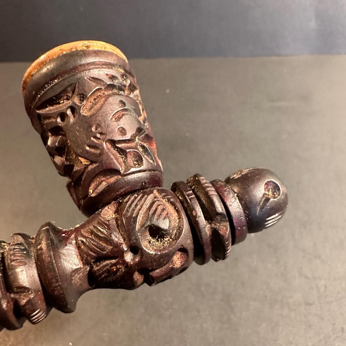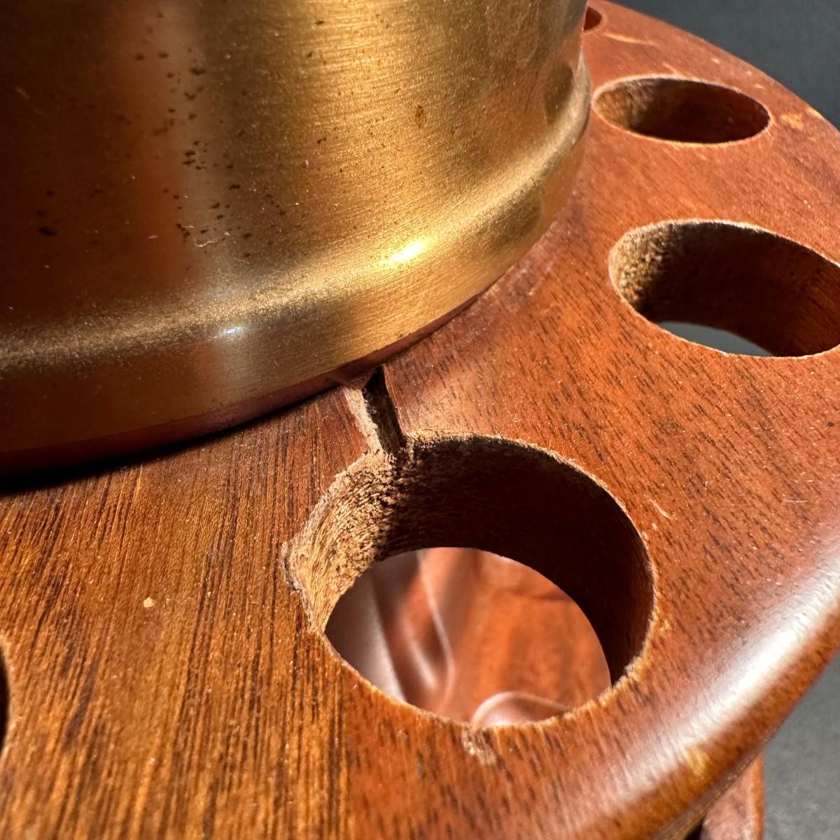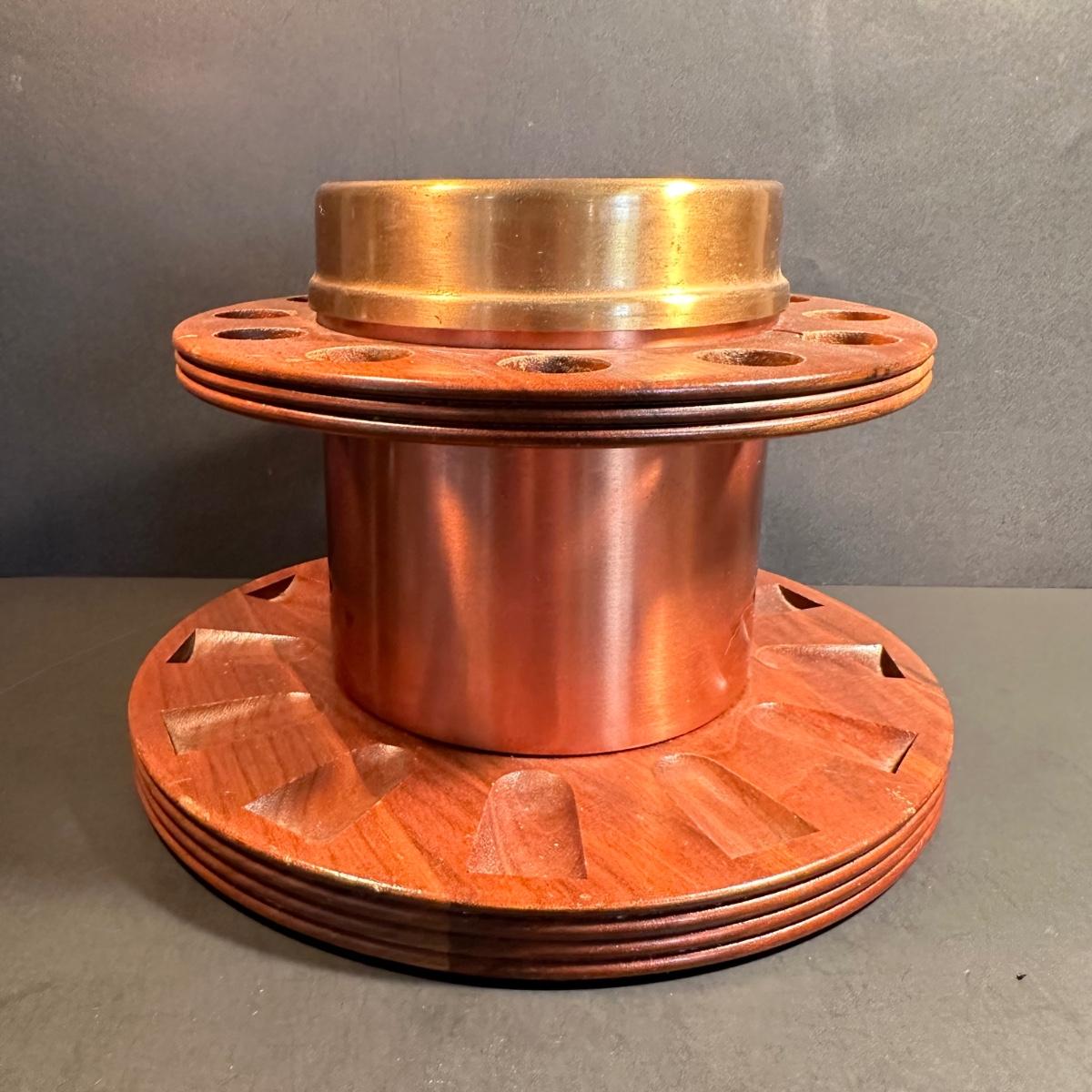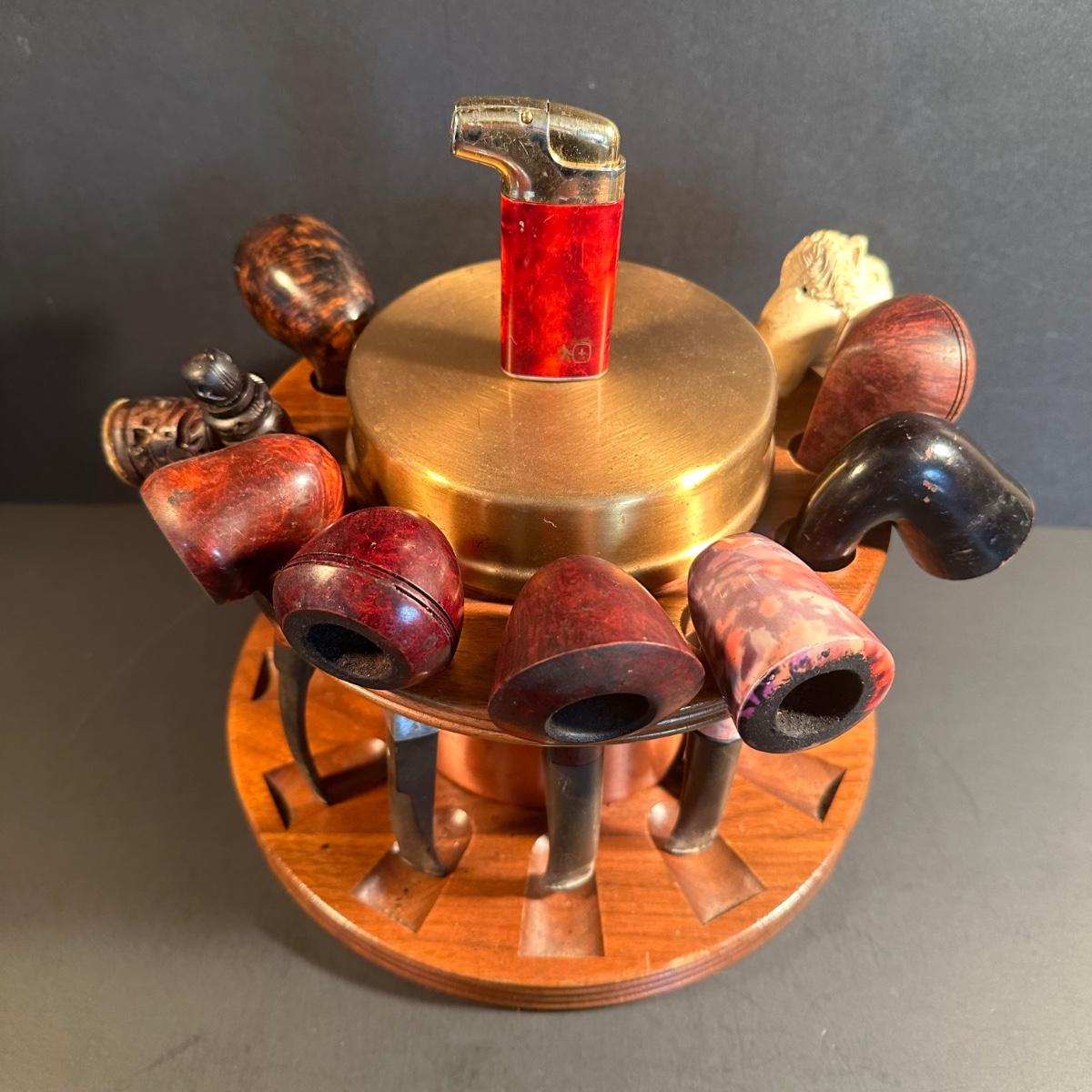 LOT 28: Vintage McDonald Products DUK-IT Walnut 12 Pipe Rest w/ Central Copper Humidor & 9 Pipes