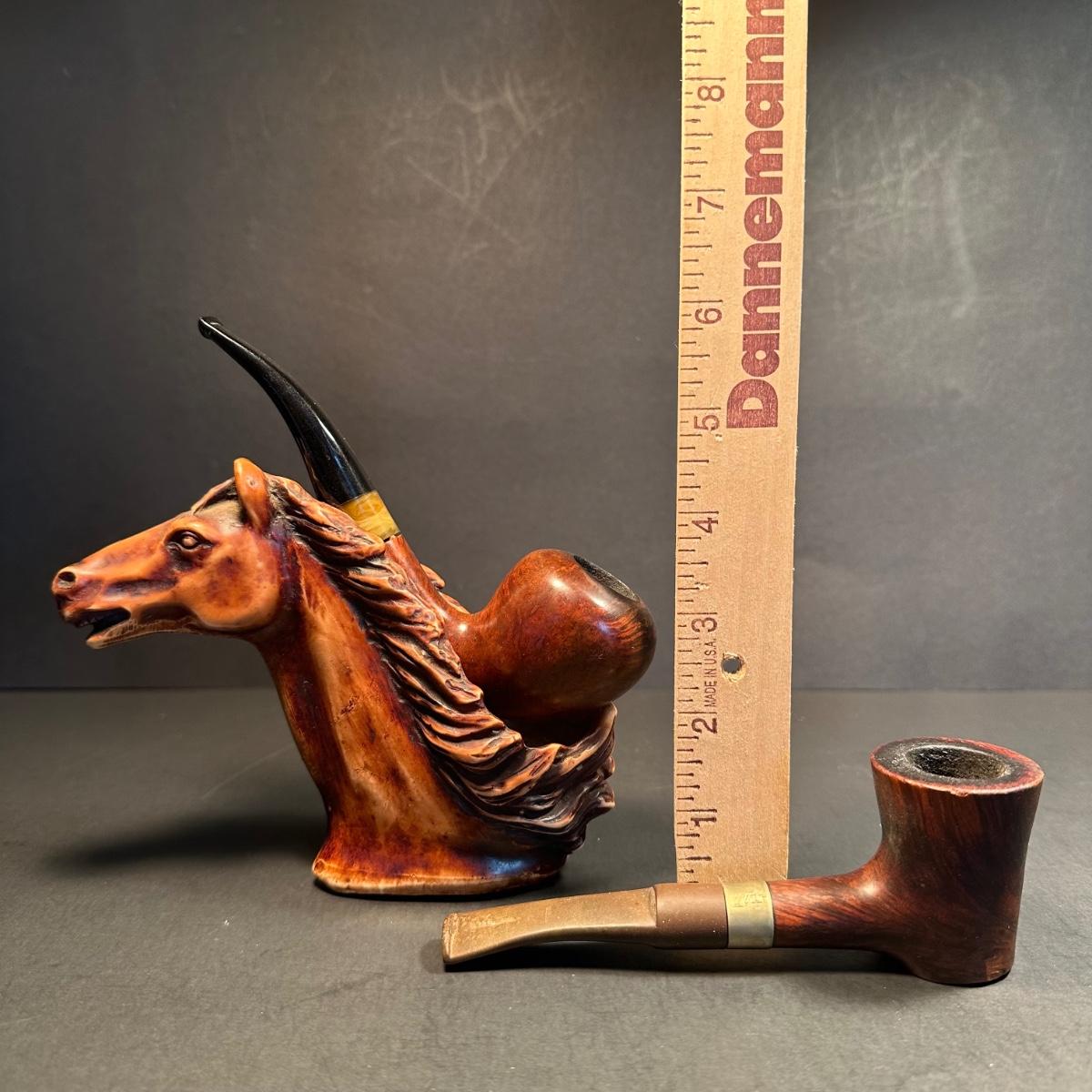 LOT 30: Vintage Classica DiMonte Hand Made Pipe, Charatan 281 DC & Comoys Horse Head Pipe Rest