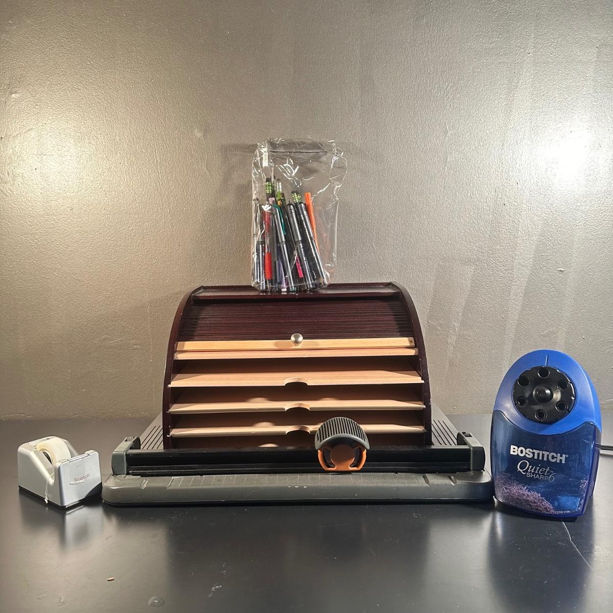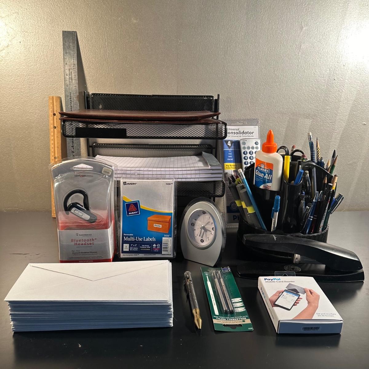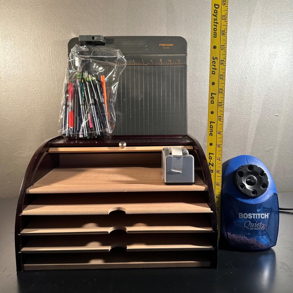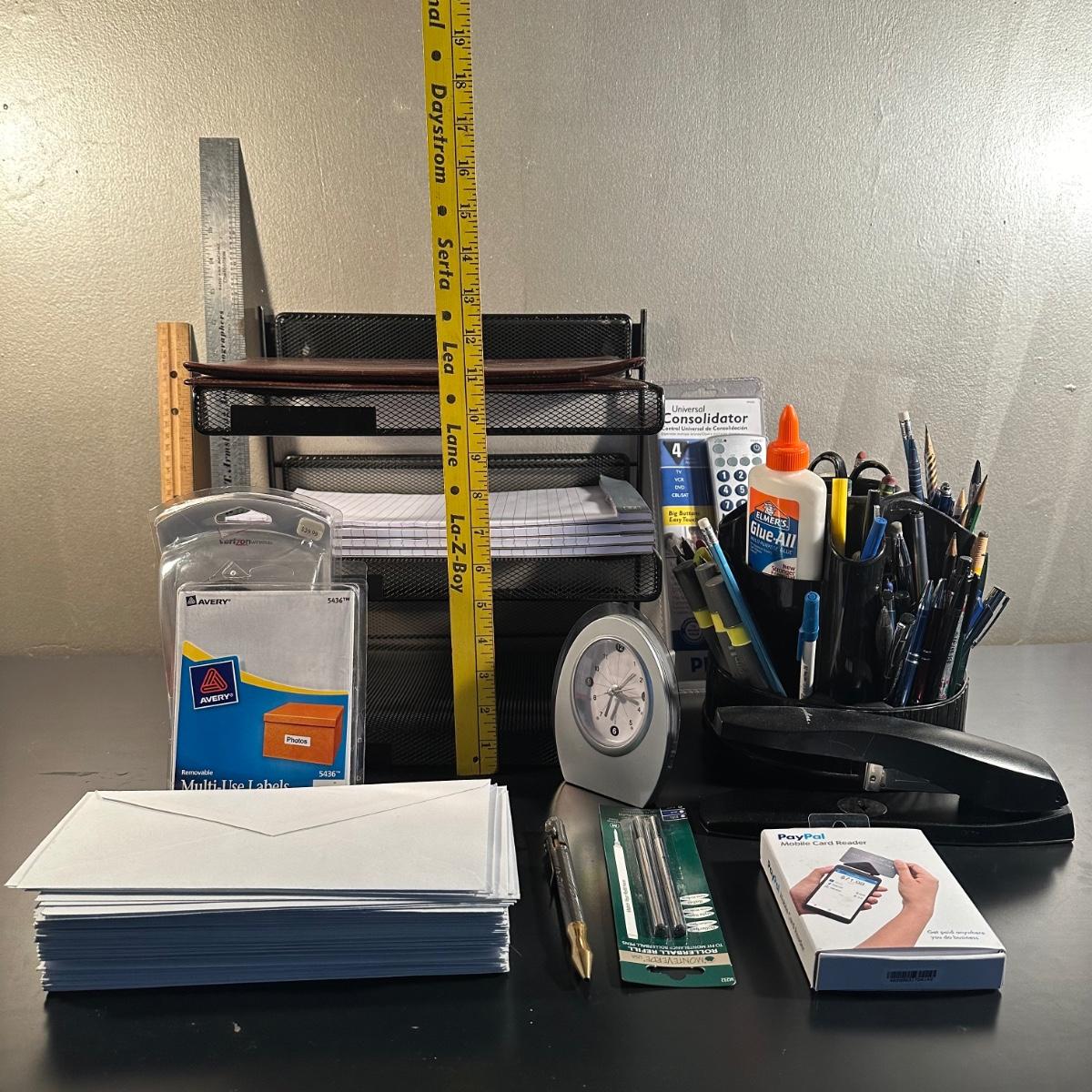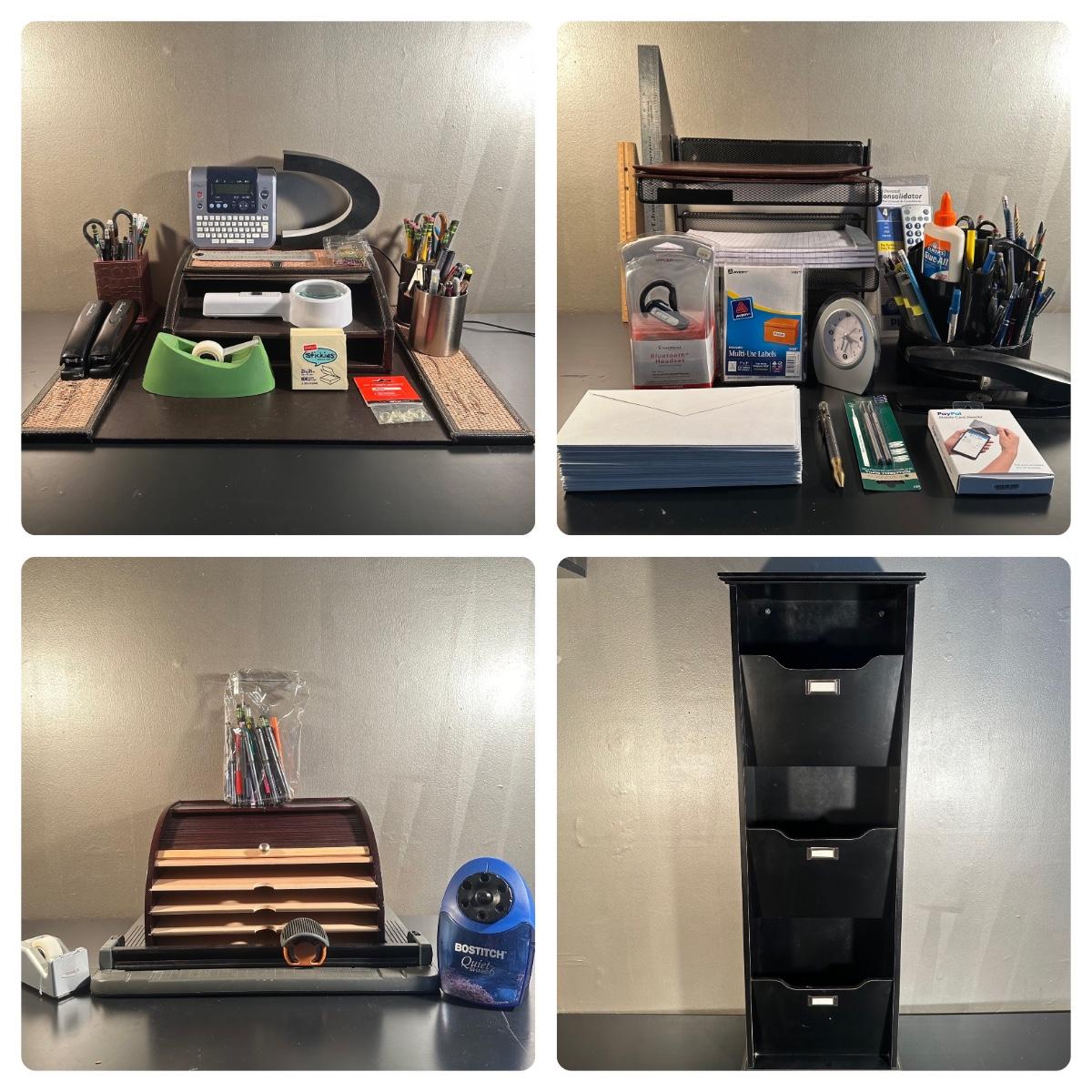 LOT 47: Office Supplies Collection - Wall Hanging File Cabinet, Desk Essentials & More