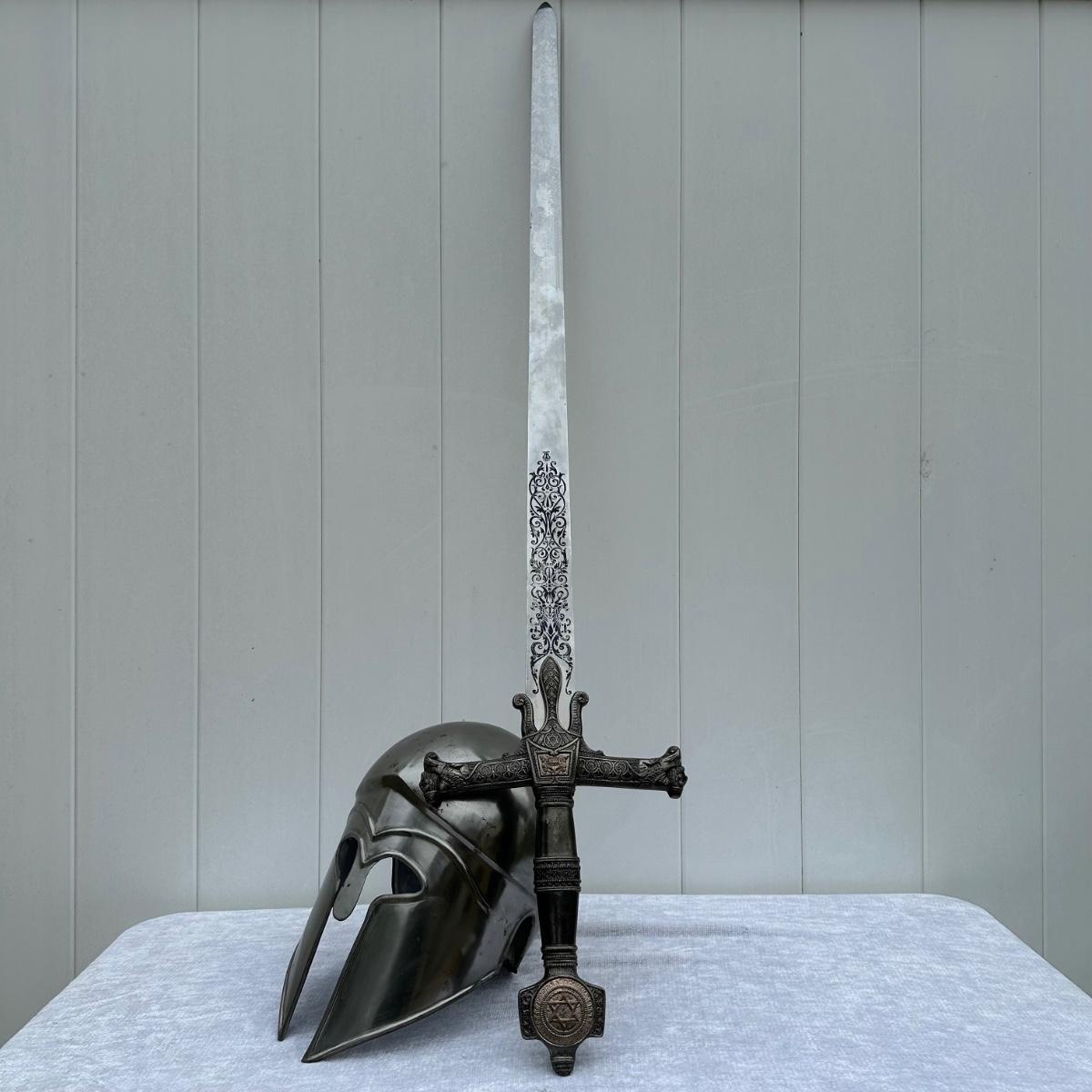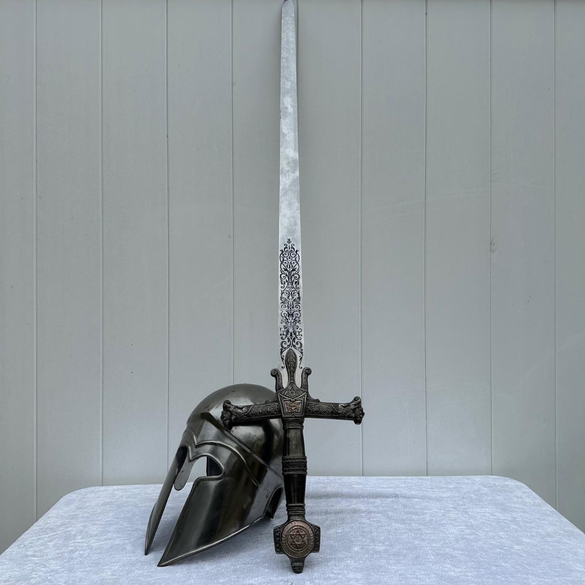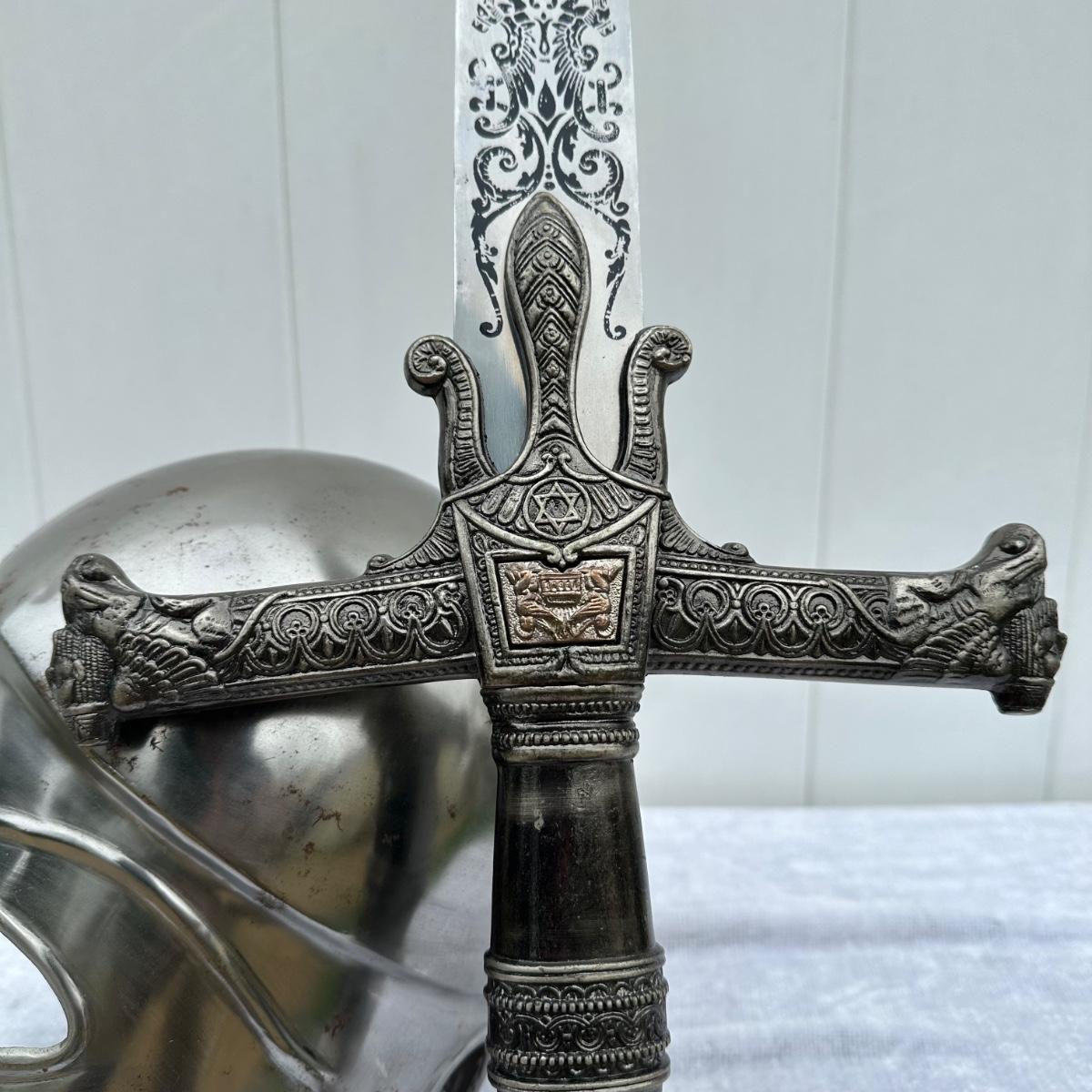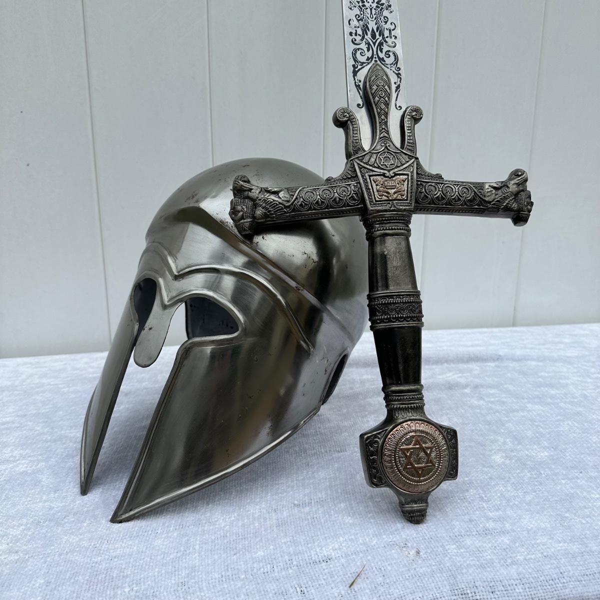 LOT 48: Greek Corinthian Armor Helmet Replica & King Salomon Replica Sword