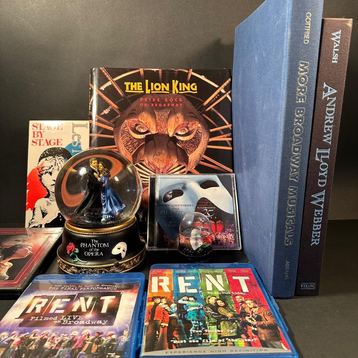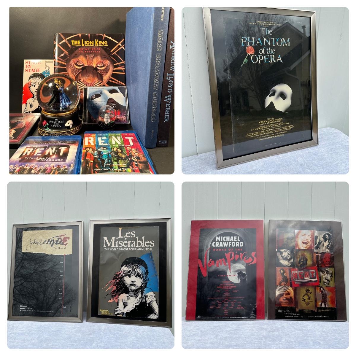 LOT 52: Framed Musical Posters, Books, VHS, DVD & Snow Globes - Phantom Of The Opera, Rent, Les Miserables & More