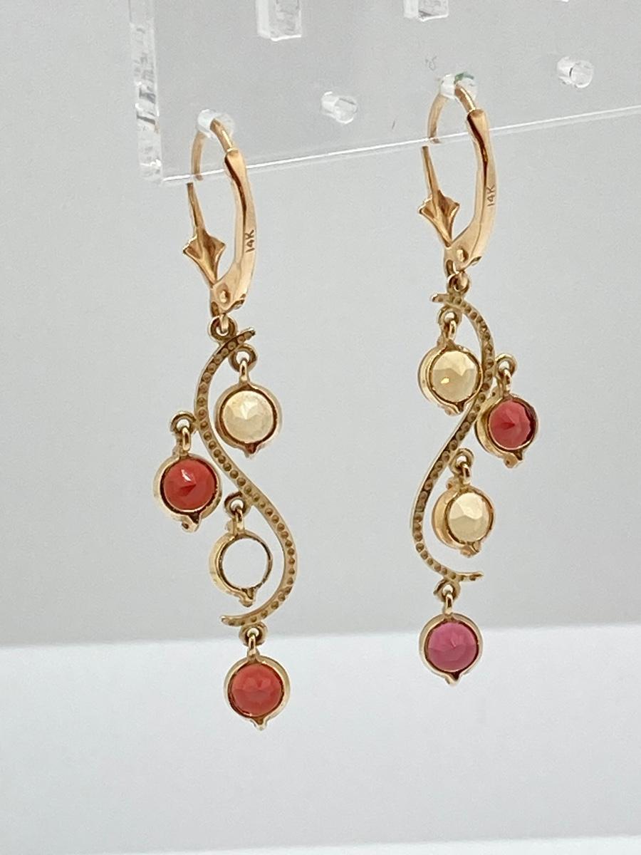 LOT 79: Gold and Colored Gemstone Dangle Earrings - 14K, TW 3.19g