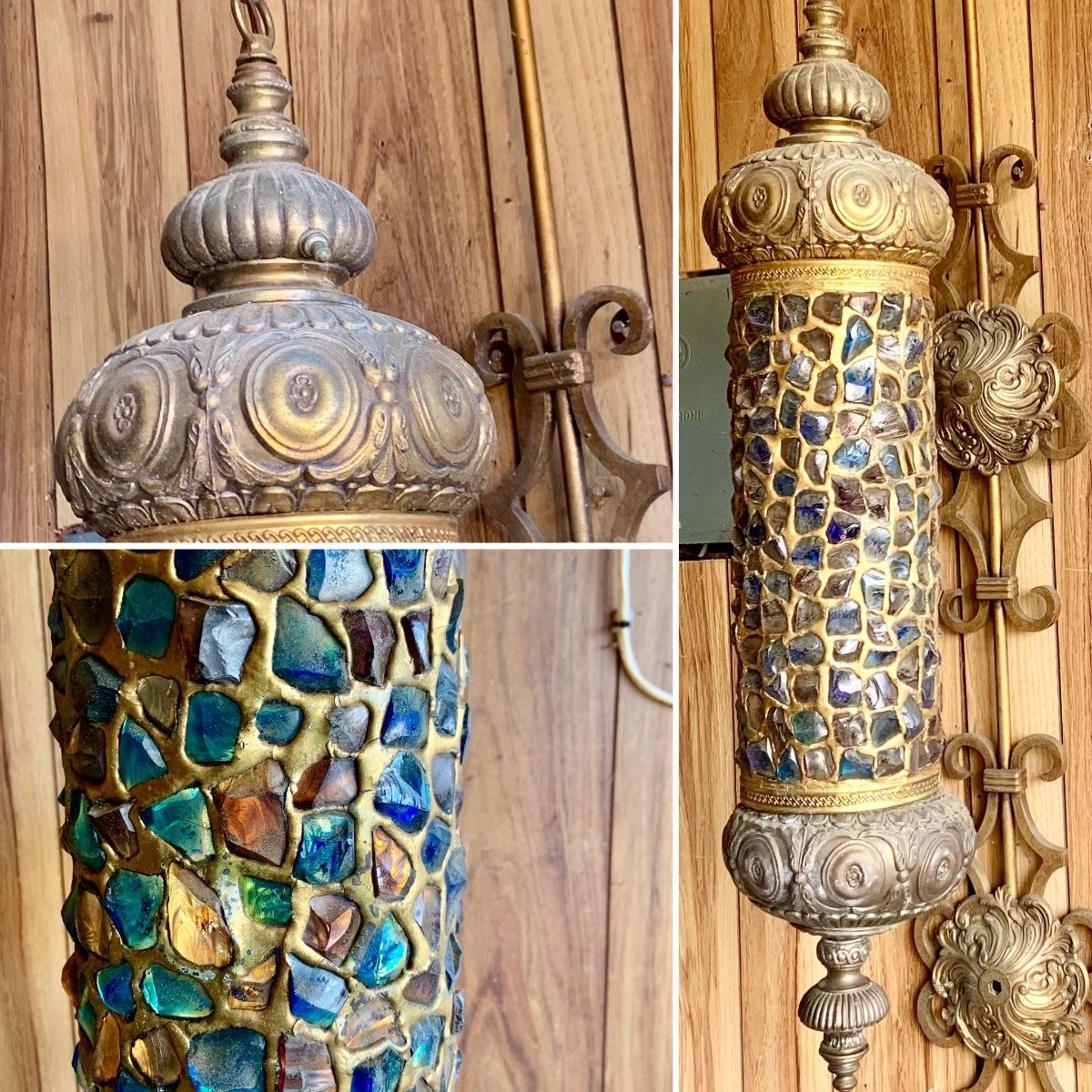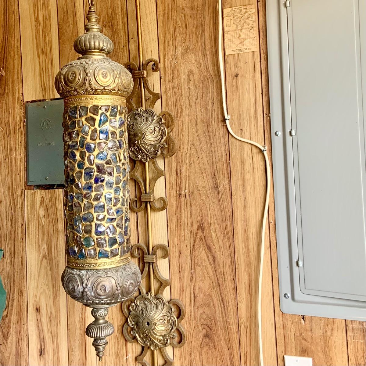 LOT:84: Unique Turkish Style Wall Sconce Hanging Lamp with Colorful Stones