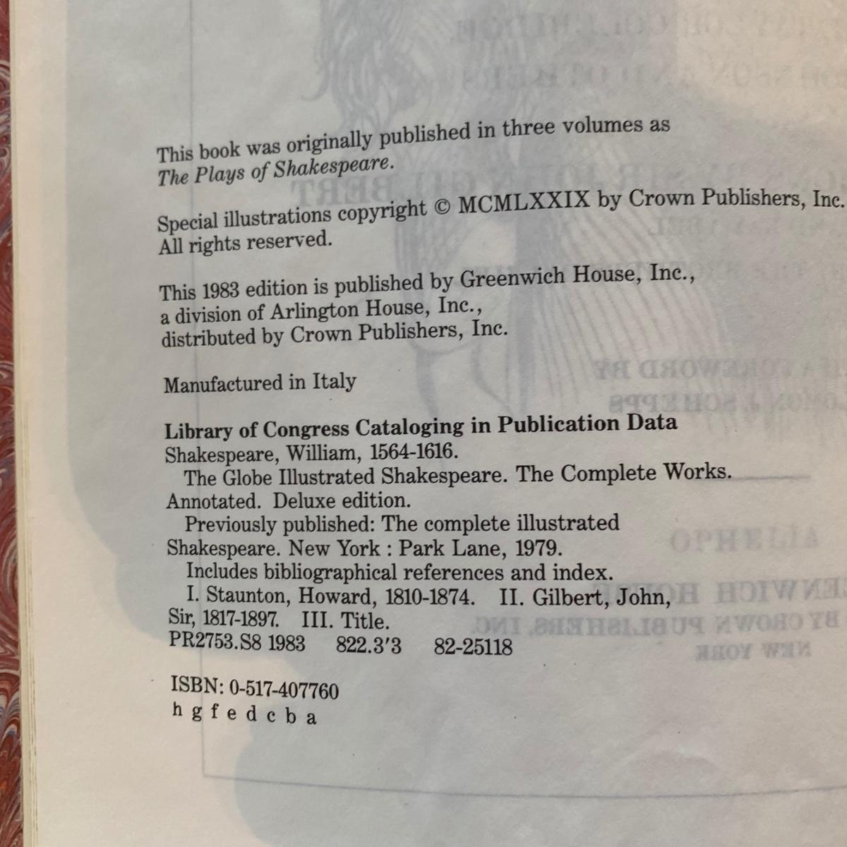 LOT 109: William Shakespeare Literary Collections and Other Books Conserning Shakespeare