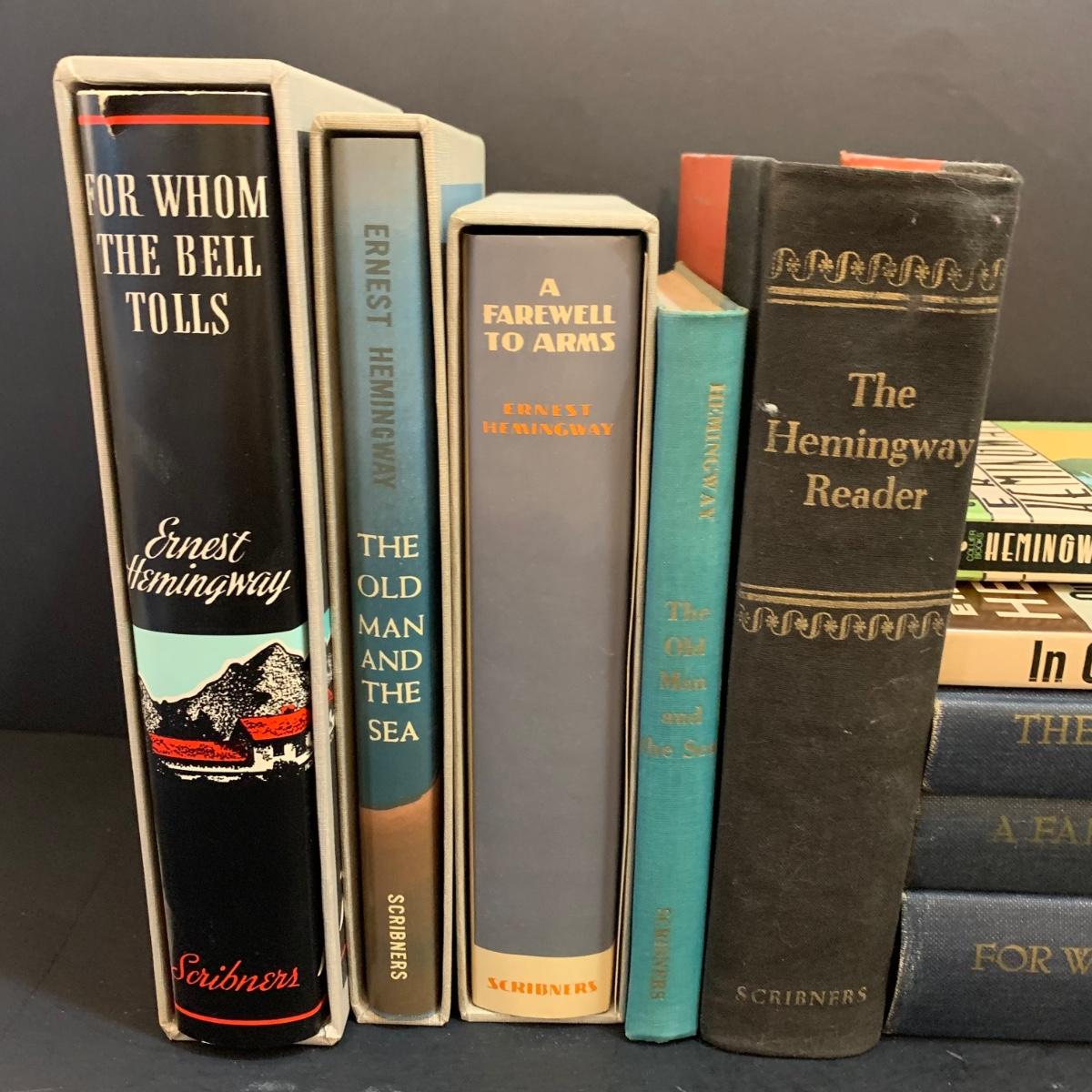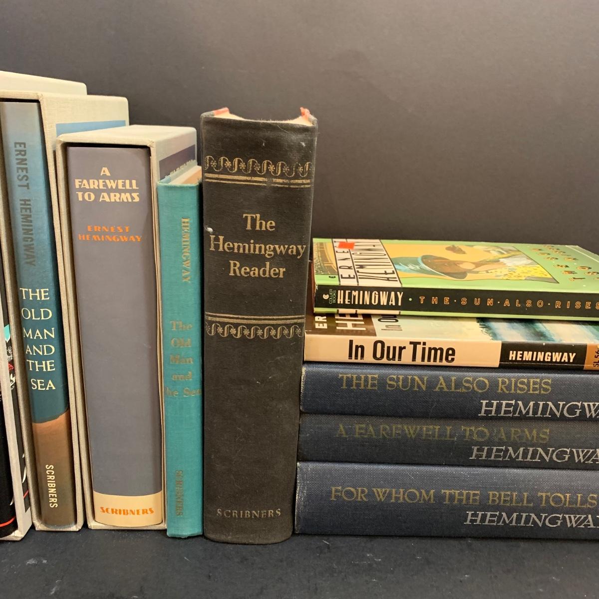 LOT 132: Ernst Hemmingway Collection: Set of 3 First Edition Library Novels w/Slipcase & Dust Covers and 7 More Novels