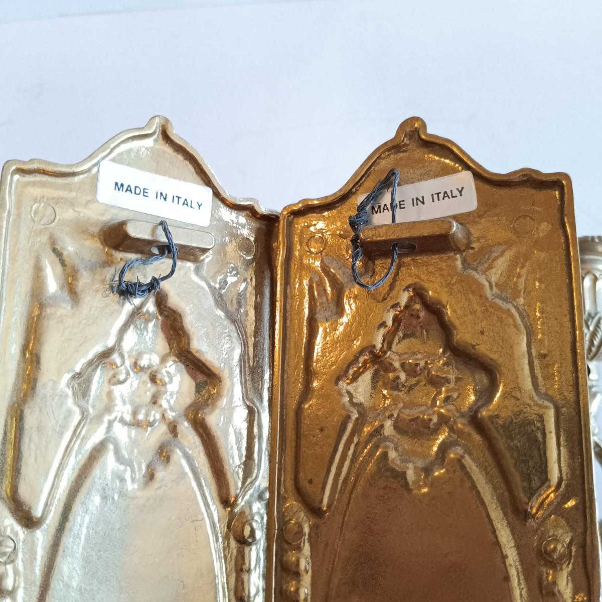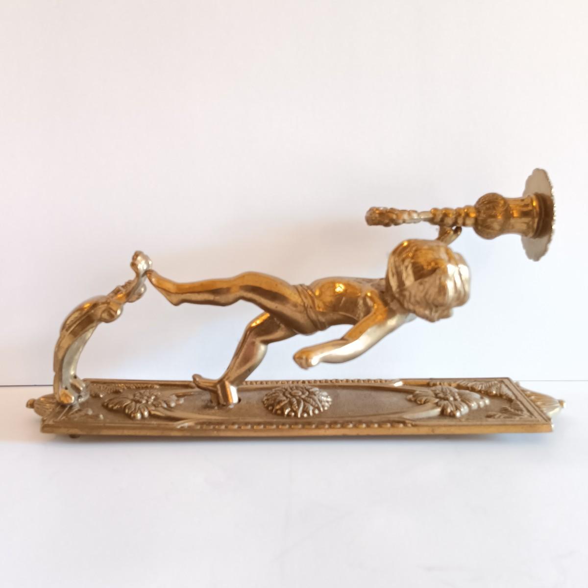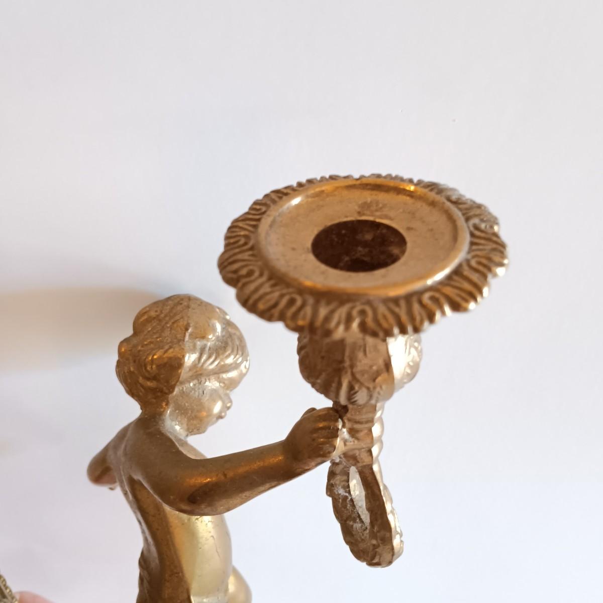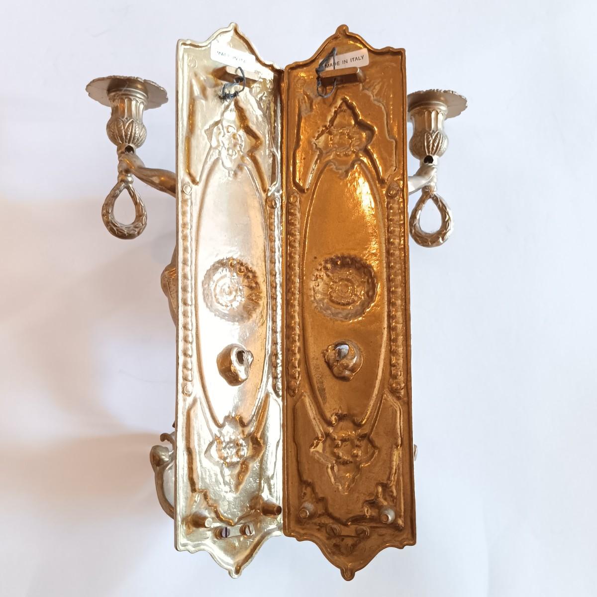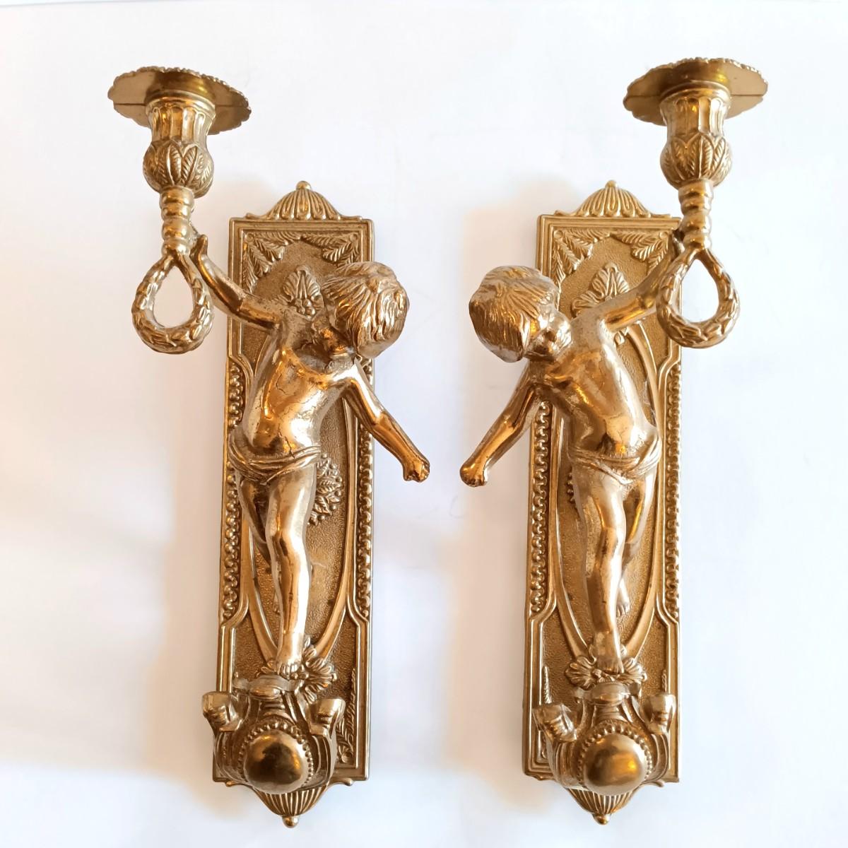 LOT 168: Set of Italian Brass Cherub Sconces with Small Gilt Mirror