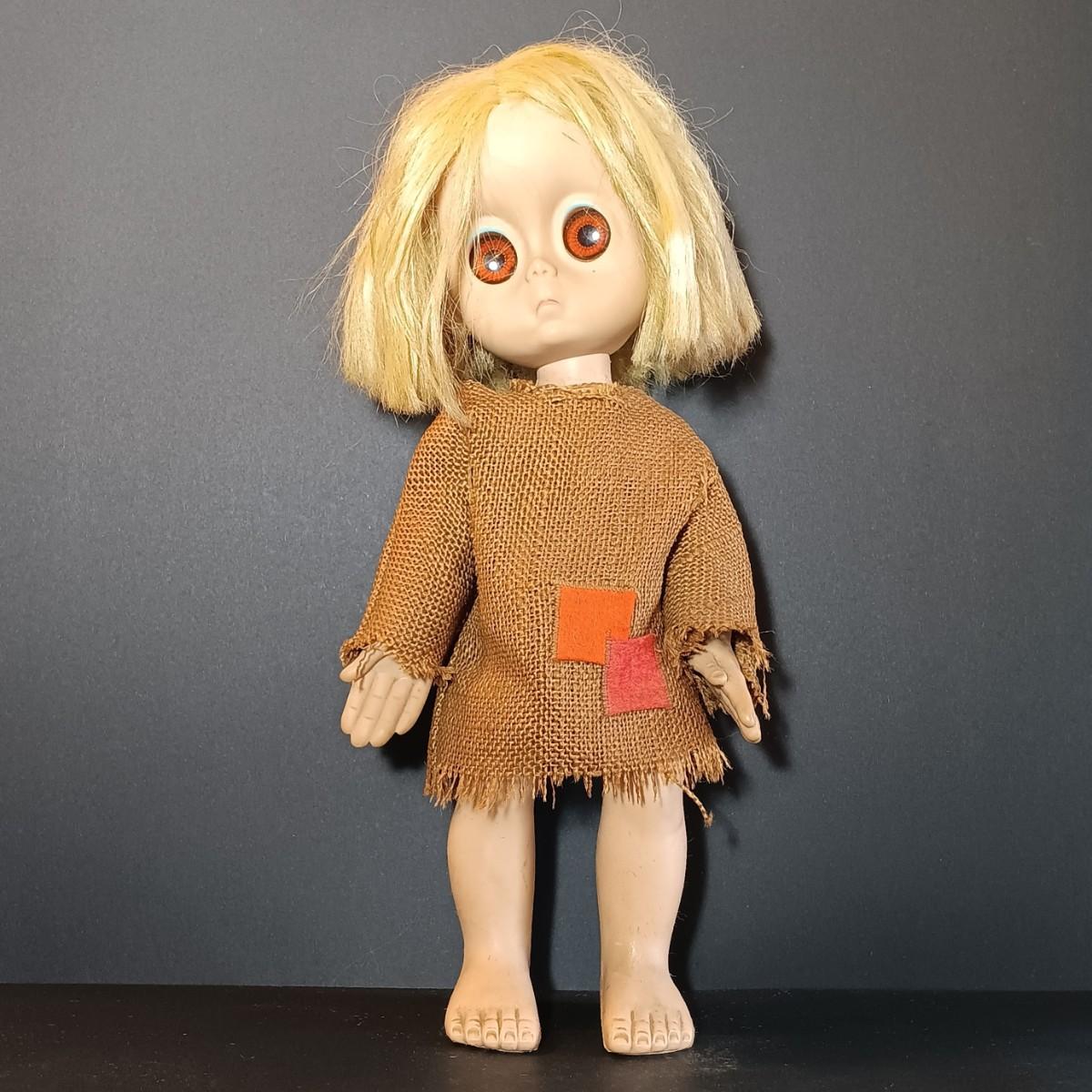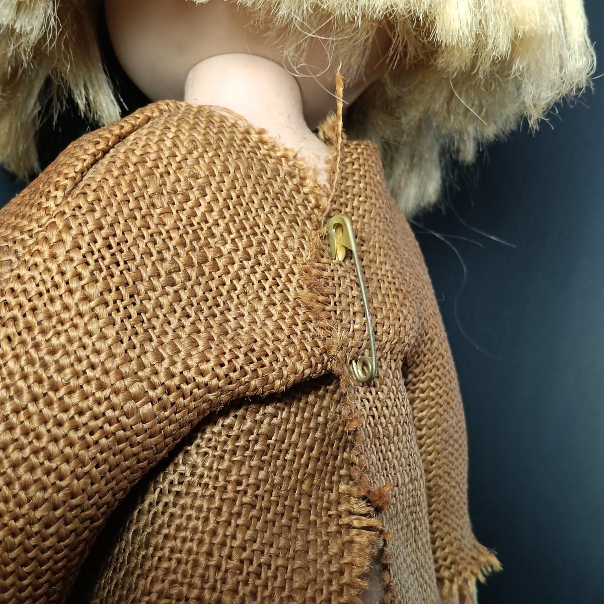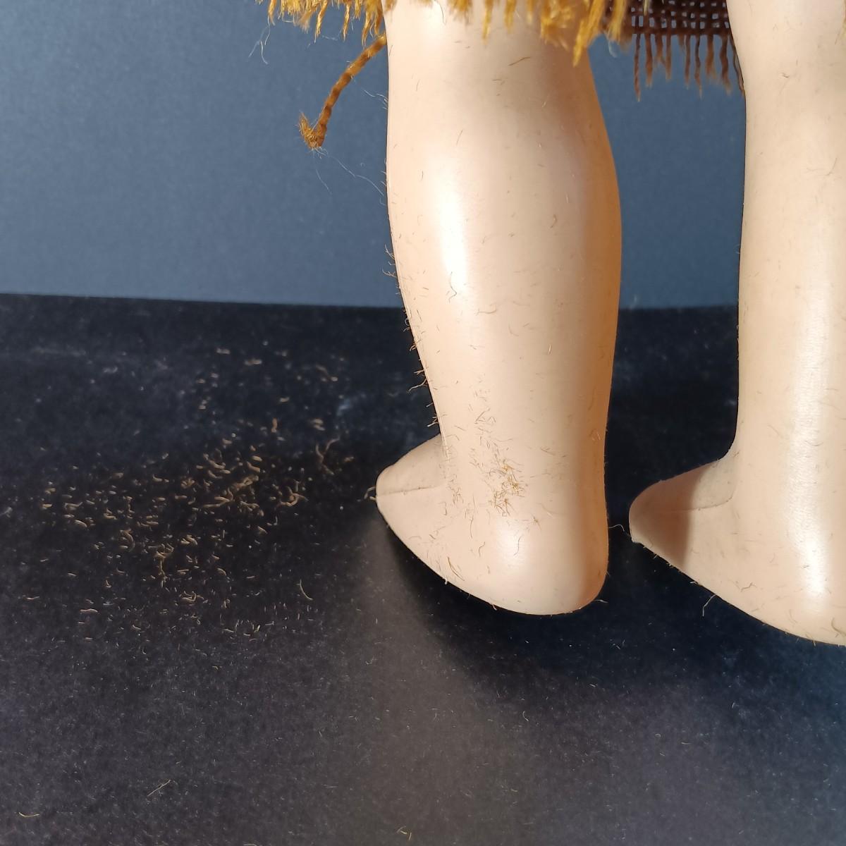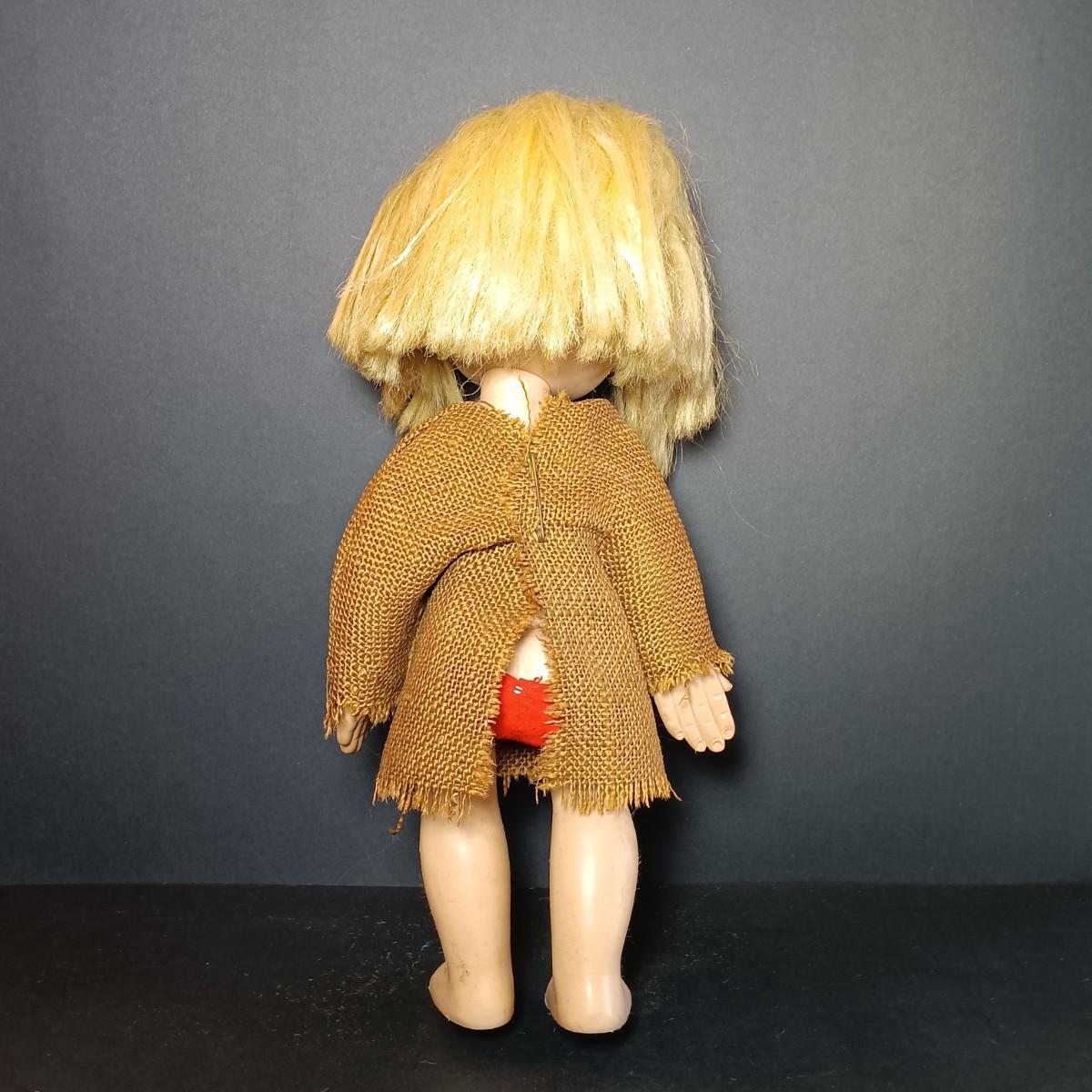 Doll has some marks from previous use, dress has dried out and is flaking some. Teardrop is missing.