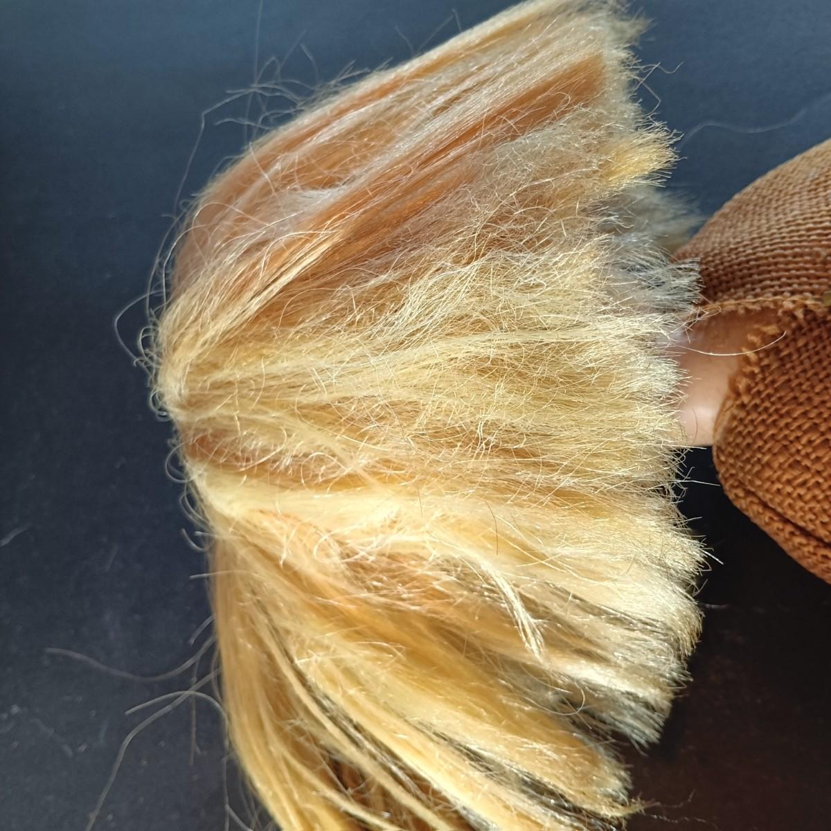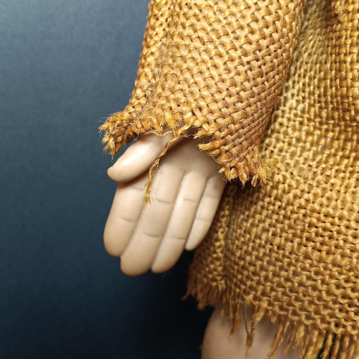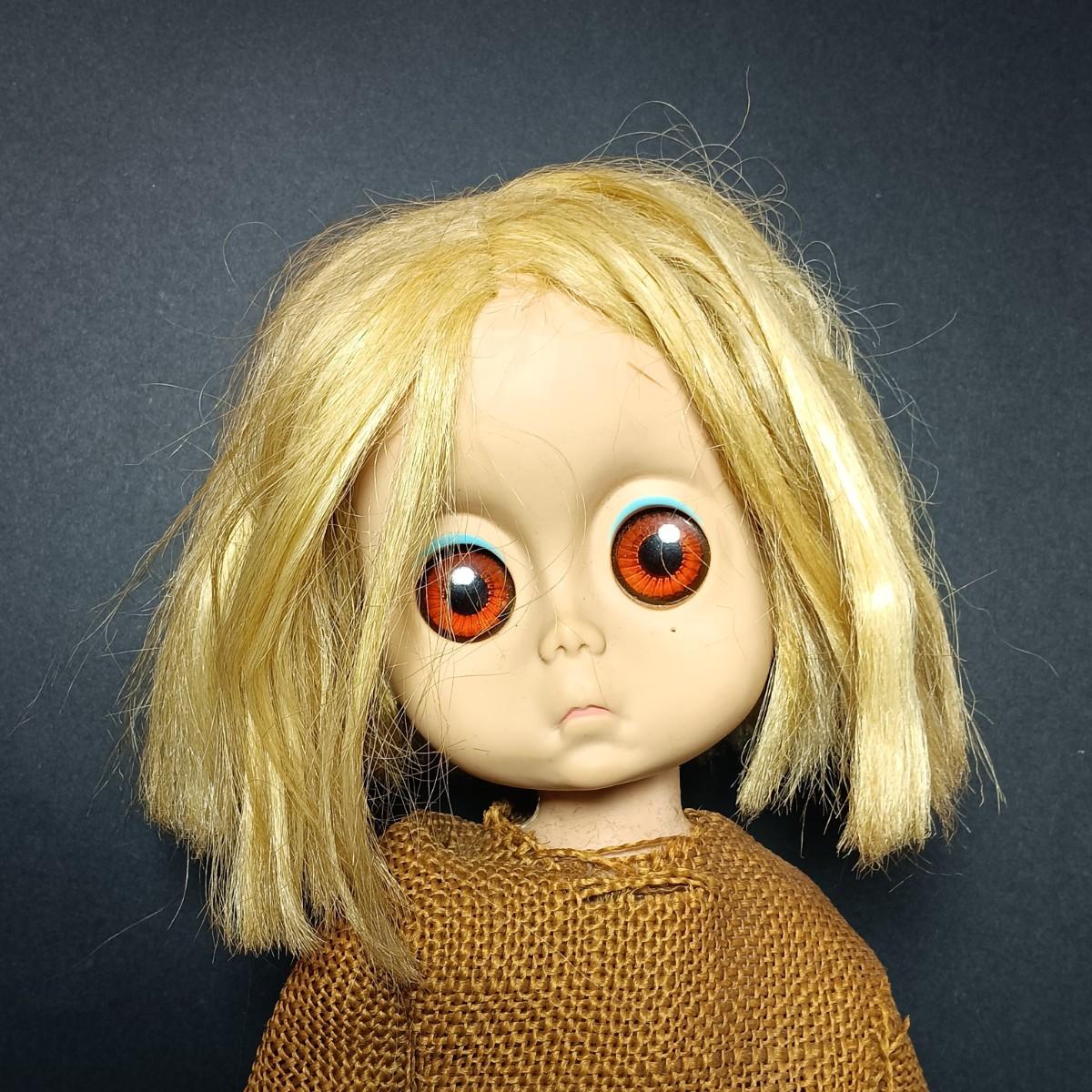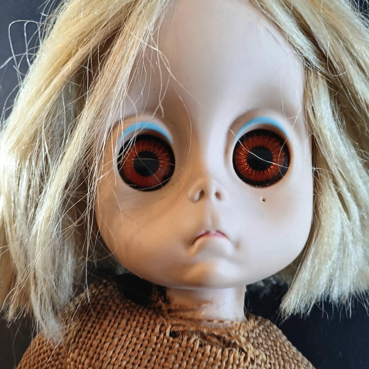 Doll has some marks from previous use, dress has dried out and is flaking some. Teardrop is missing.