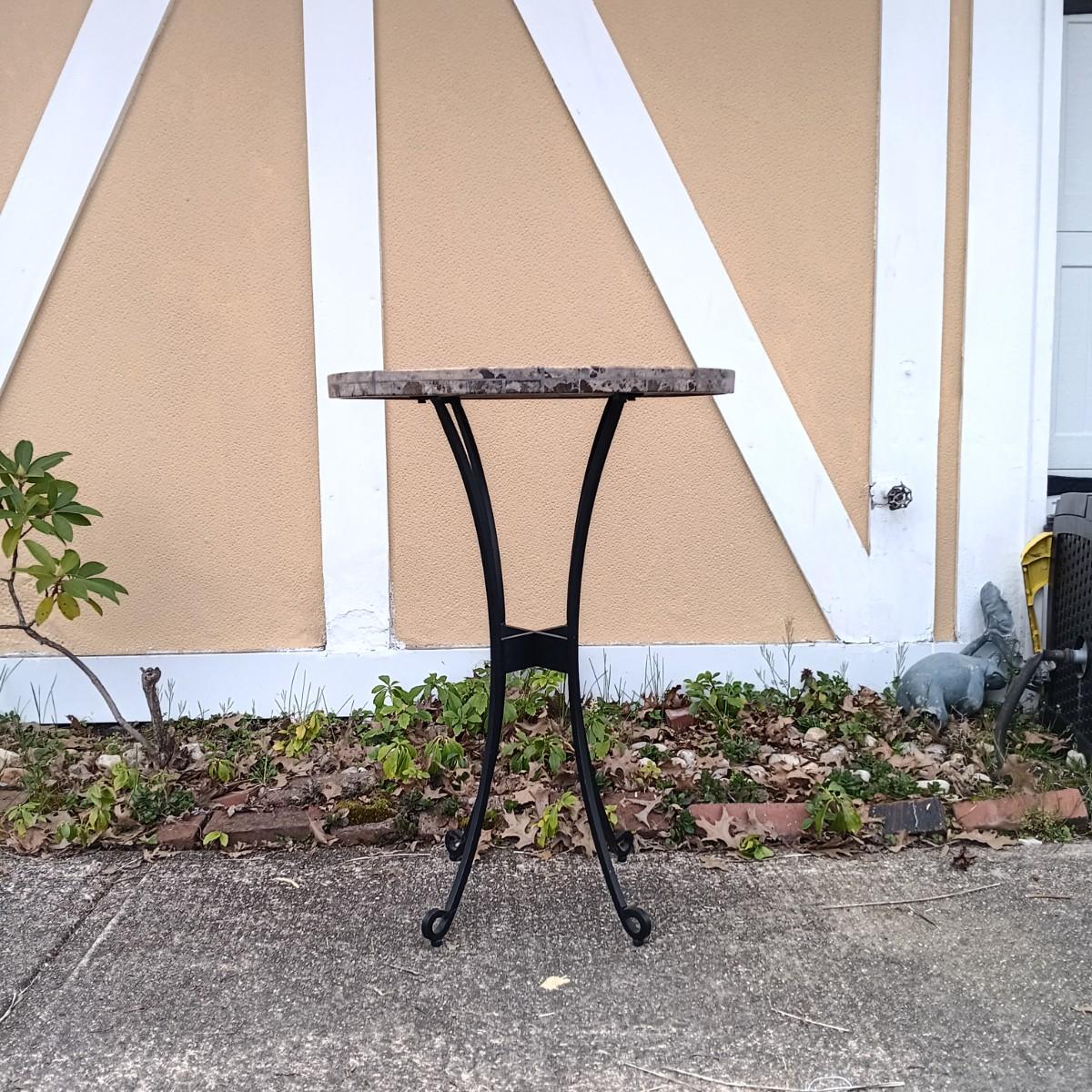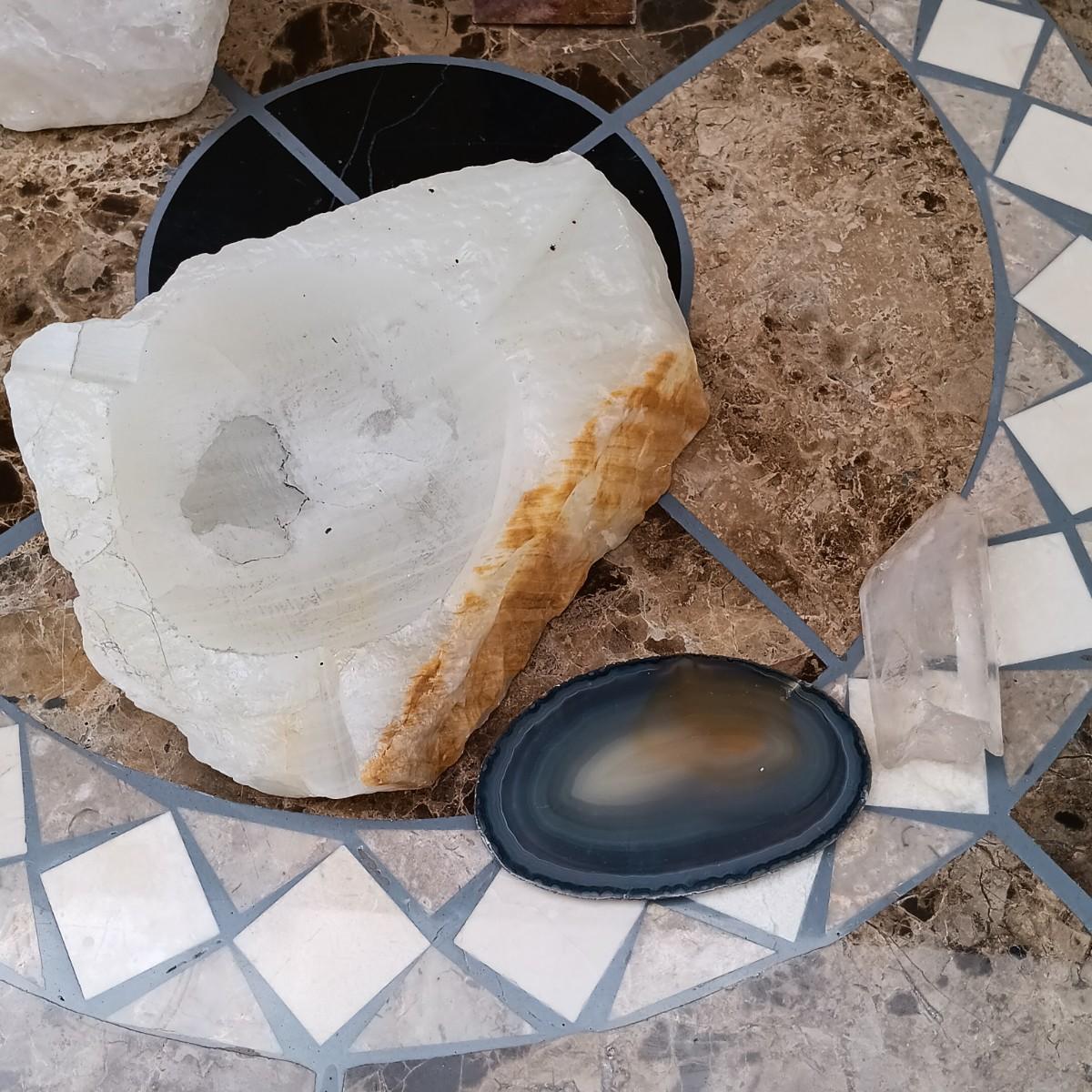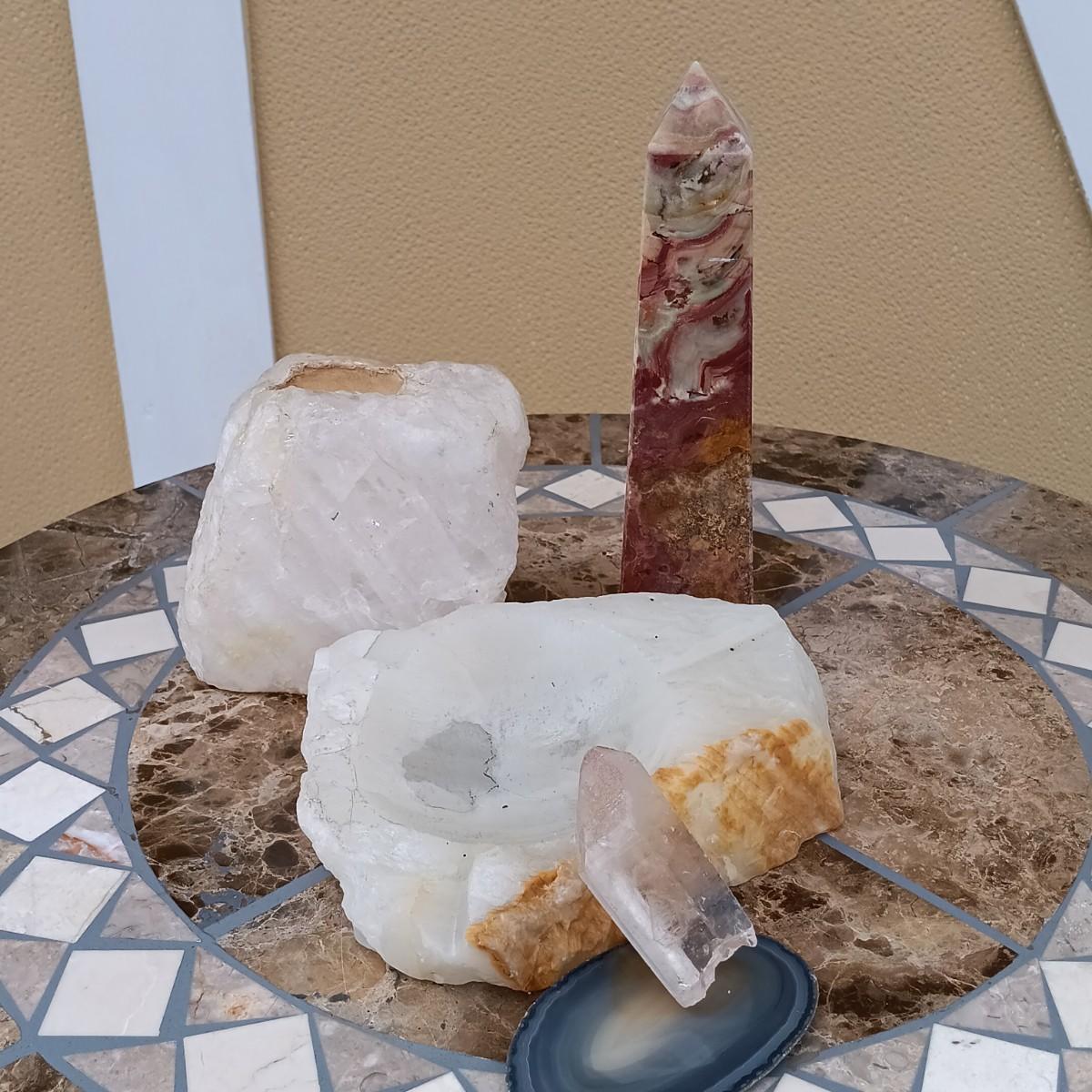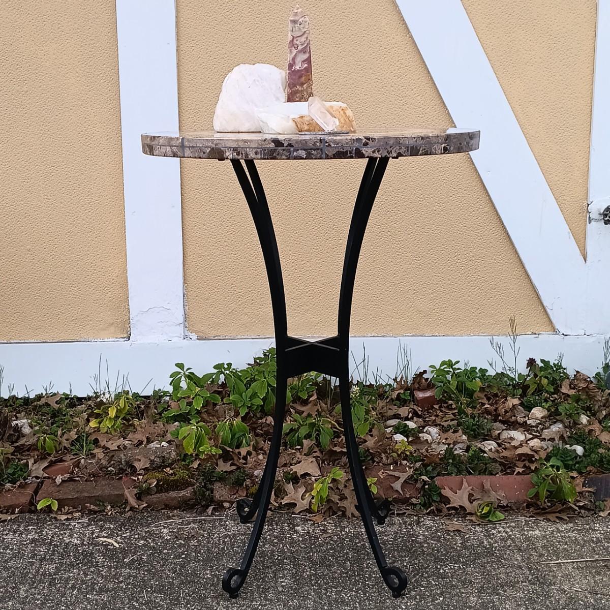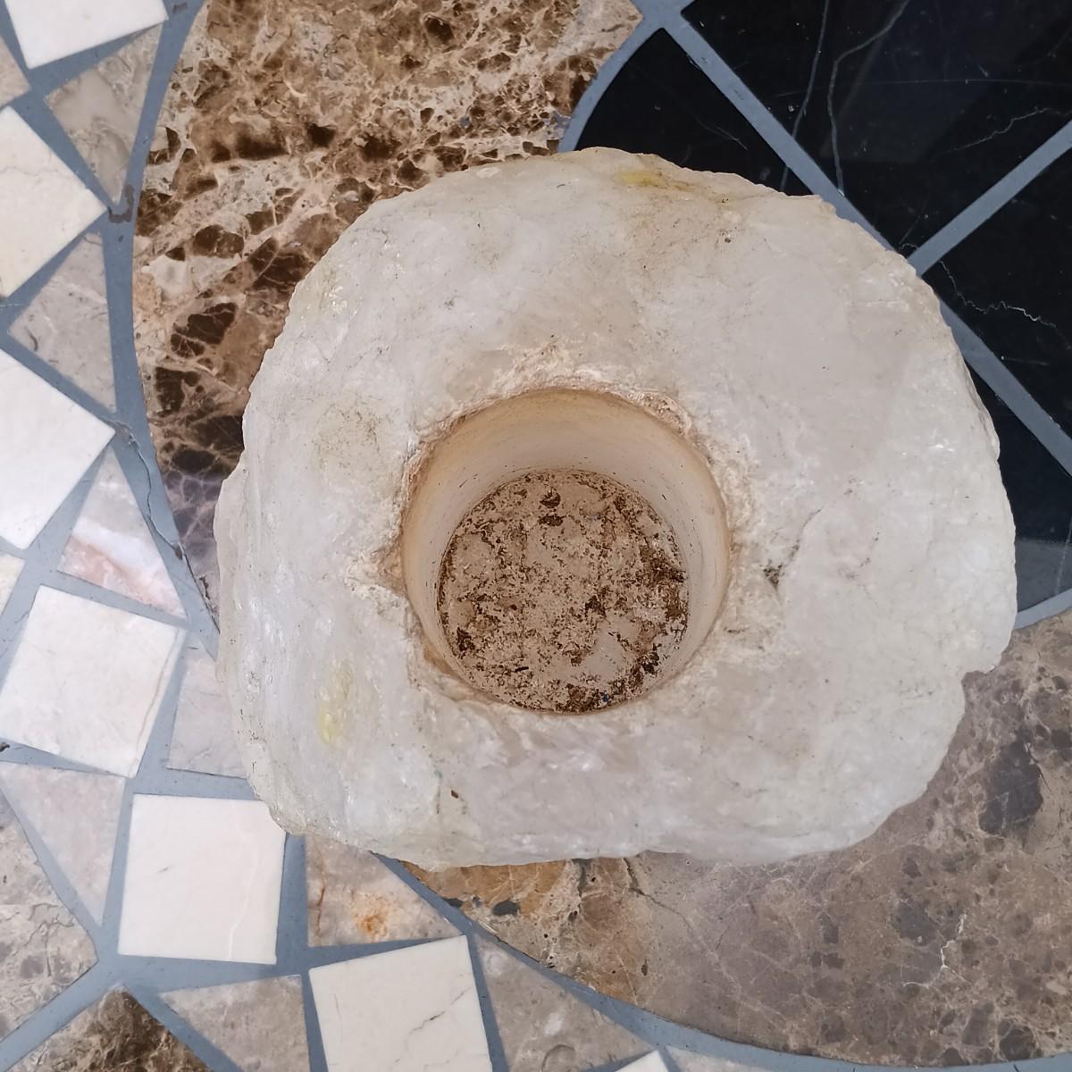 LOT 181: Marble Top Side Table with Onyx Tower, Salt Rock Candle Holder & More
