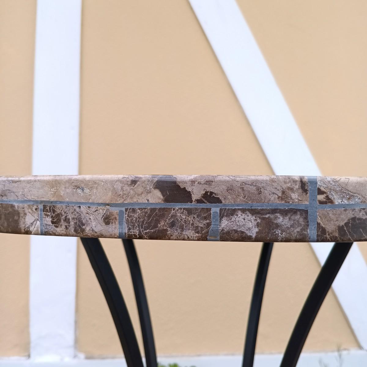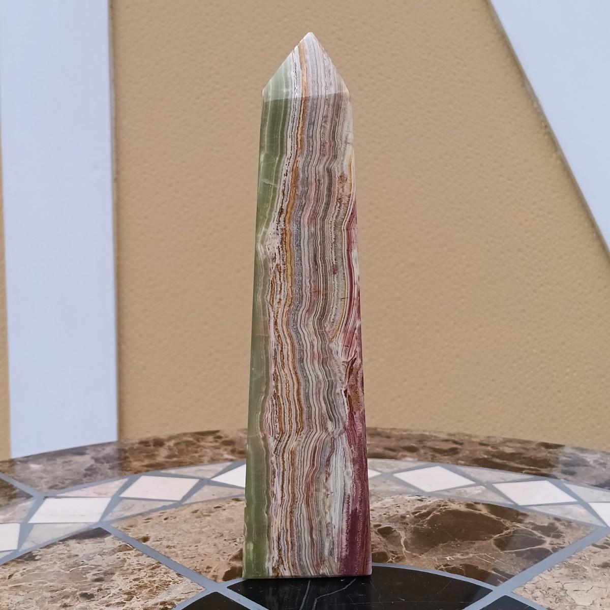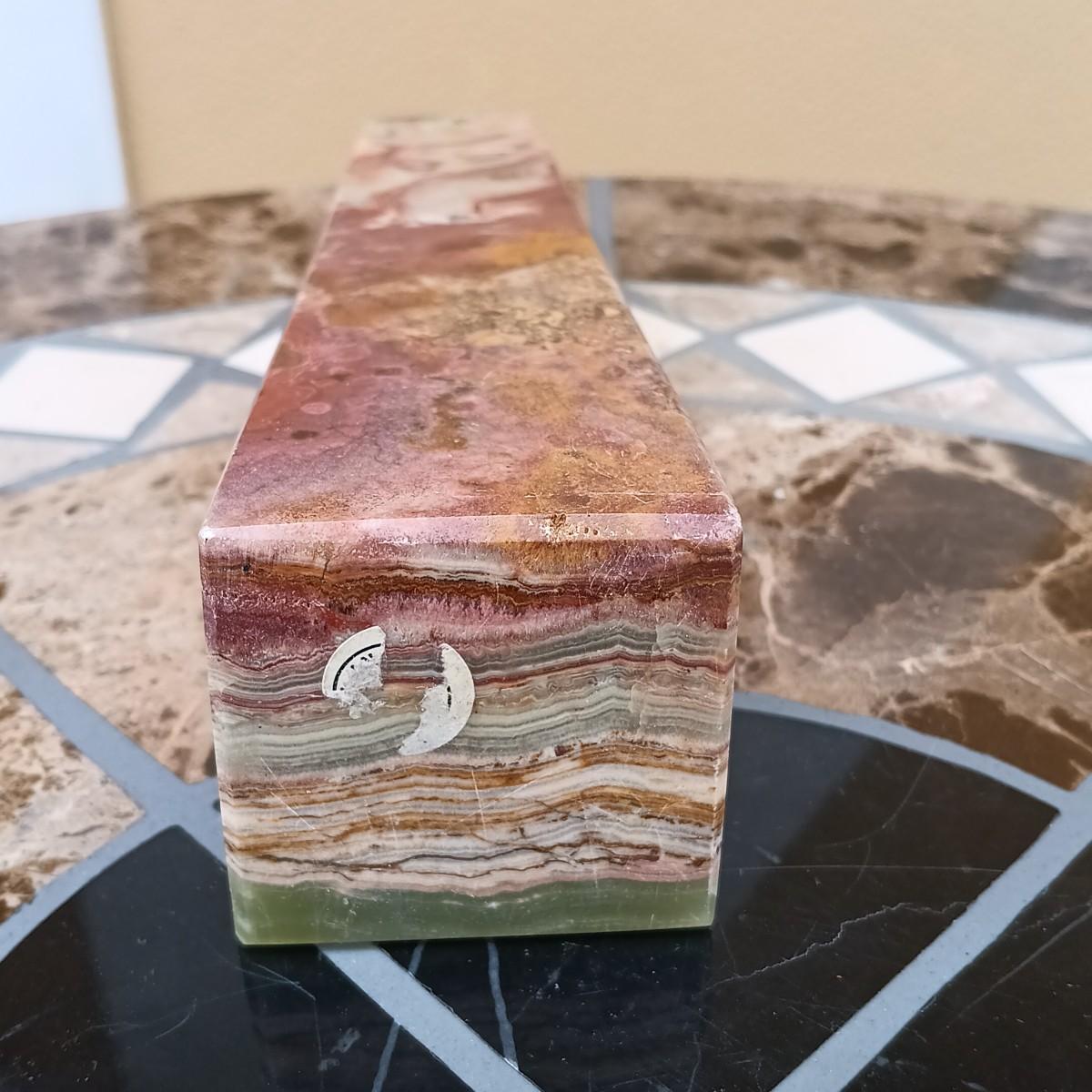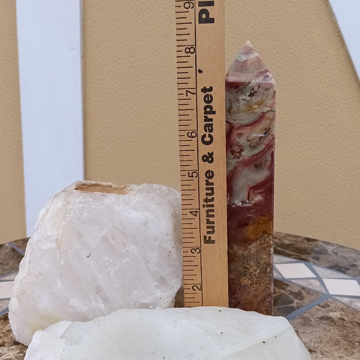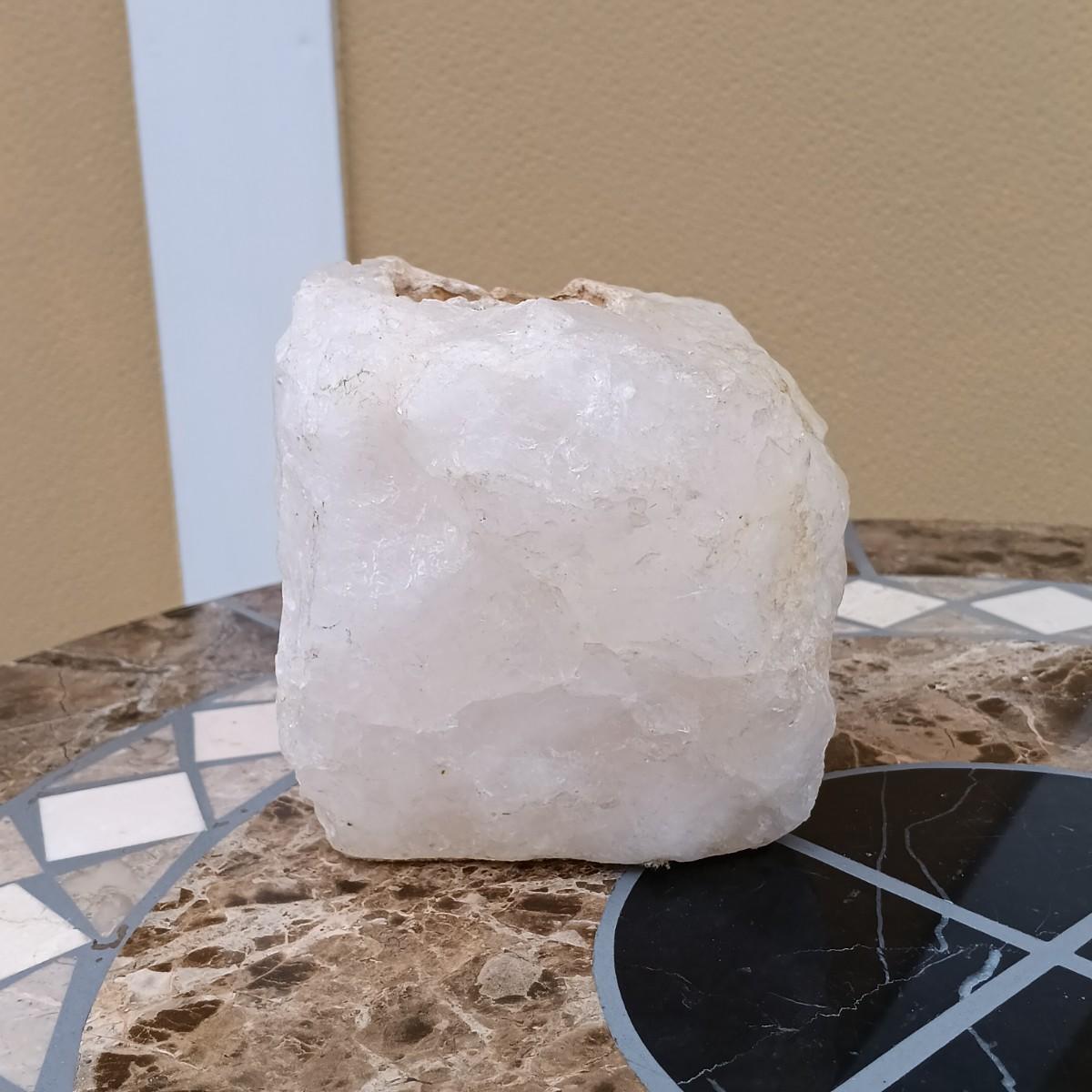 LOT 181: Marble Top Side Table with Onyx Tower, Salt Rock Candle Holder & More