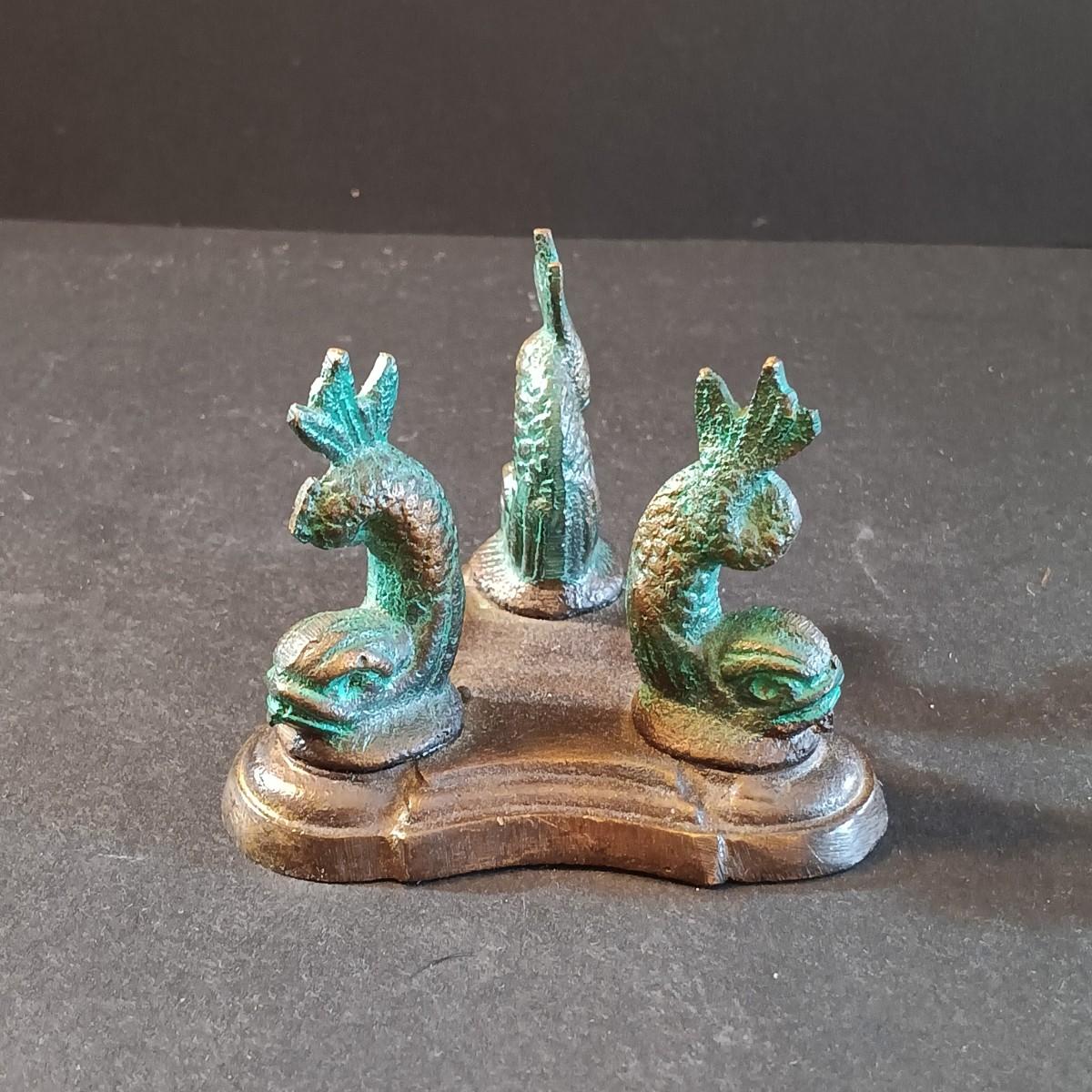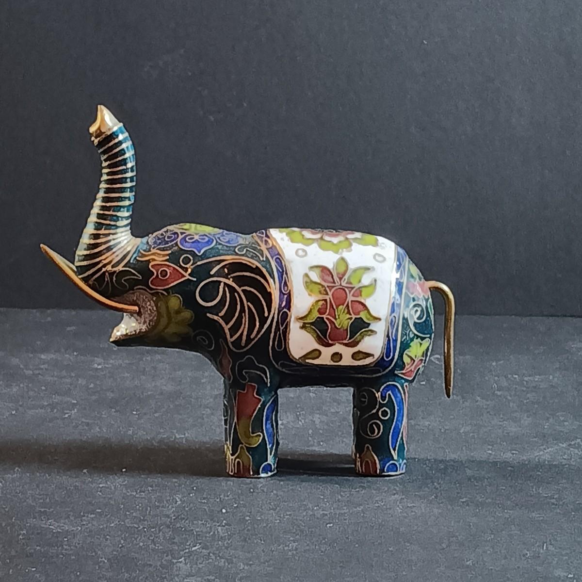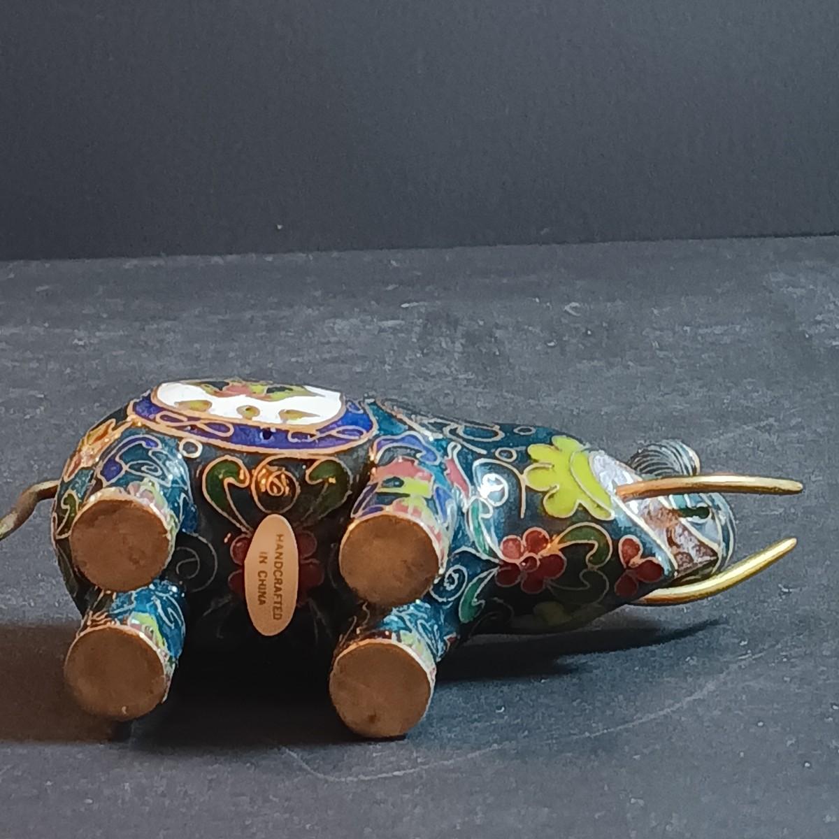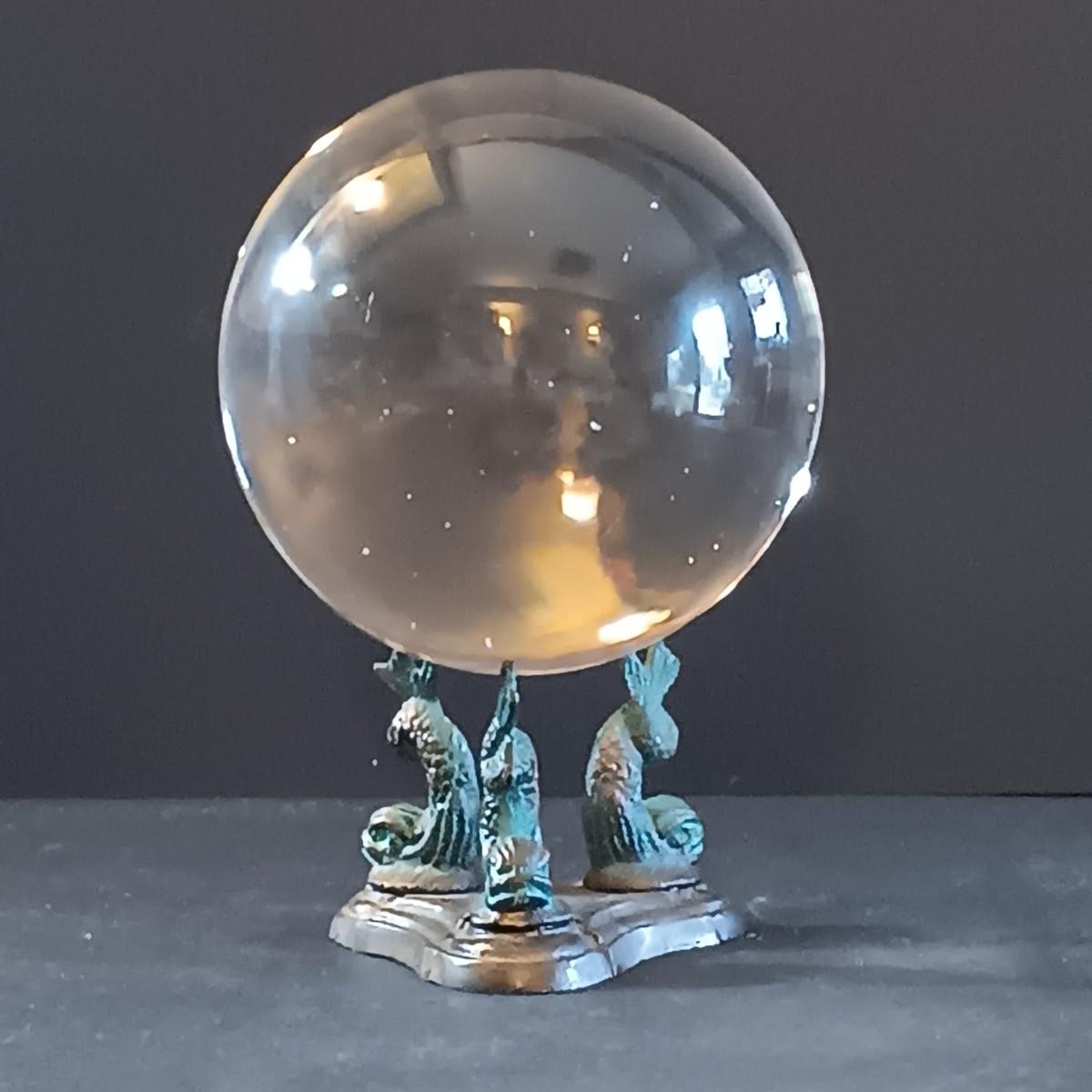 LOT 184: Controlled Bubble Vase w/ Mini Cloisonne Elephant, Brass Koi Base & Glass Orb