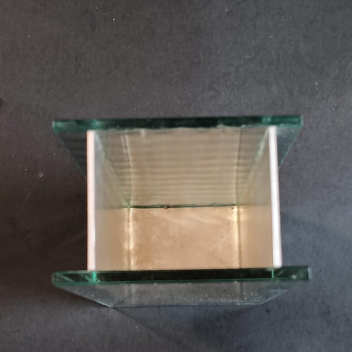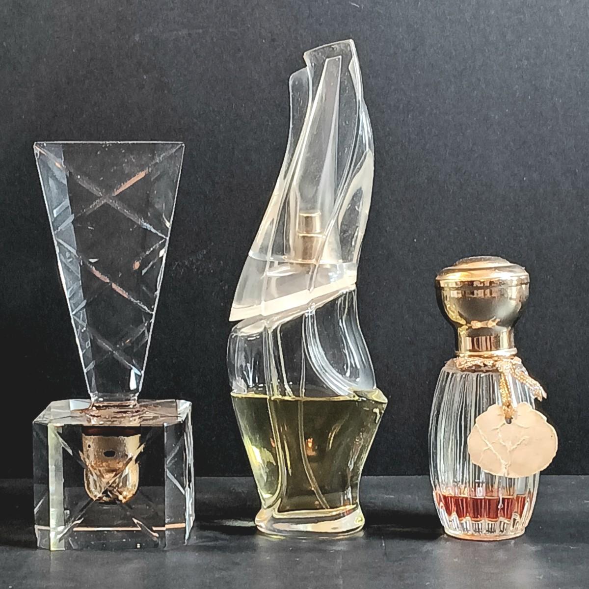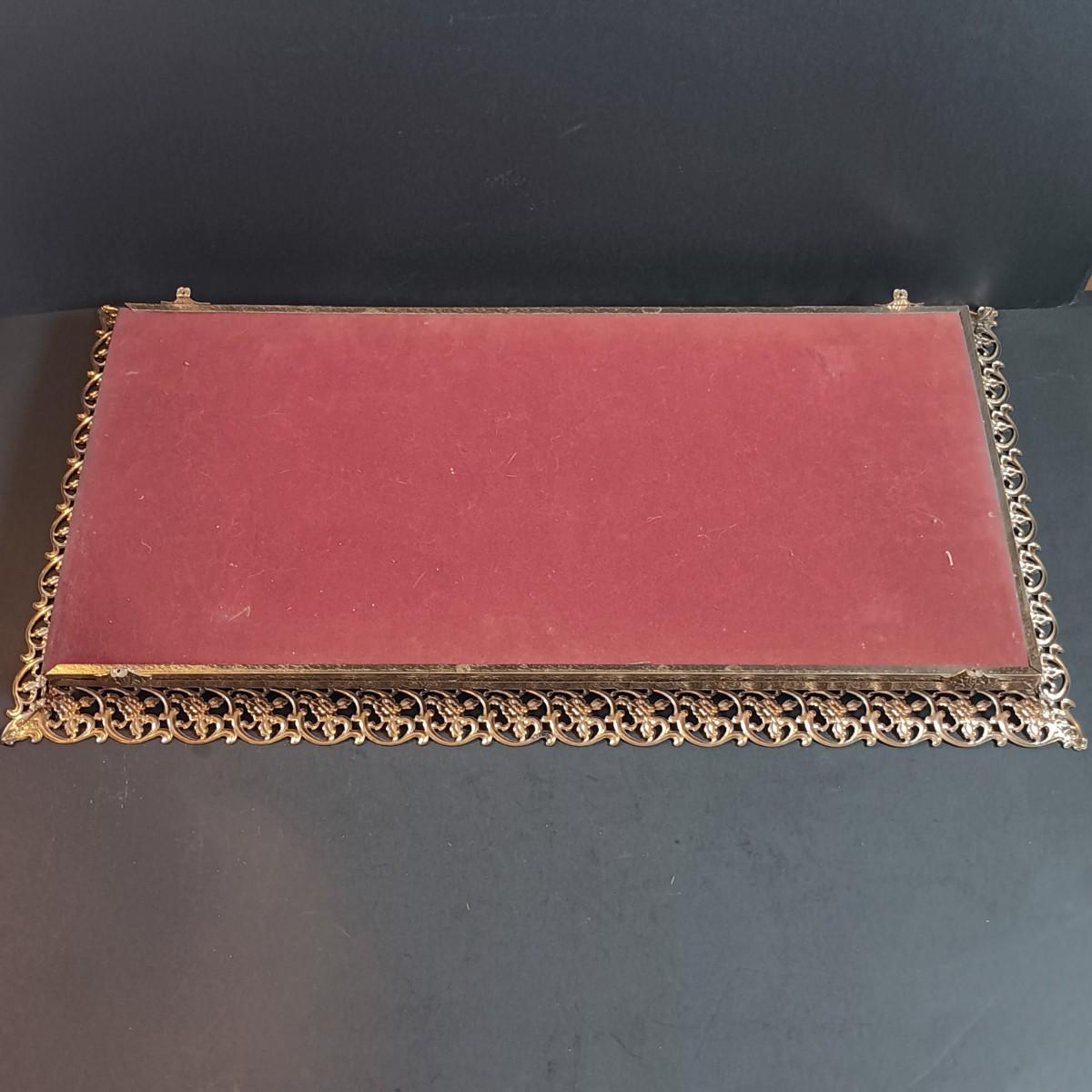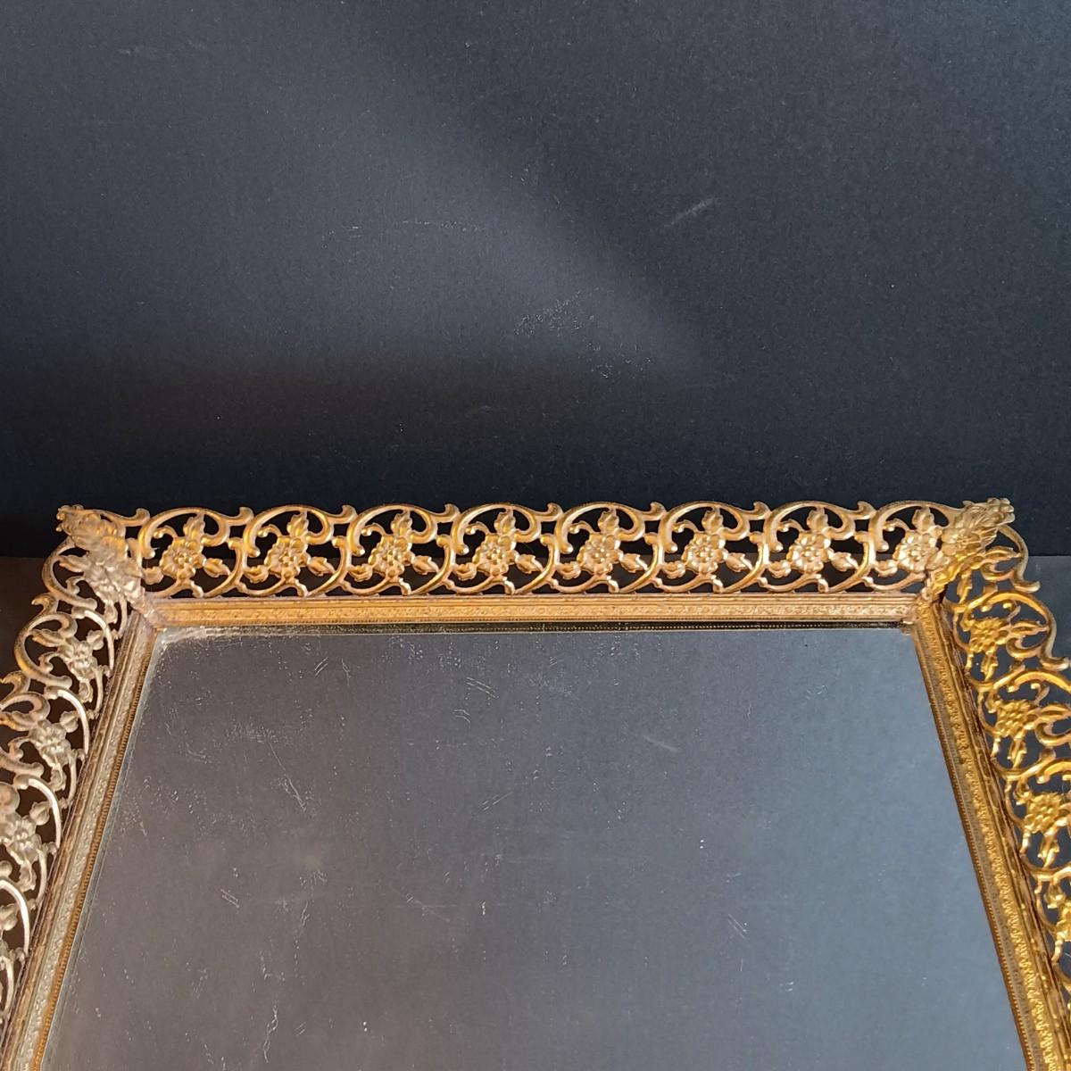LOT 189: Vintage Perfume Bottles w/ Mirrored Tray, Bulova Vase & Soapstone Tissue Box