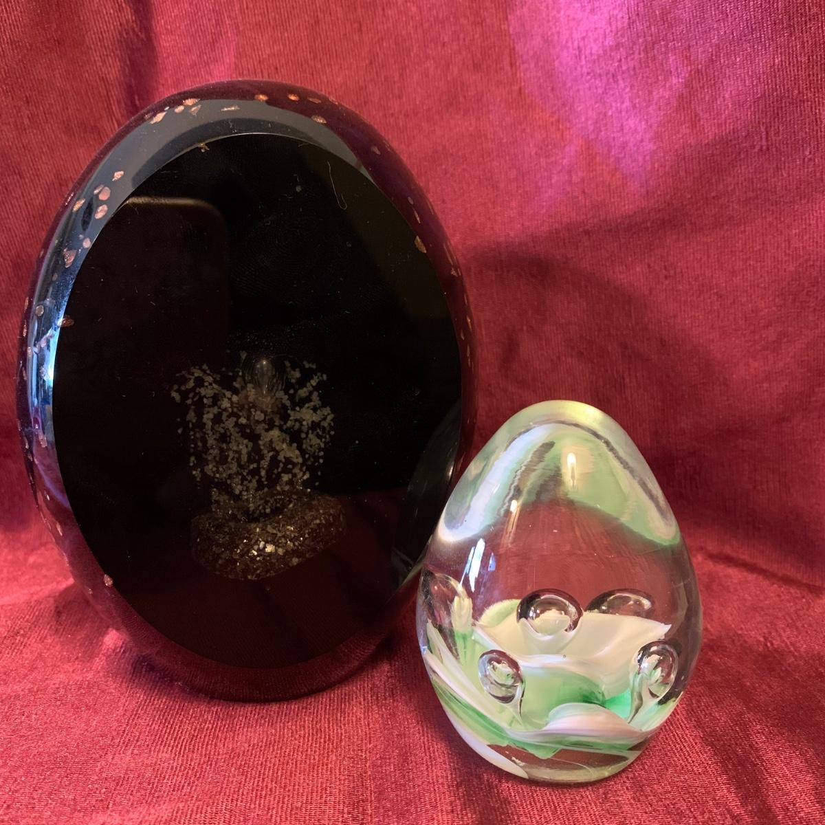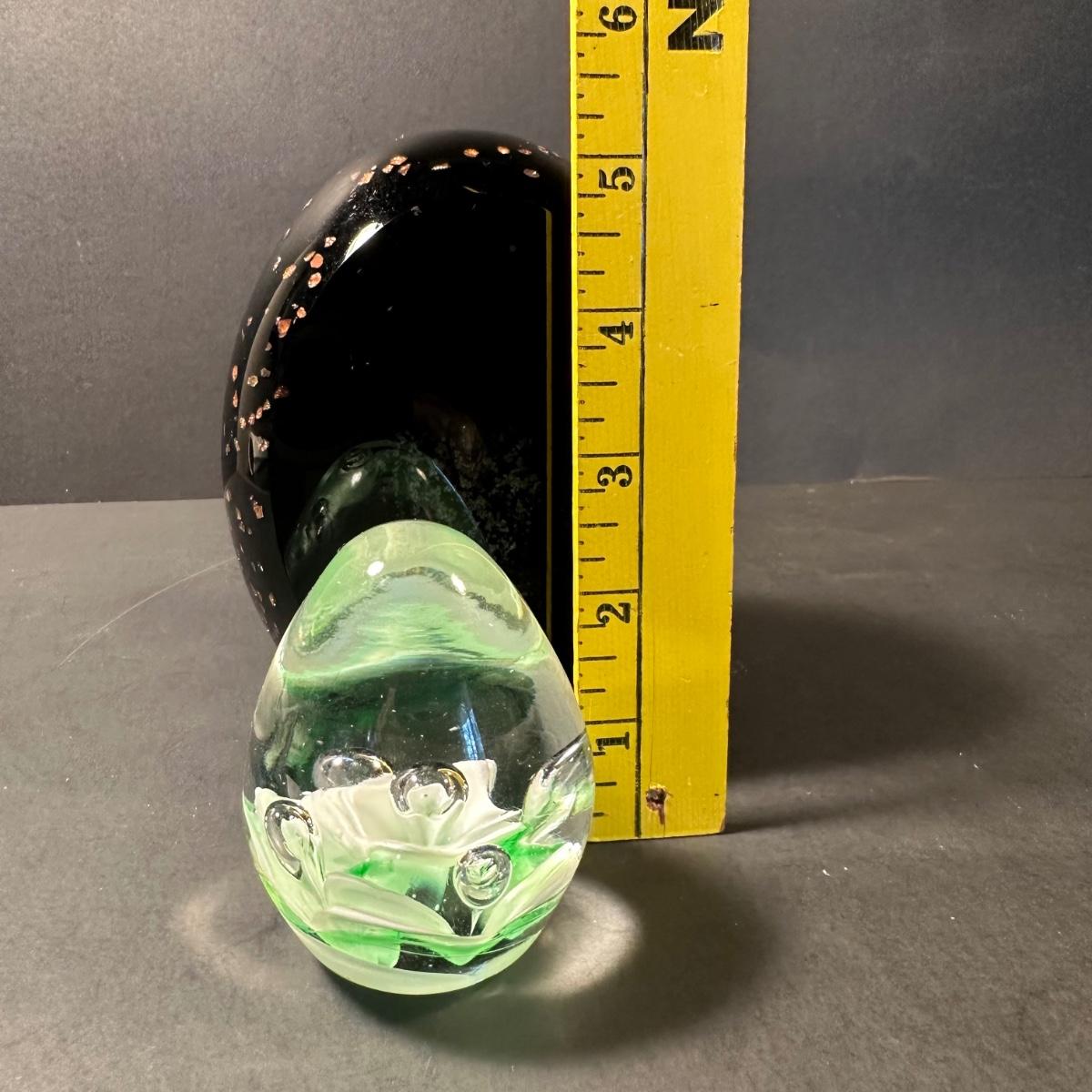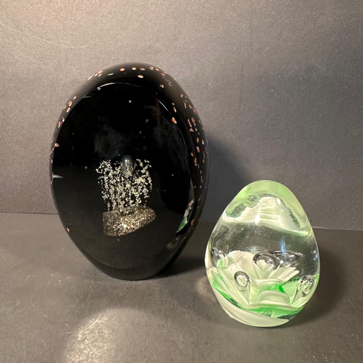LOT 195: Vintage Hand Blown Obsidian Snowflake & Art Glass Paper Weights