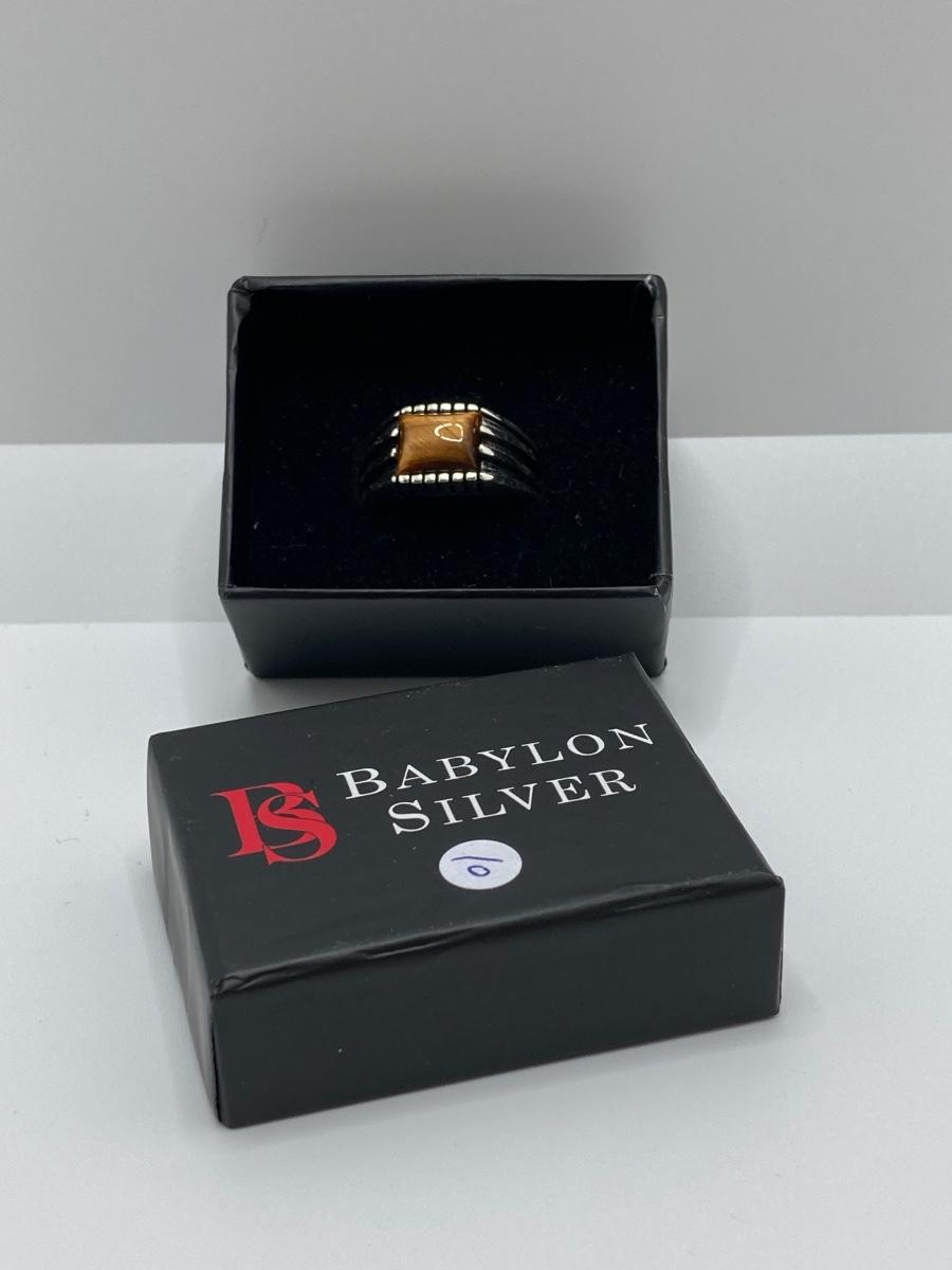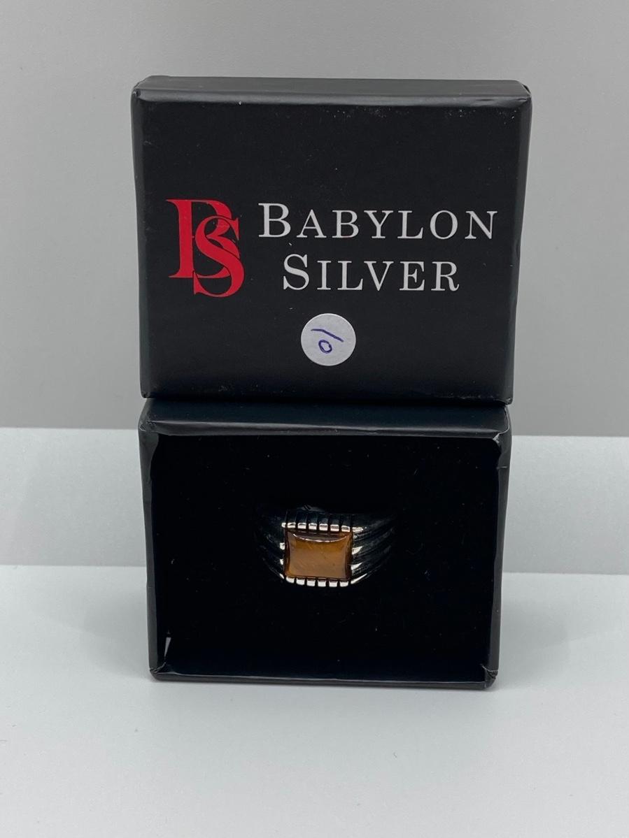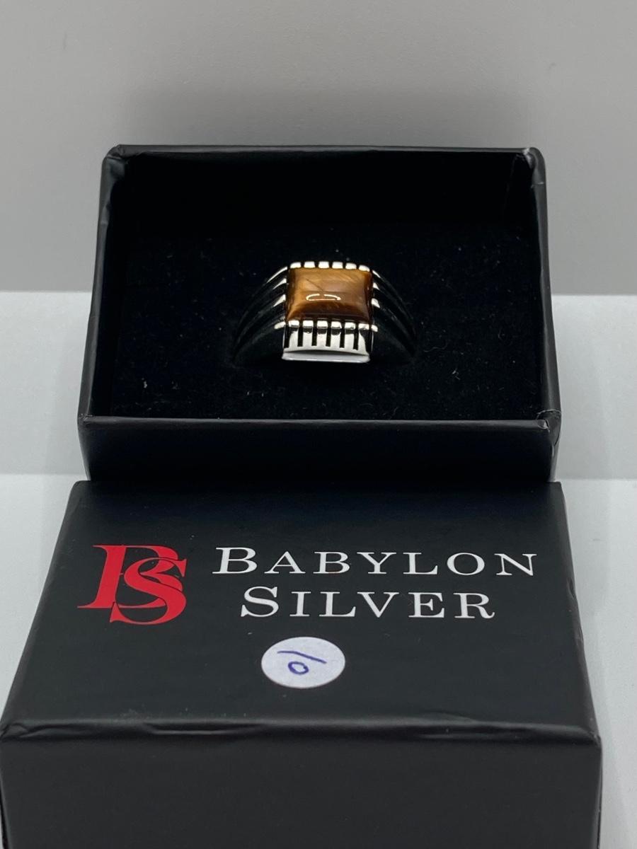 LOT 244: Babylon Silver with Tiger Eye Stone Ring - Sz 10