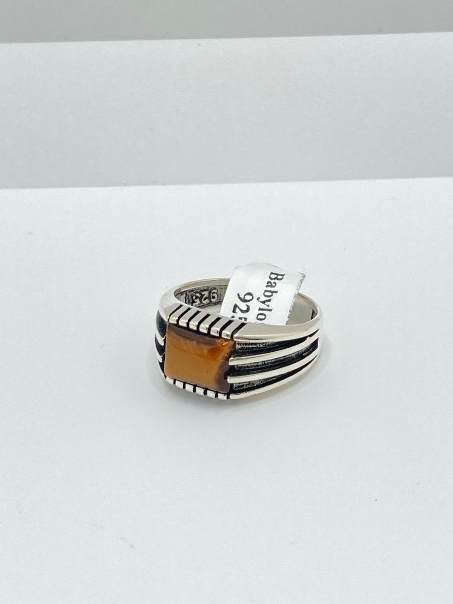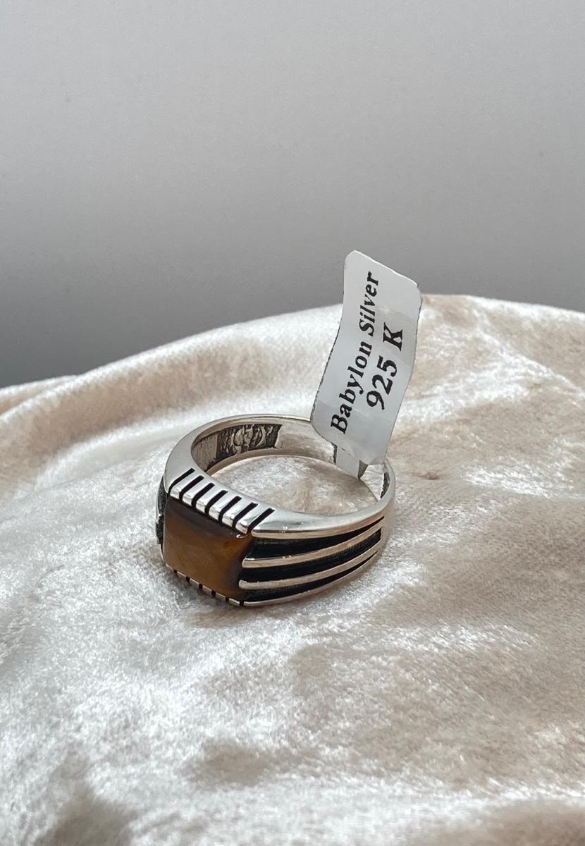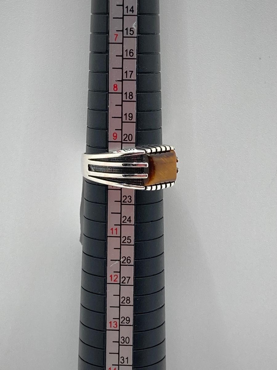LOT 244: Babylon Silver with Tiger Eye Stone Ring - Sz 10