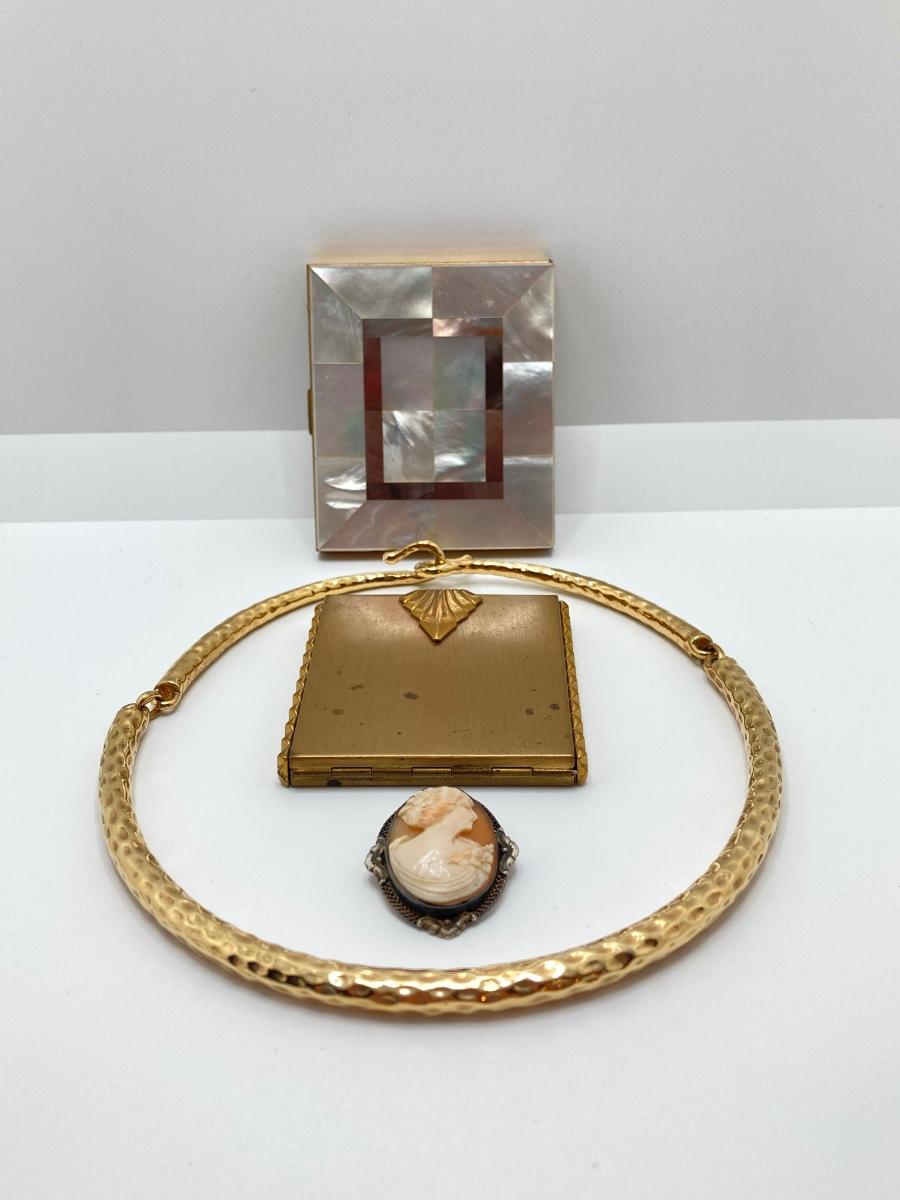 LOT 246: Vintage Compacts, Cameo Brooch and Fashion Choker Necklace