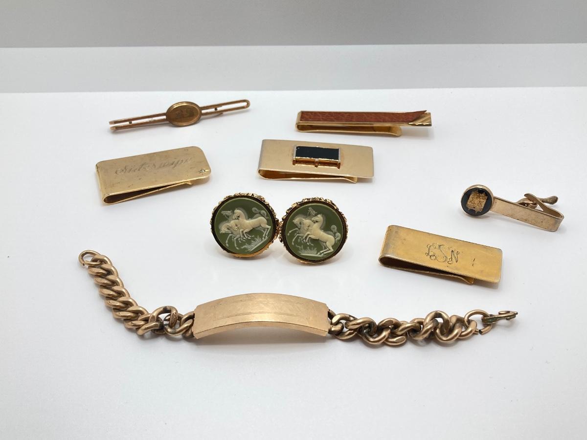 LOT 248: Four Horses Cuff Links with Collection of Money Holders and Tie Bars and More