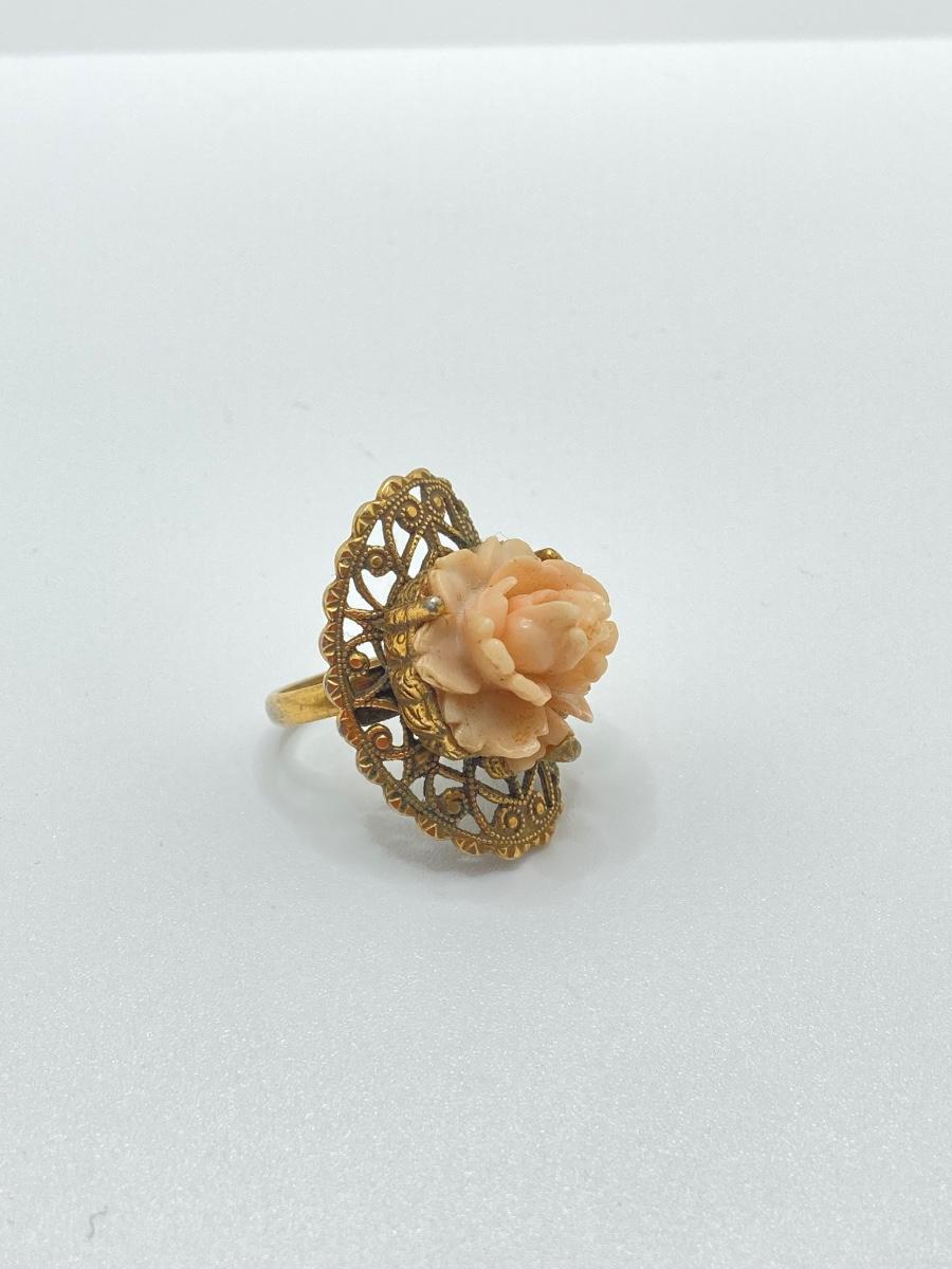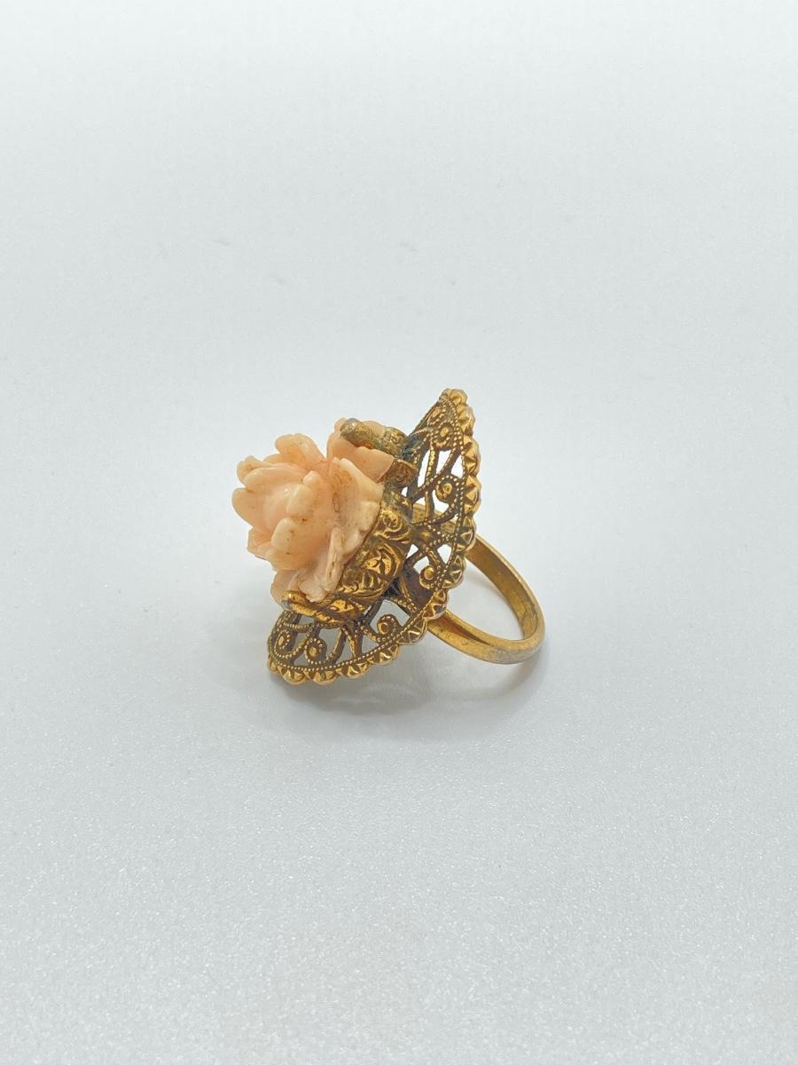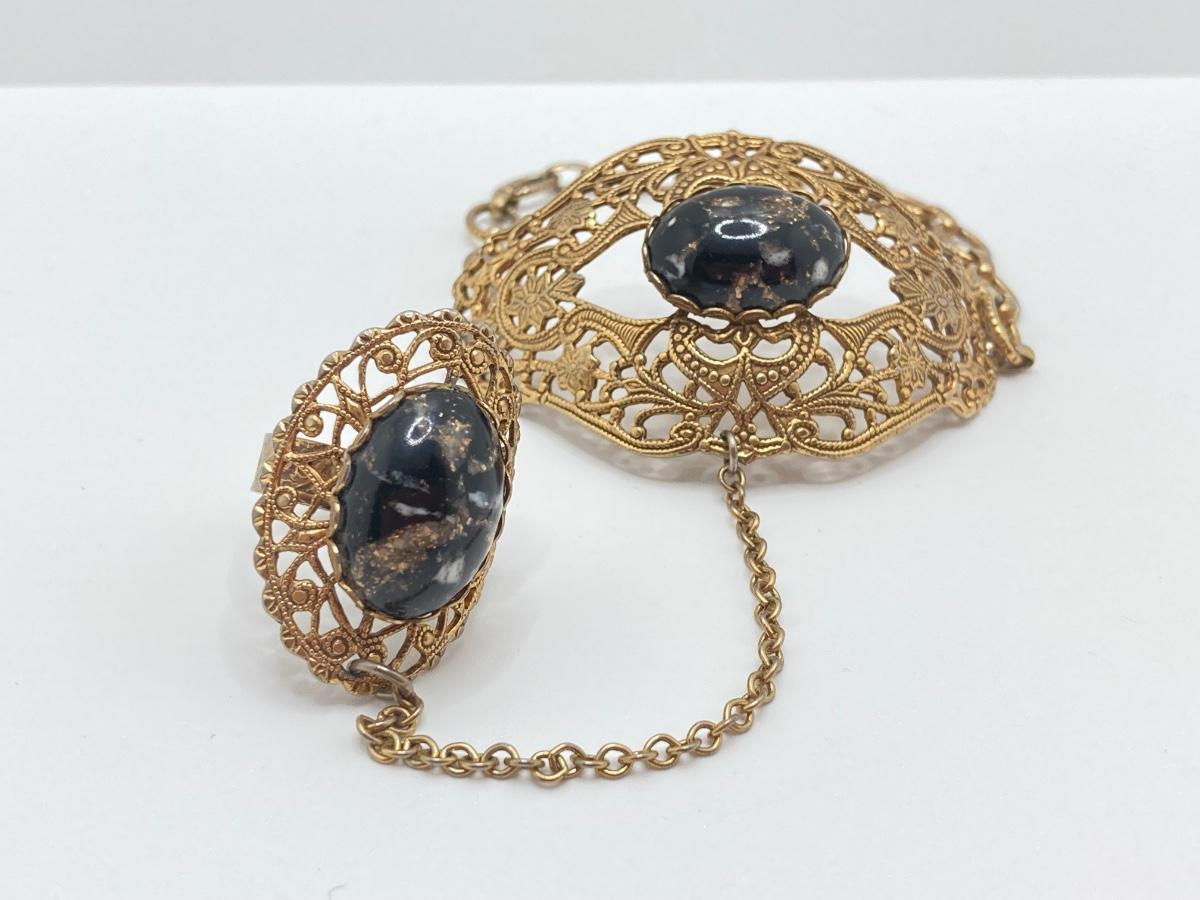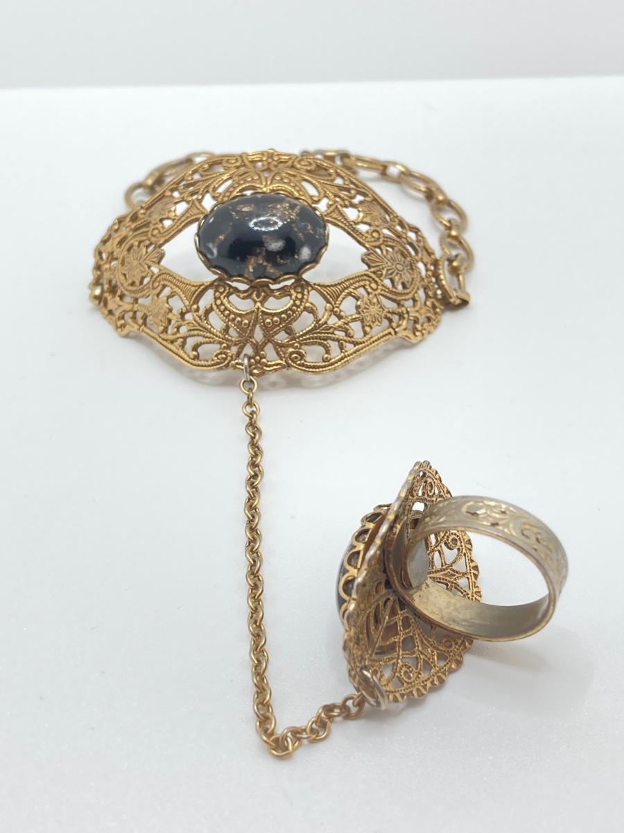 LOT 251: Vintage Ornate Fashion Jewelry - Bracelet / Ring Combination, Carved Rose Ring, Earrings and More