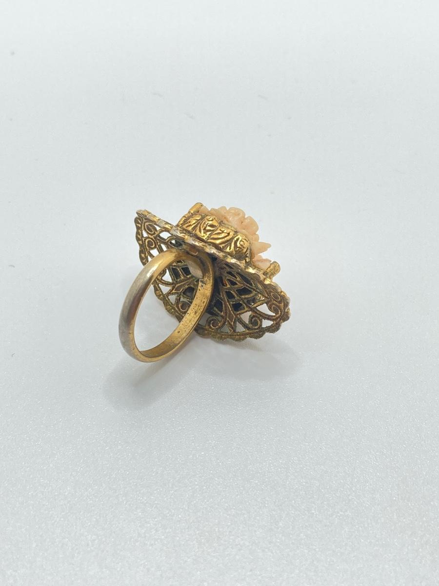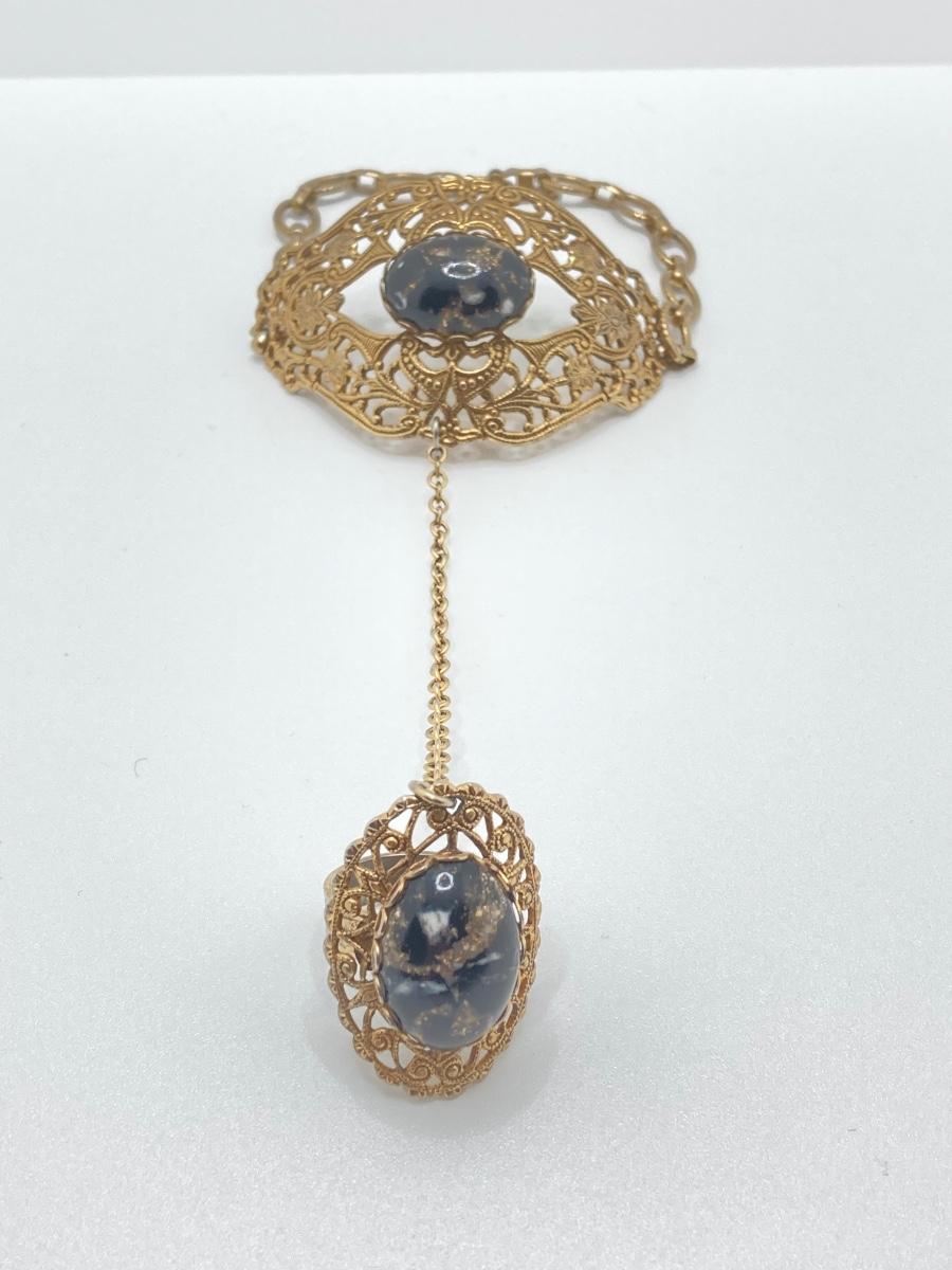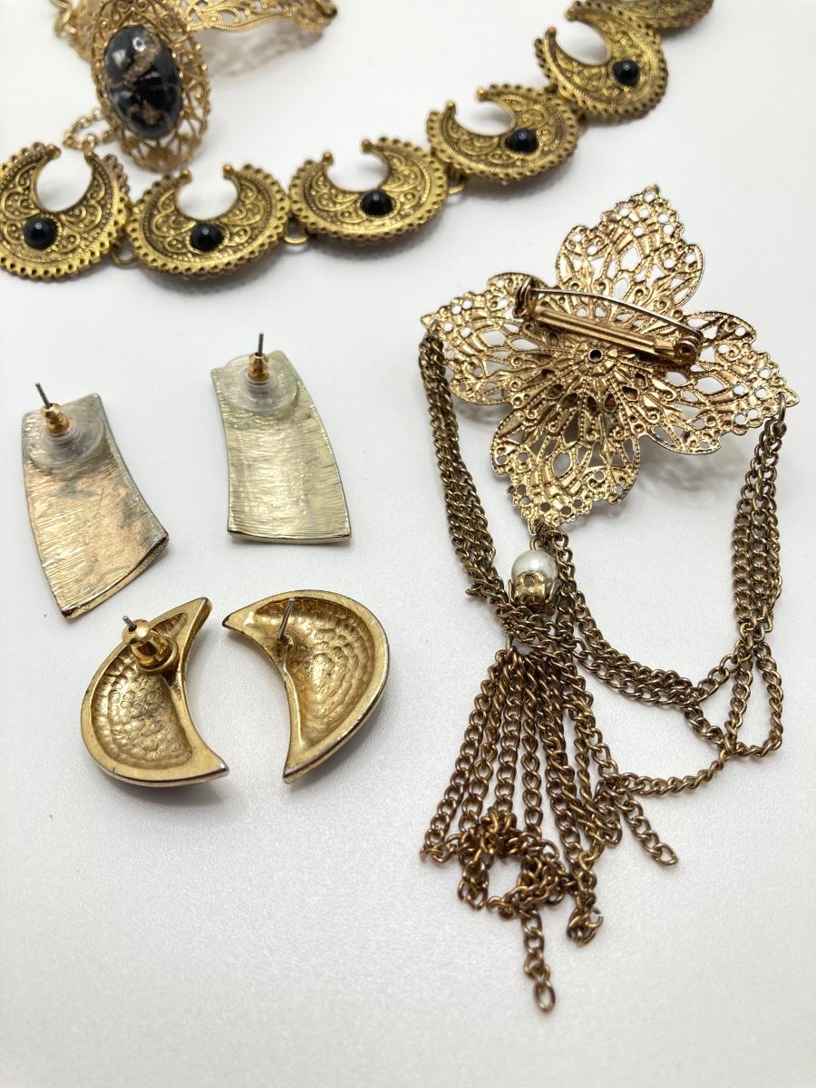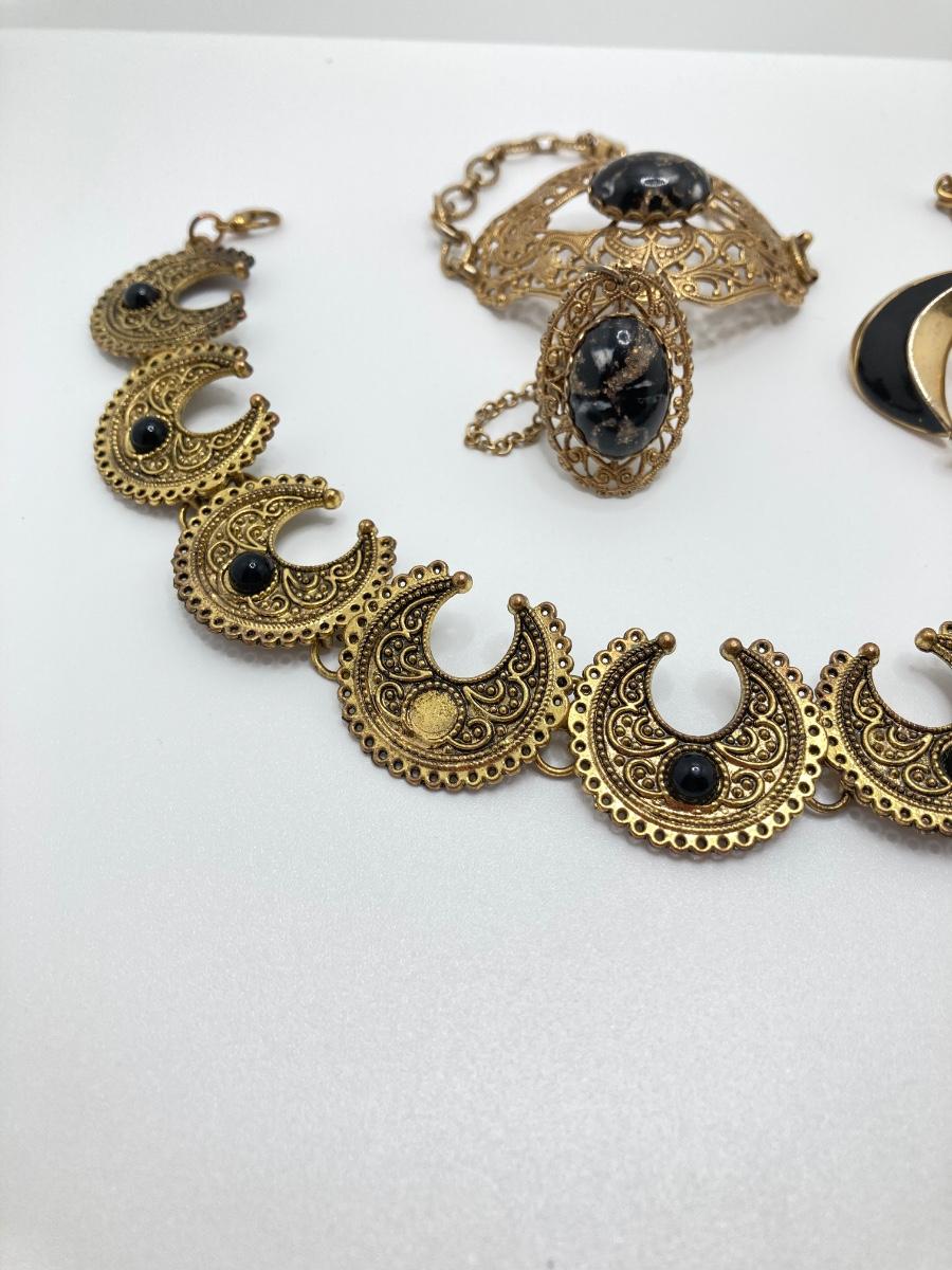 LOT 251: Vintage Ornate Fashion Jewelry - Bracelet / Ring Combination, Carved Rose Ring, Earrings and More