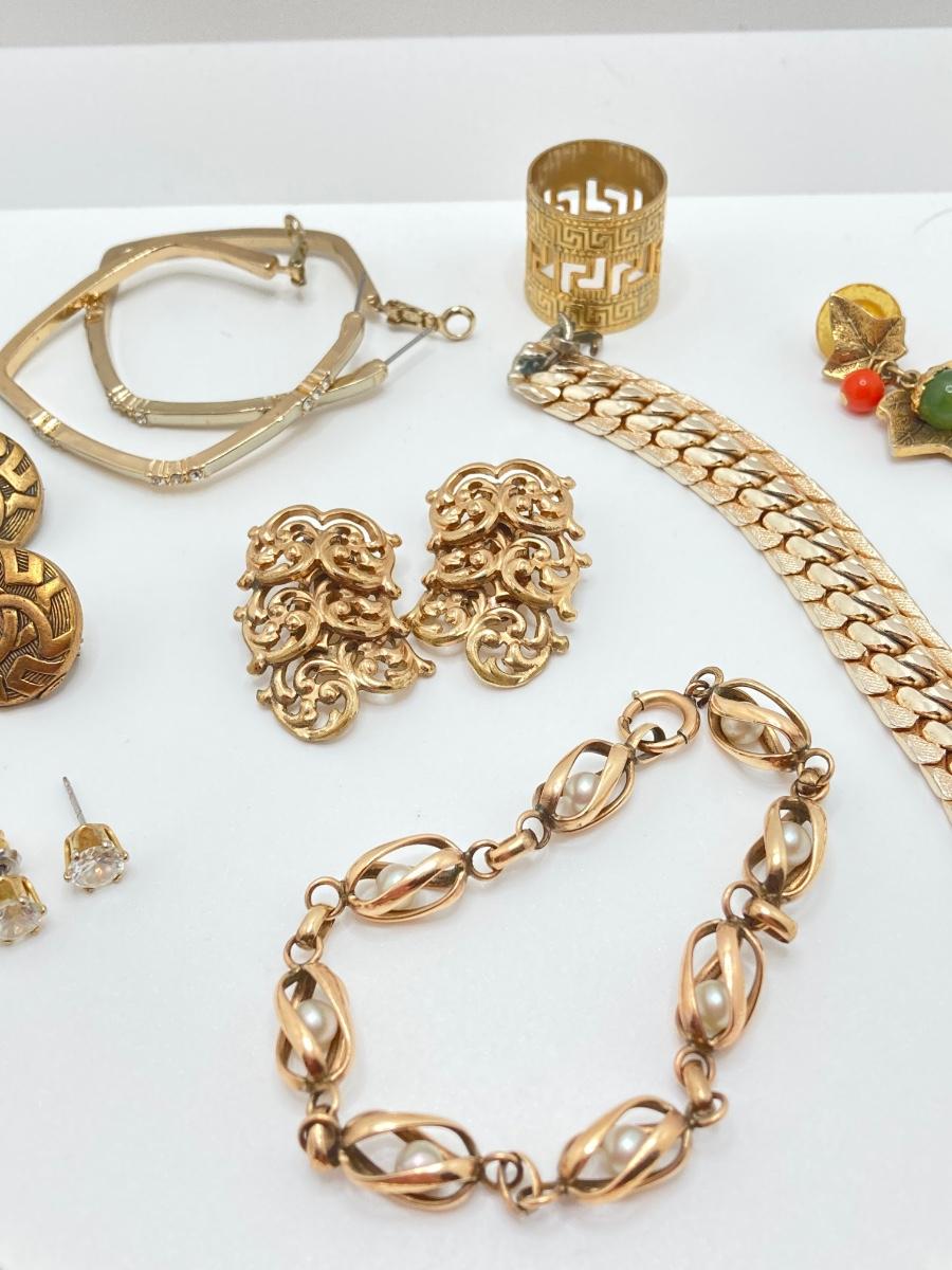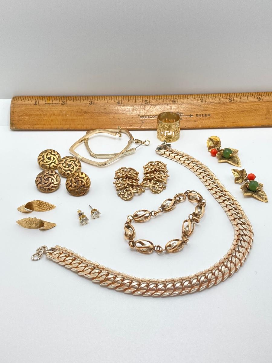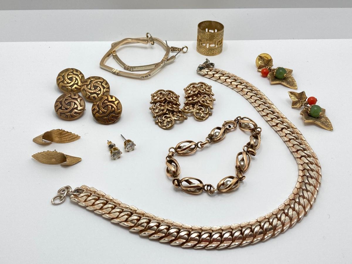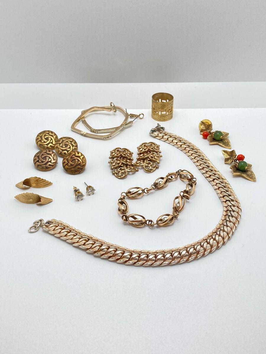 LOT 253: Gold Tone Fashion Jewelry - Bergere Clip On Earrings and More