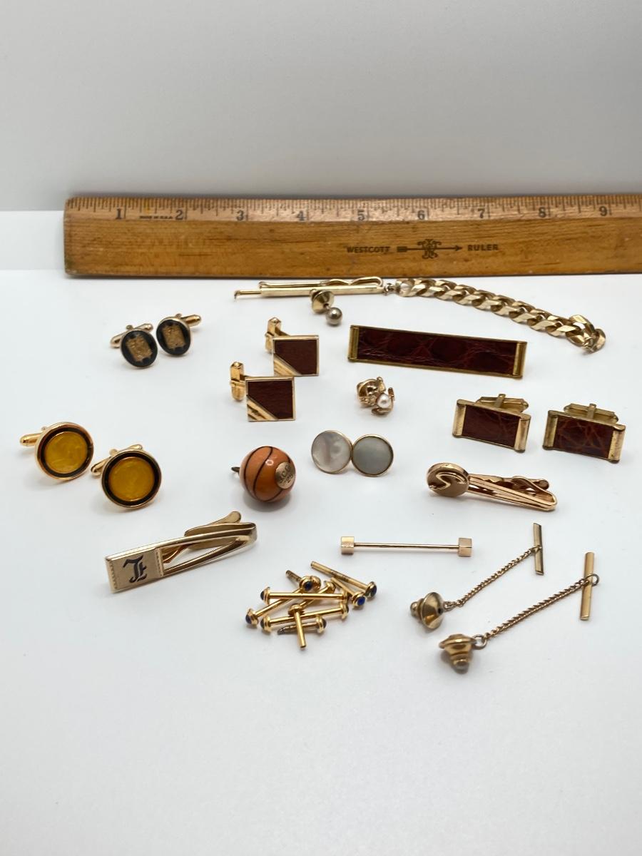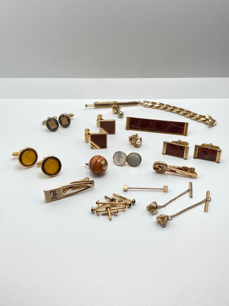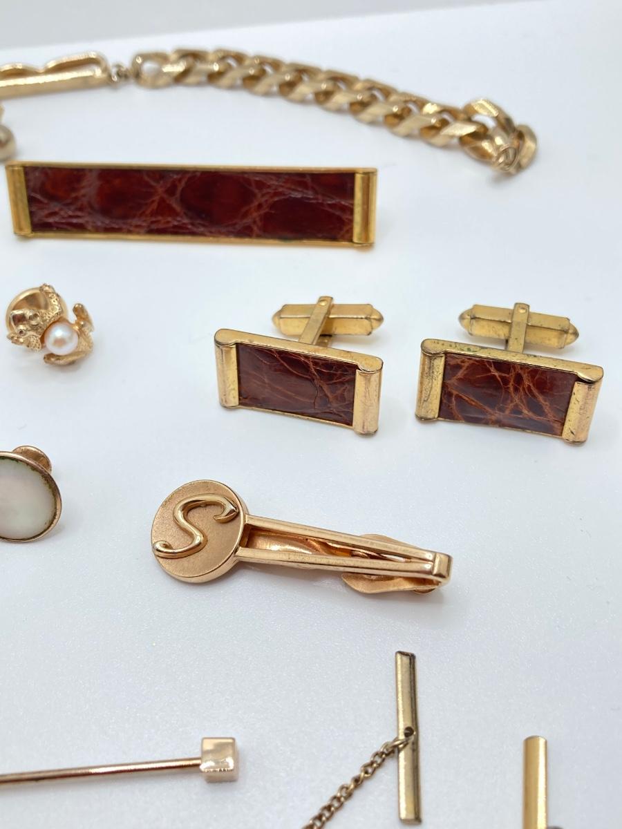 LOT 260: Swank Gold Tone Tie Bar, Cuff Links and More